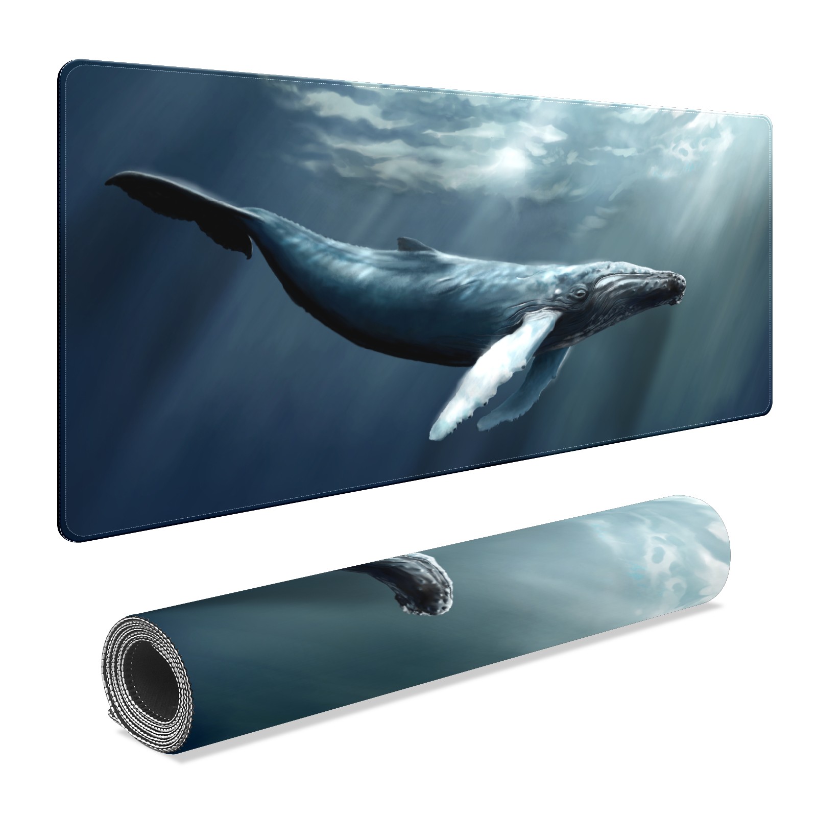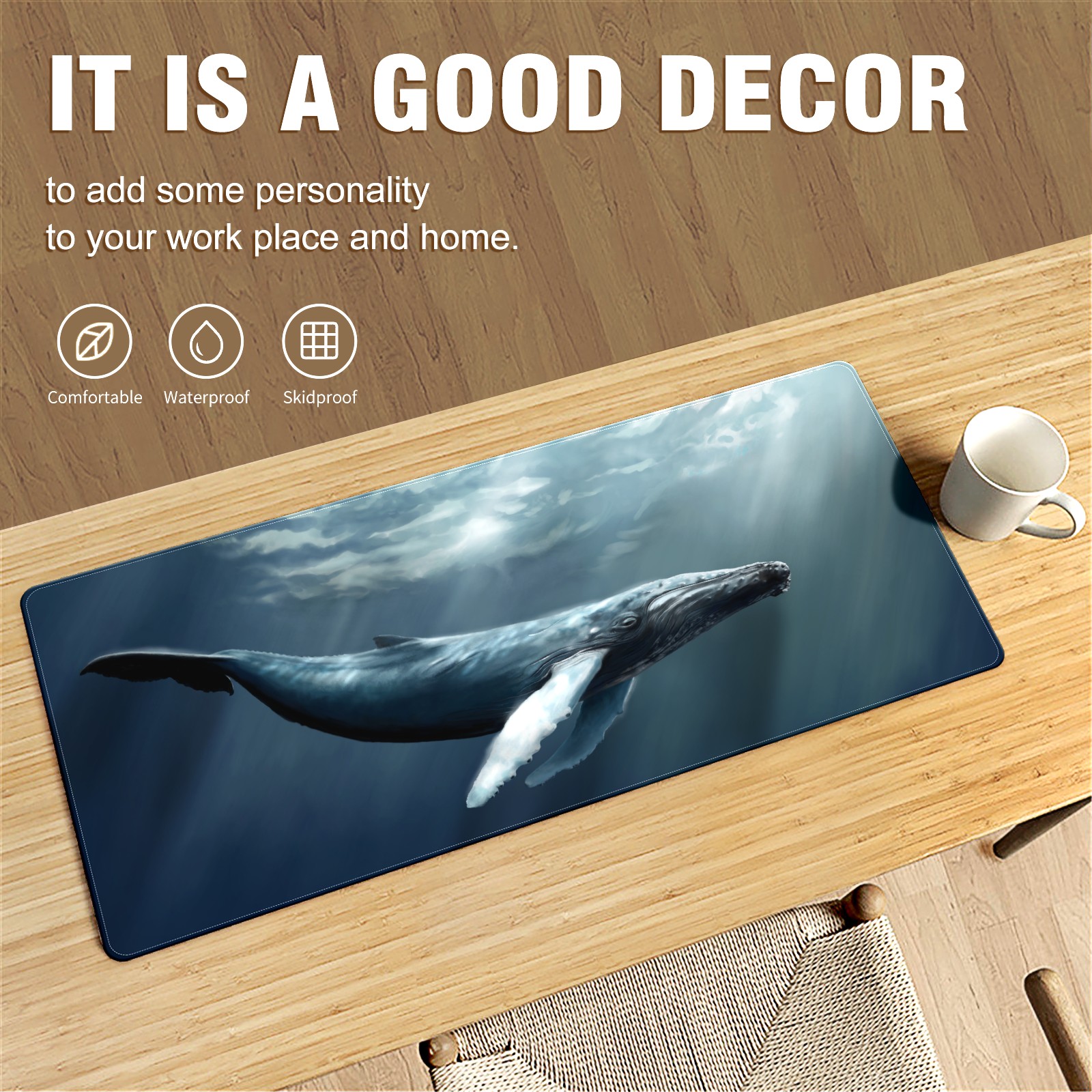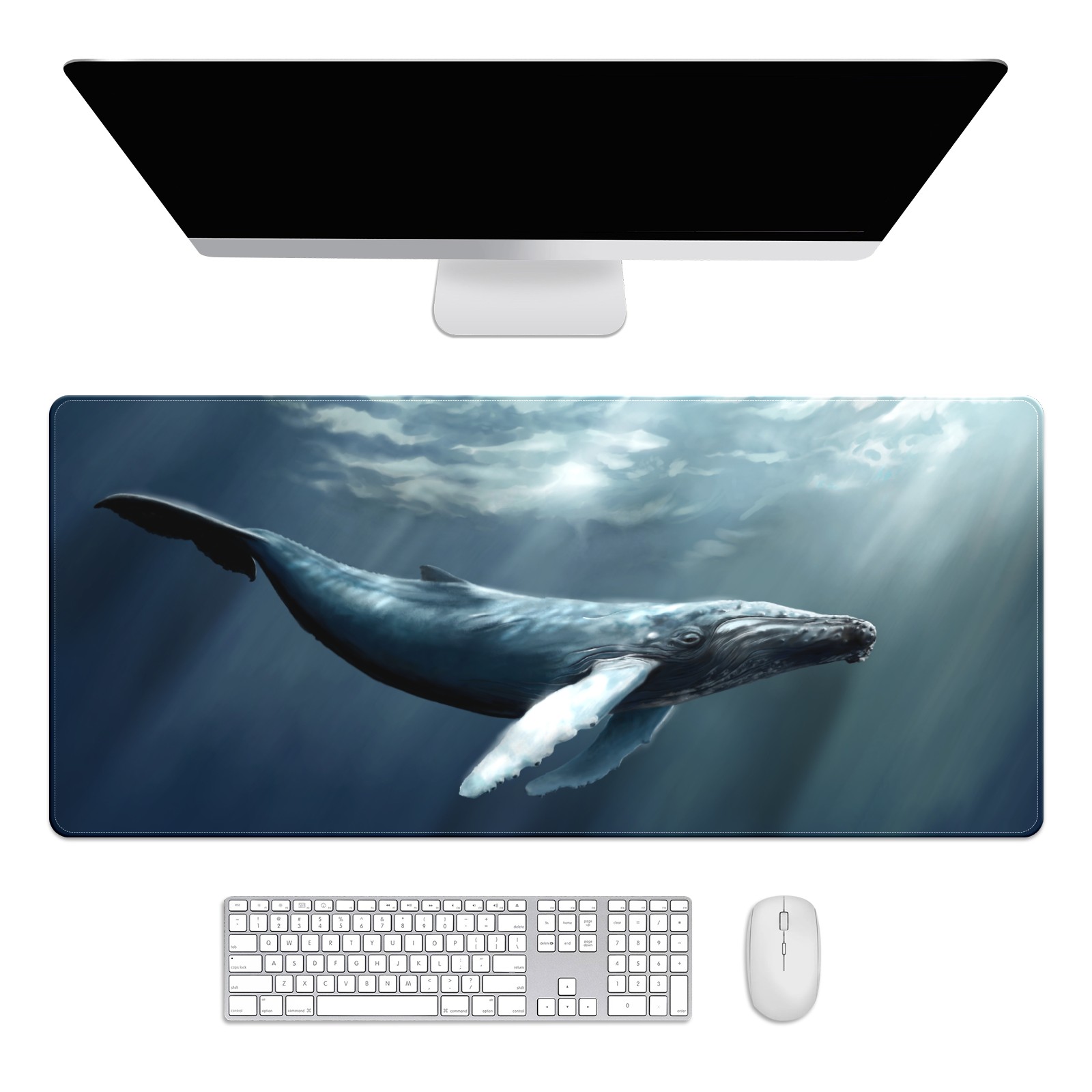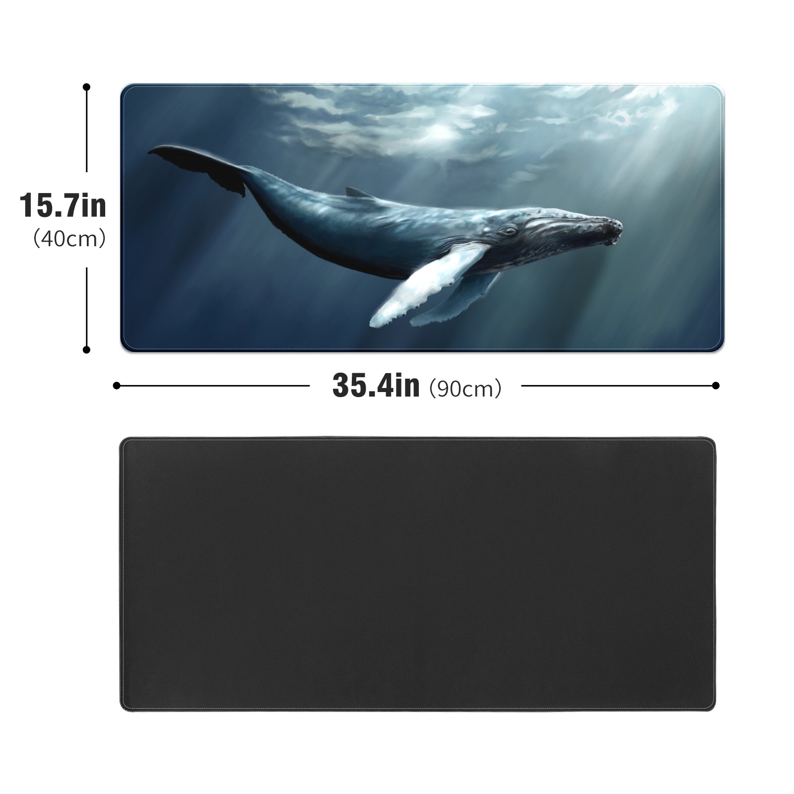 Large Mouse Pad for Desktop, Cute Desk Mat Pad Protector for Work & Gaming, Aesthetic Pretty Anti-Slip Laptop Blotter Cover for Office School Home Supplies, Whale , 35.4inx15.7in