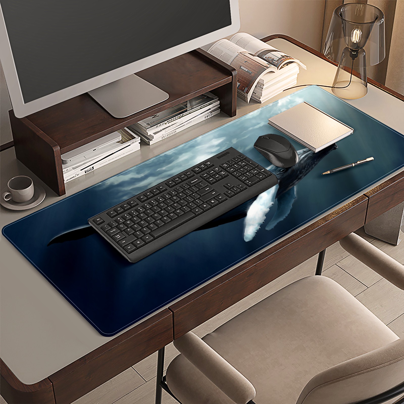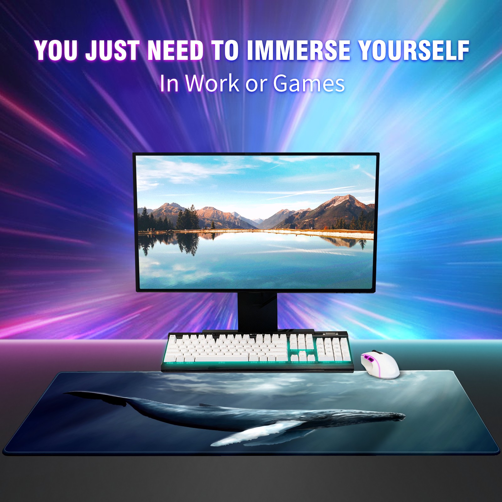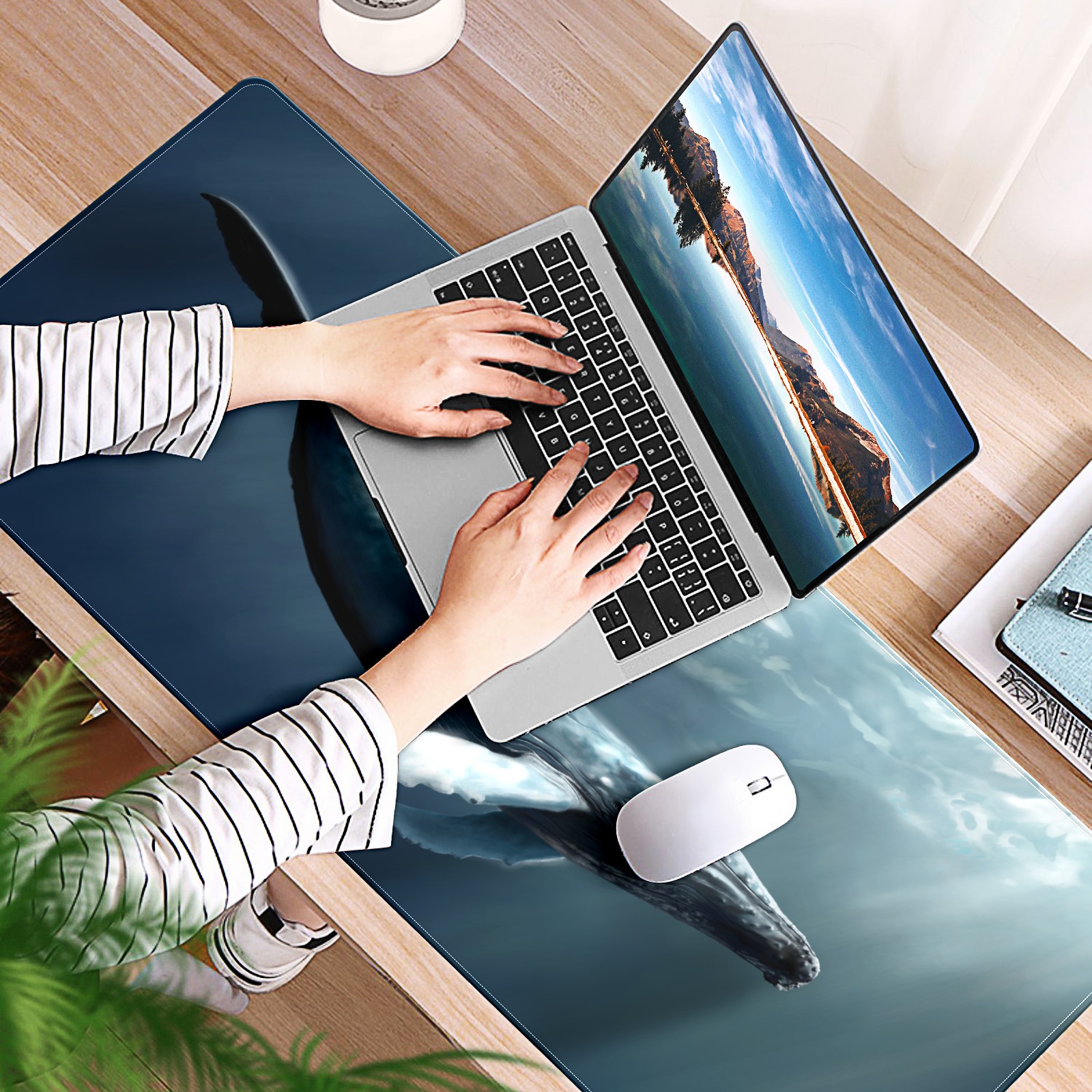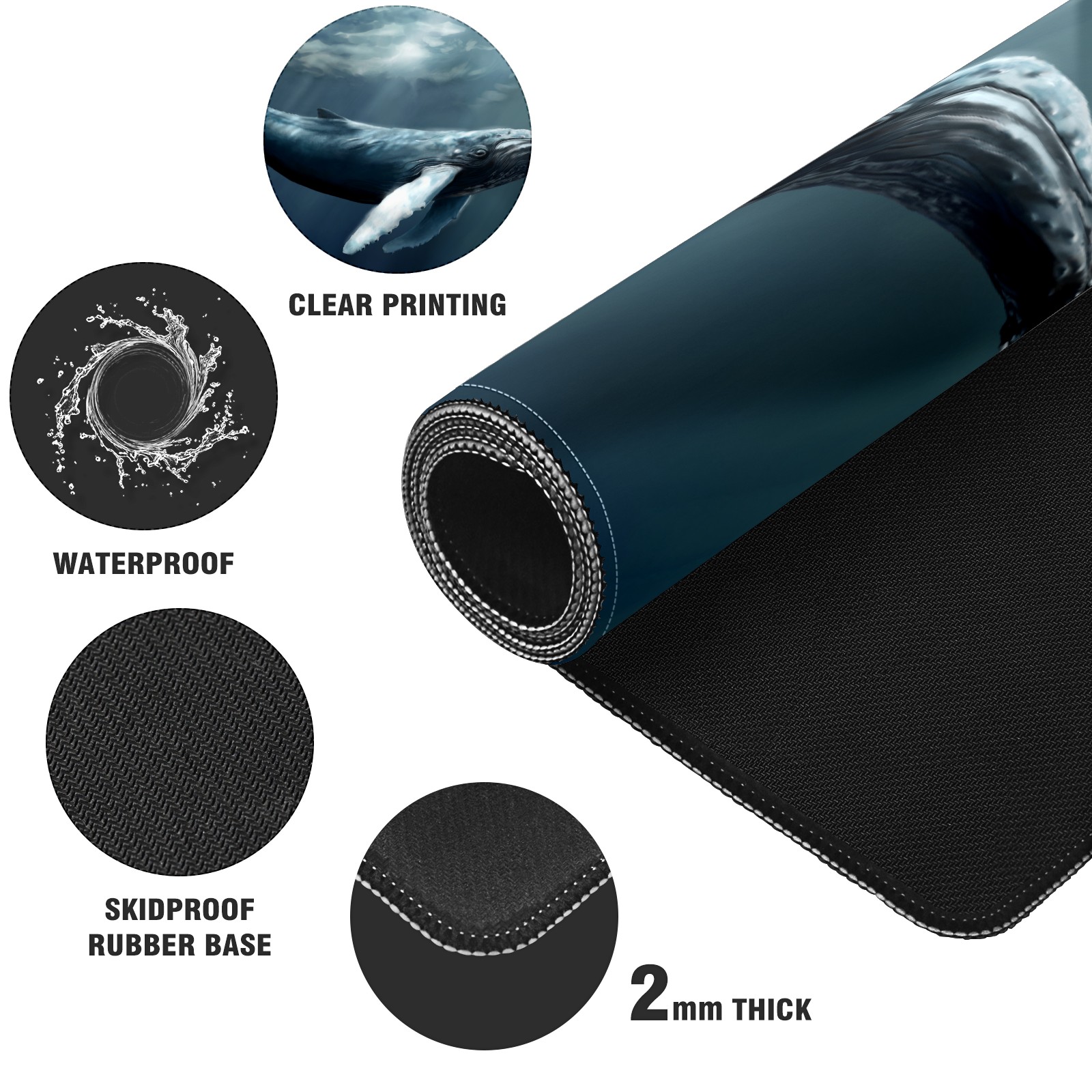 Large Mouse Pad for Desktop, Cute Desk Mat Pad Protector for Work & Gaming, Aesthetic Pretty Anti-Slip Laptop Blotter Cover for Office School Home Supplies, Whale , 35.4inx15.7in