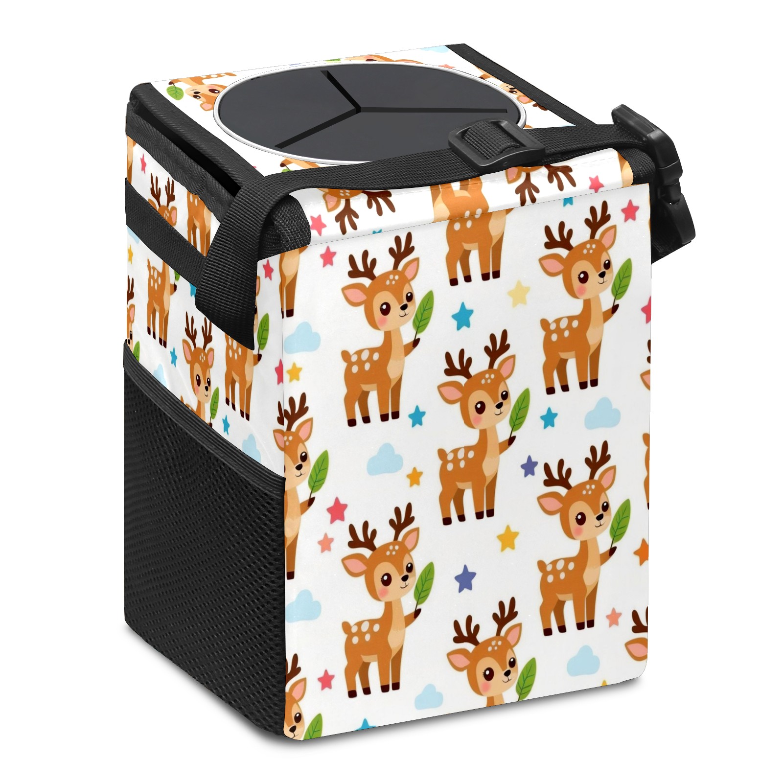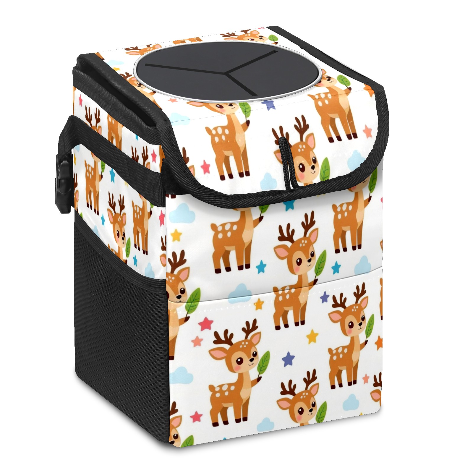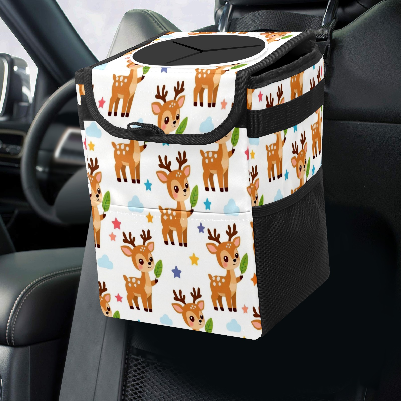 • Эта многофункциональная автомобильная мусорная корзина отличается стильным принтом, сочетающим в себе практичность и эстетику. Изготовленная из высококачественной саржевой ткани с плетеными ремнями, она прочная, долговечная и износостойкая. Размеры корзины составляют 24×17×16 см (9,5×6,7×6,3 дюйма). Верхнее отверстие имеет прорезиненное покрытие для удобной утилизации мусора; боковые сетчатые карманы и передний карман обеспечивают удобное хранение закусок, телефонов и других мелких предметов.