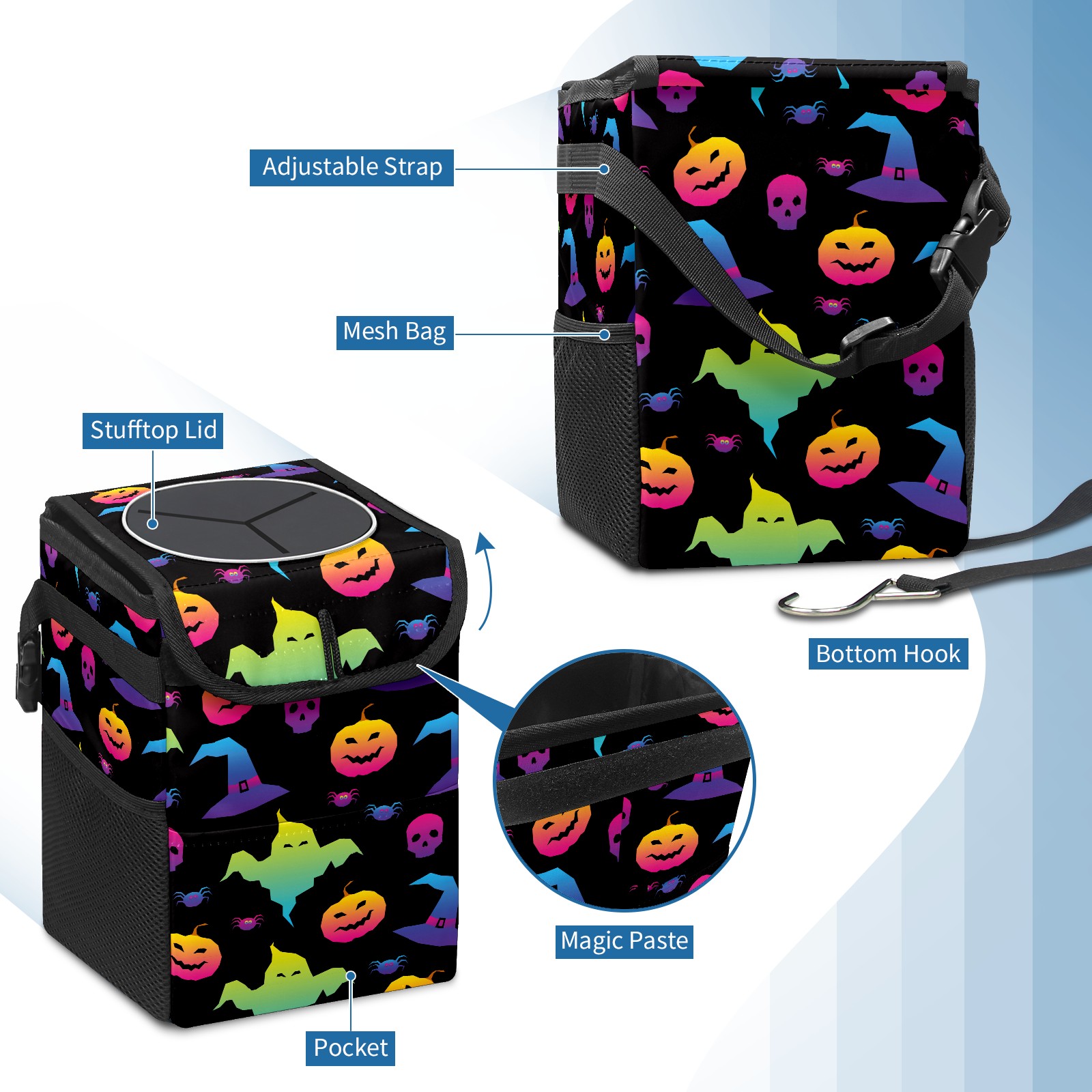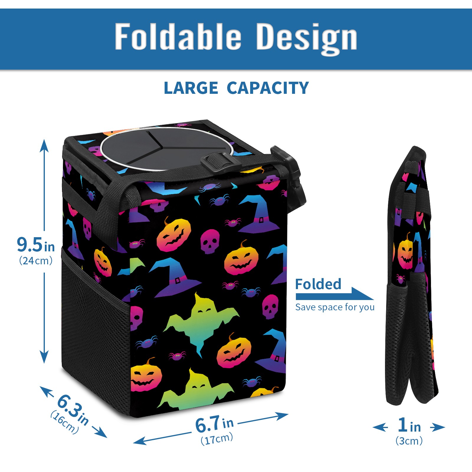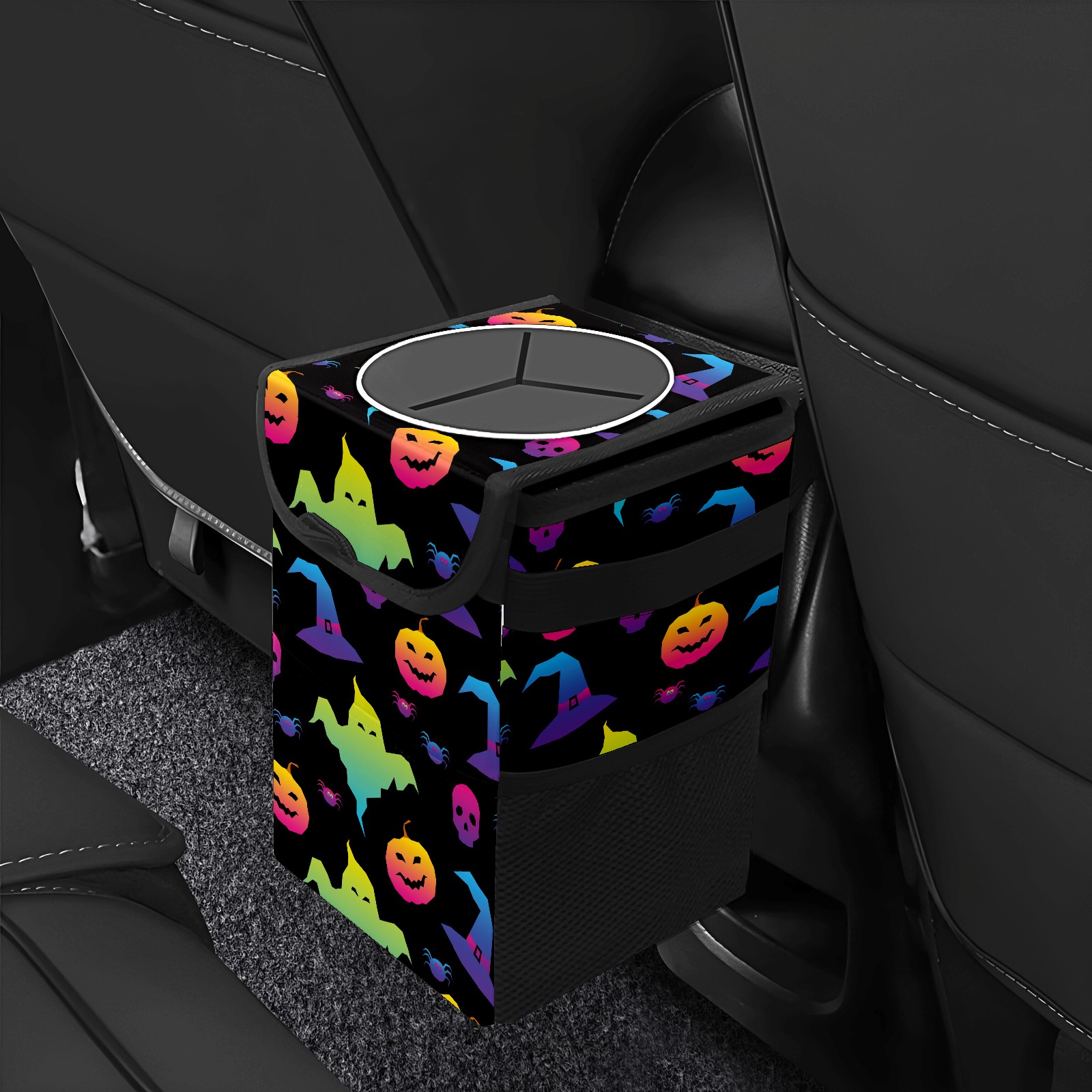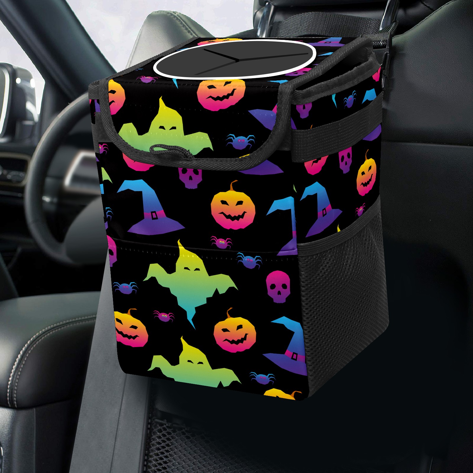 Car Garbage Can — Multi-functional, Lightweight Portable, Reusable Vehicle Trash Can, Waterproof with Sufficient Storage Capacity Halloween Witch Hat Ghost Pumpkin Spider