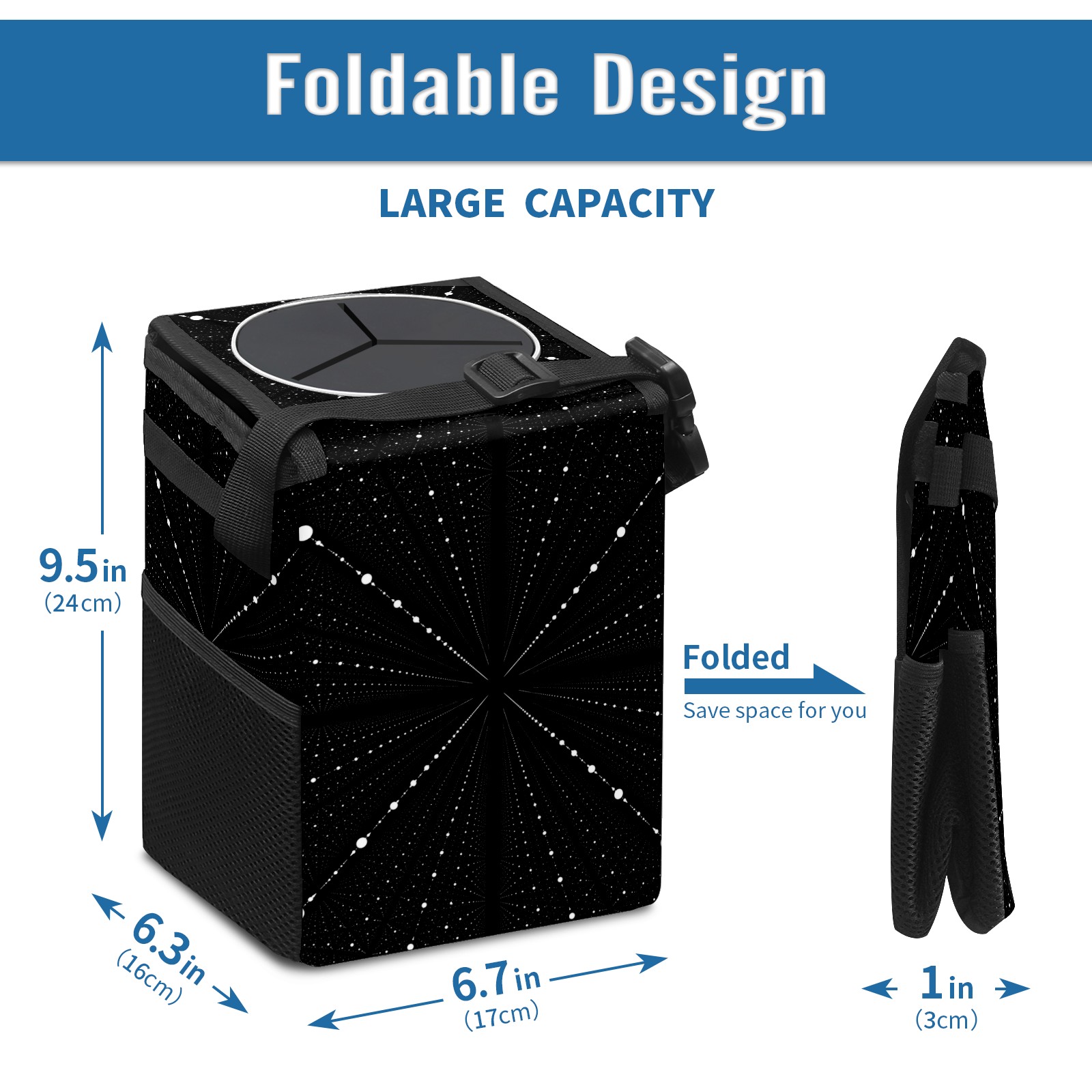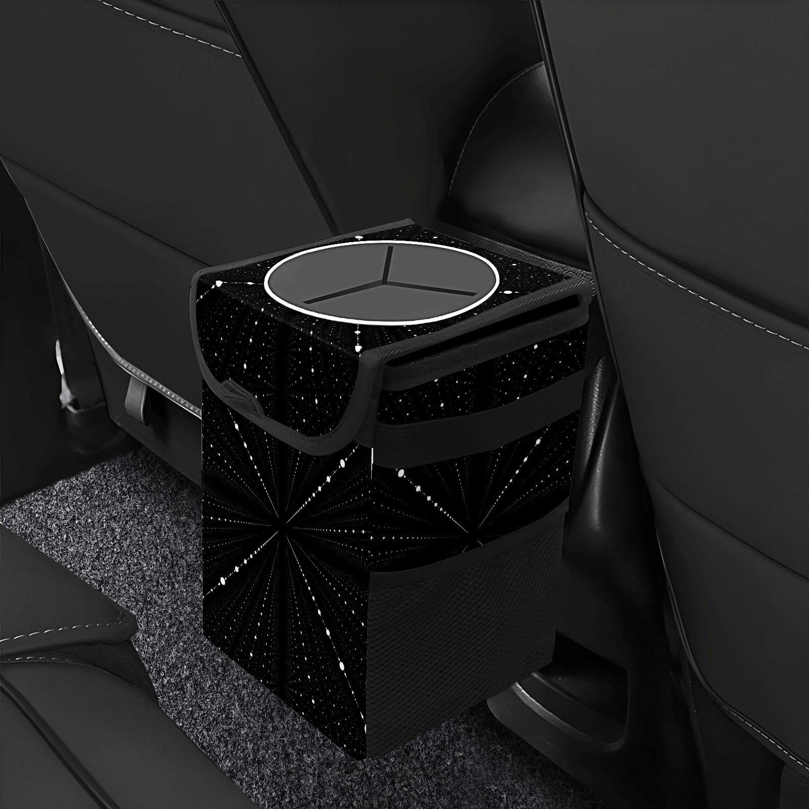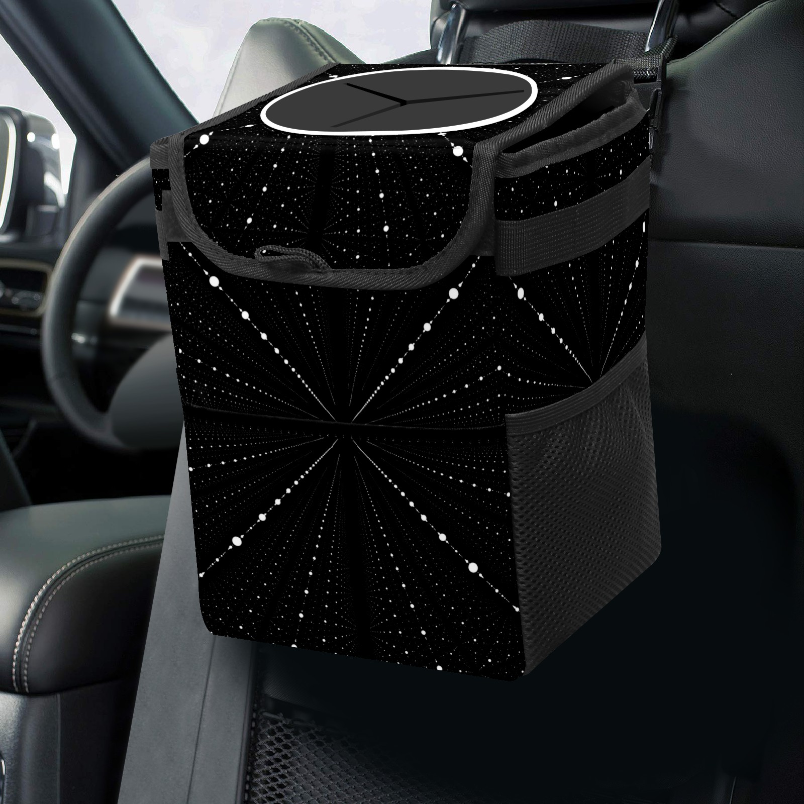 Car Garbage Can — Multi-functional, Lightweight Portable, Reusable Vehicle Trash Can, Waterproof with Sufficient Storage Capacity Infinity Space Black Dots