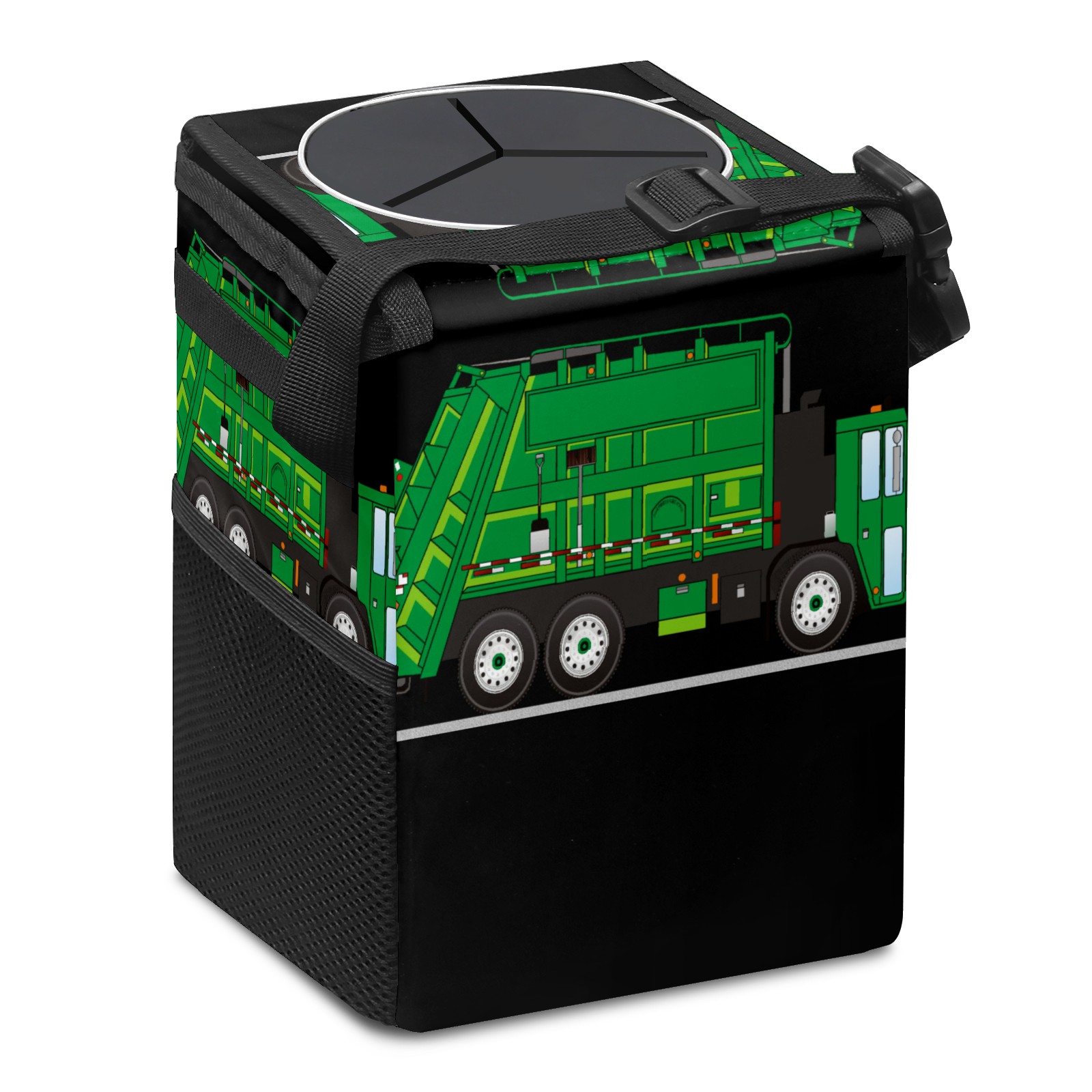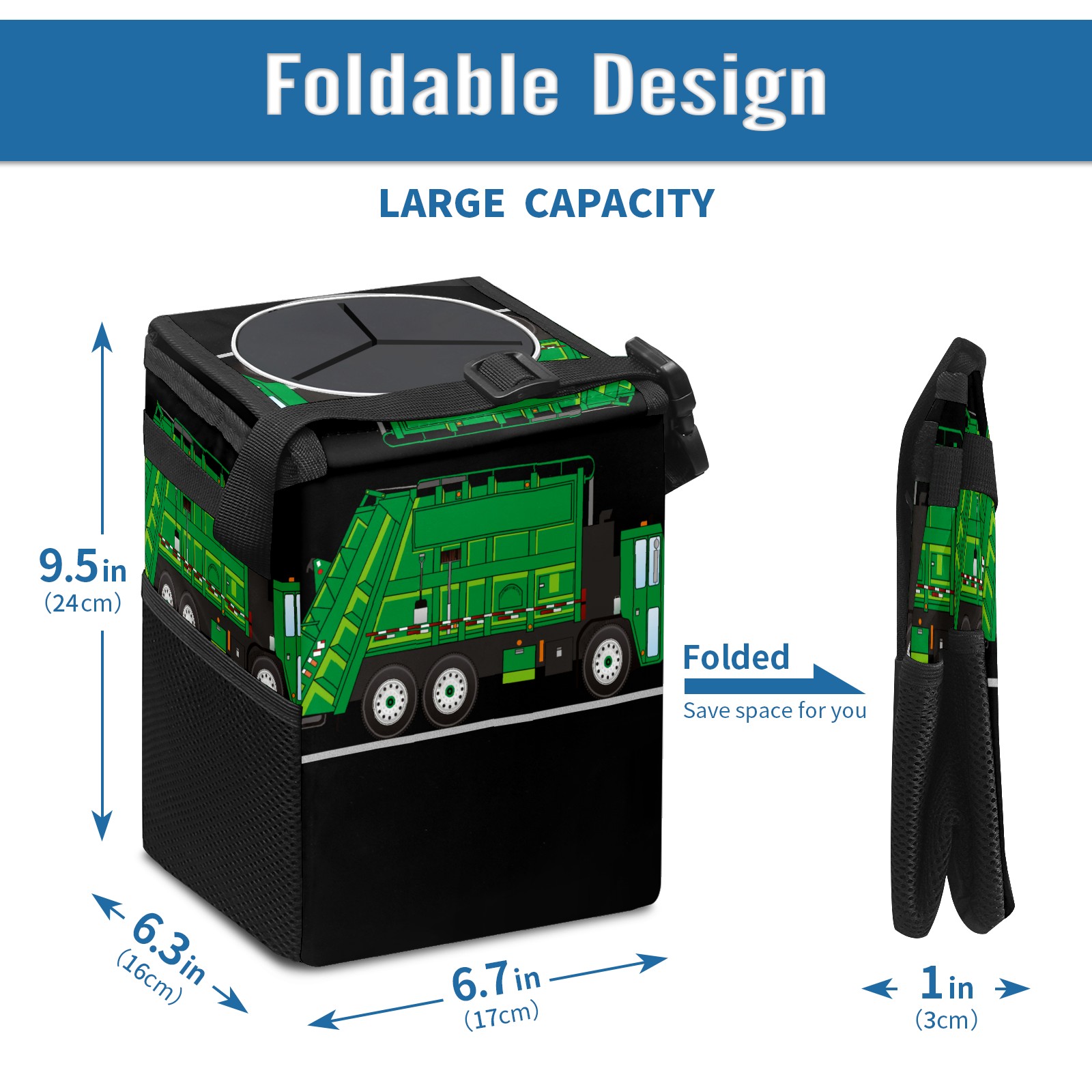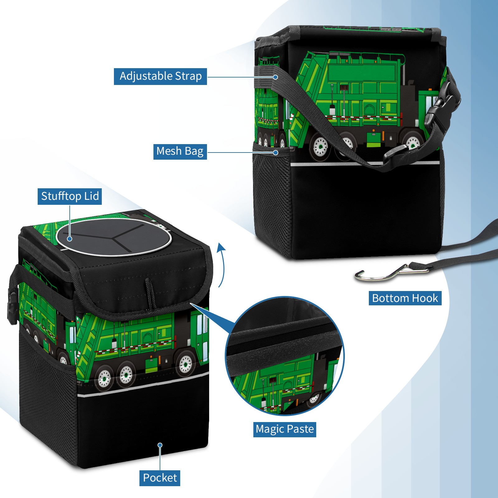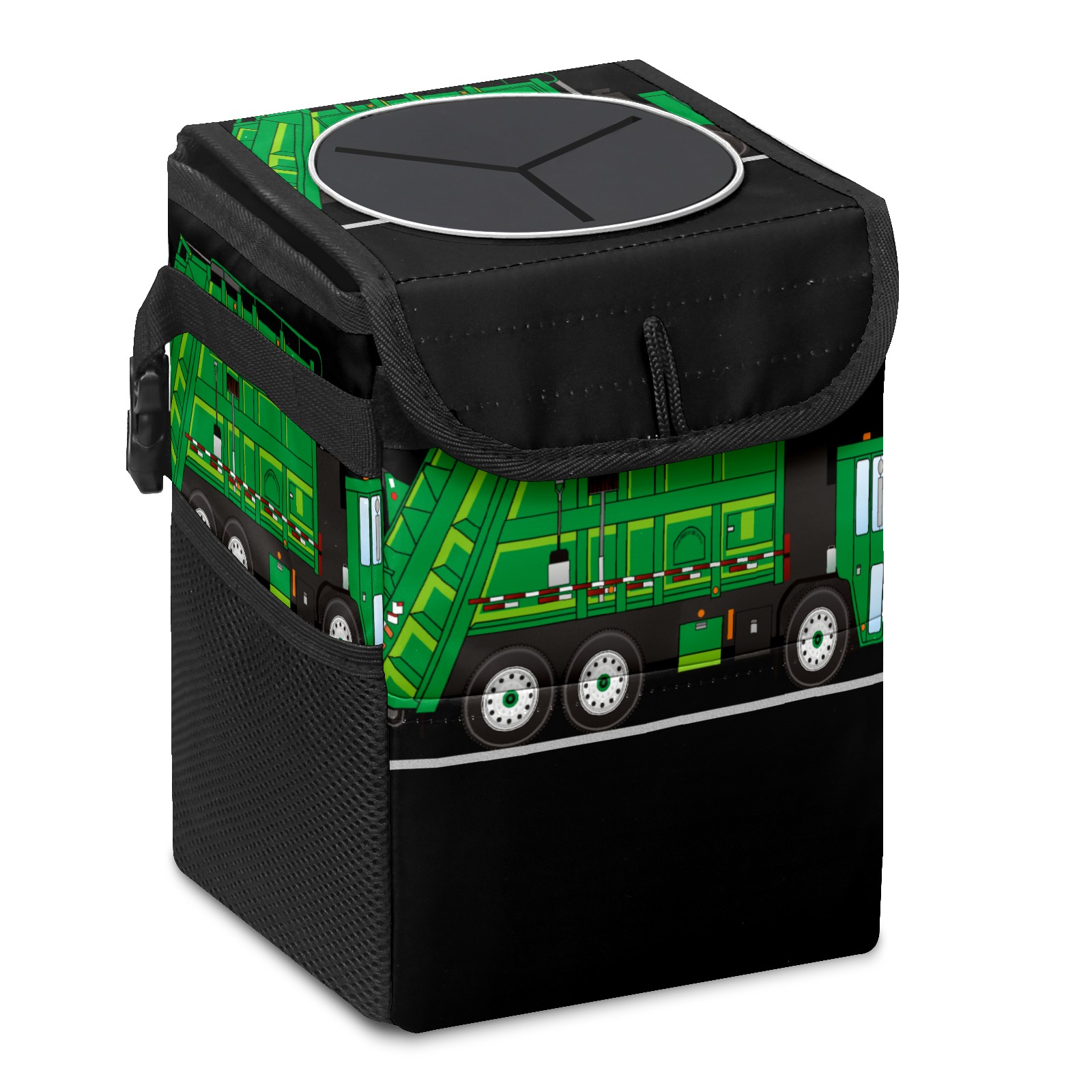 Car Garbage Can — Multi-functional, Lightweight Portable, Reusable Vehicle Trash Can, Waterproof with Sufficient Storage Capacity Green Cartoon Garbage Truck