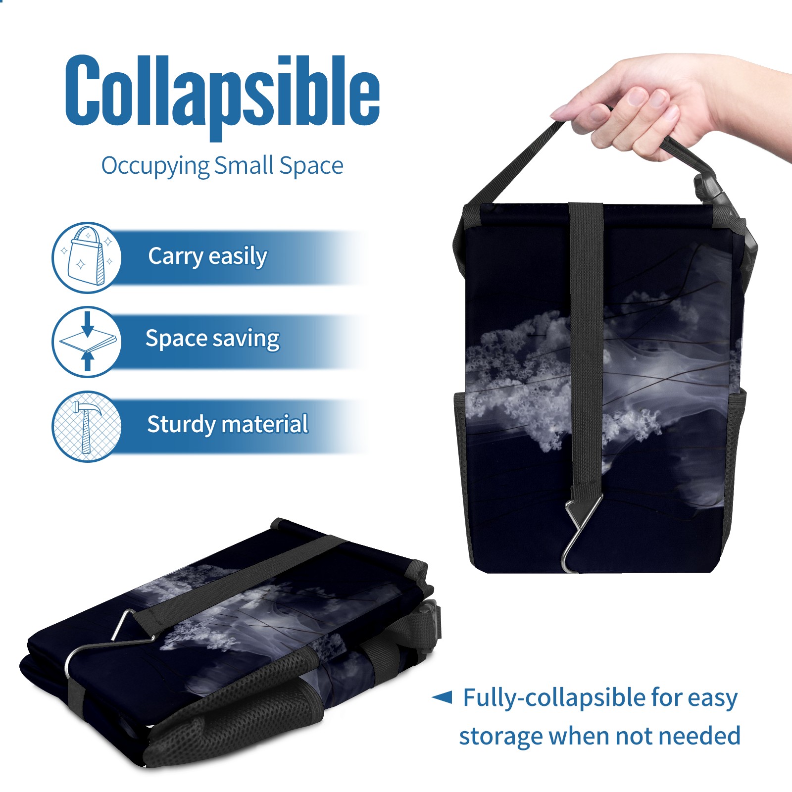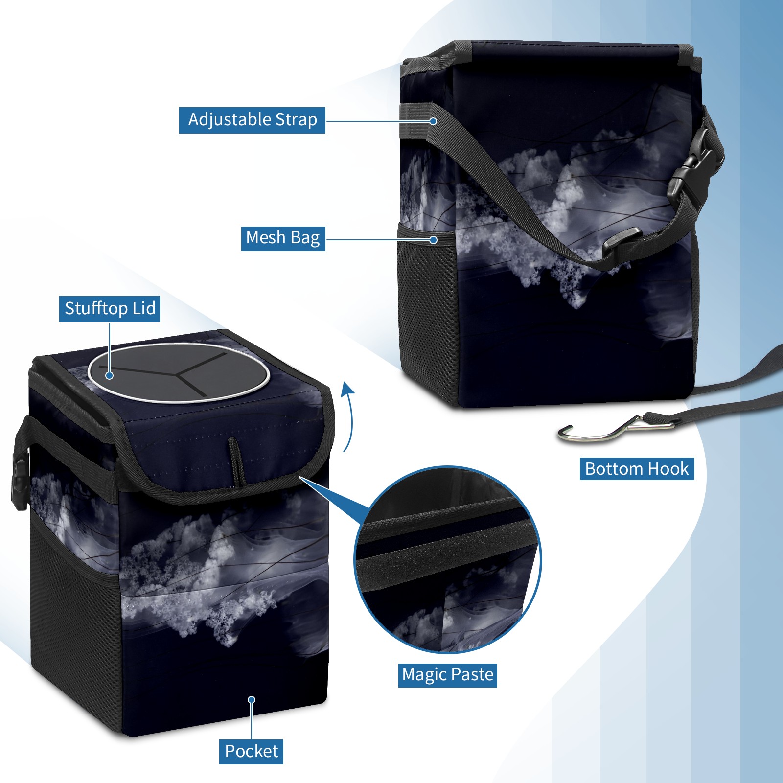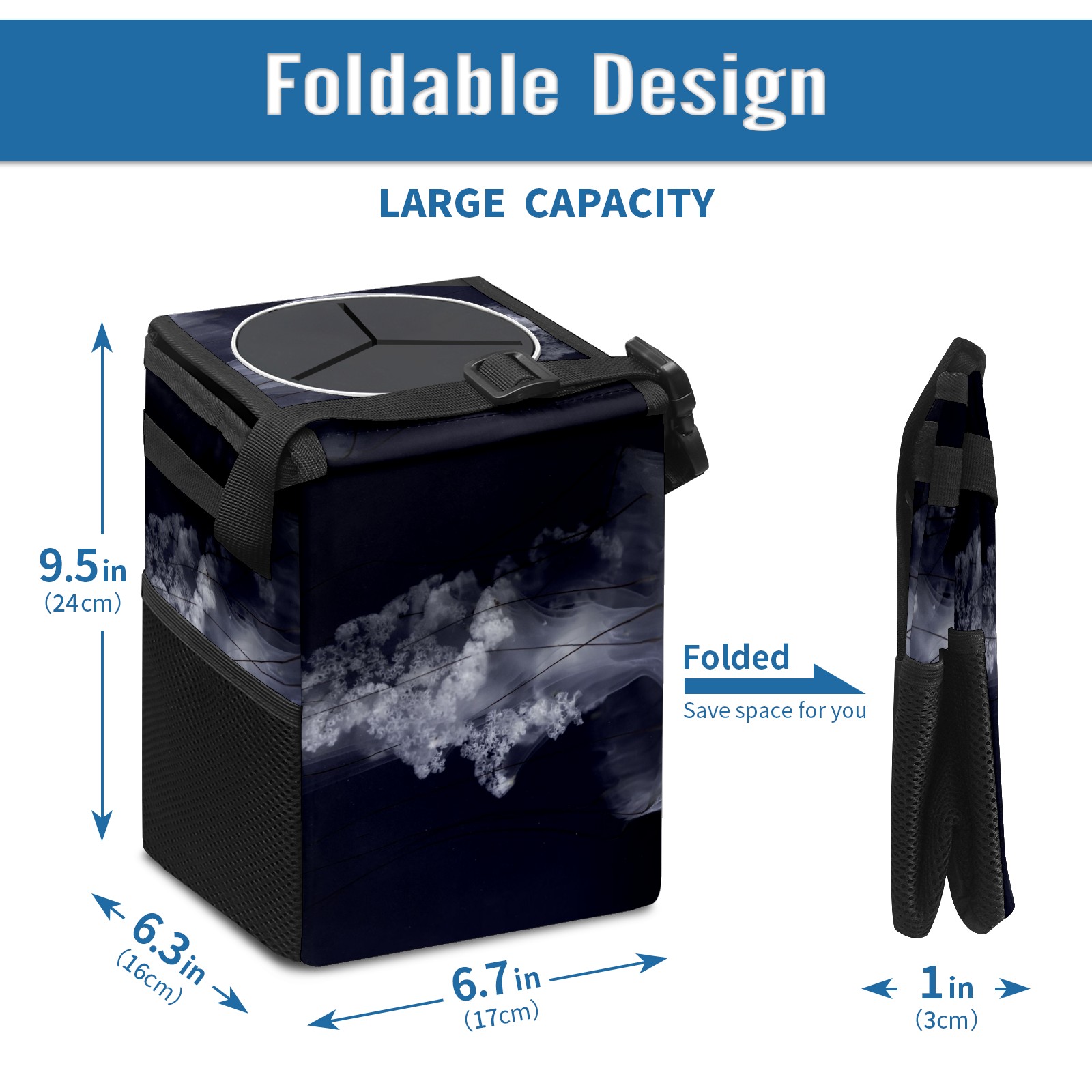 Car Garbage Can — Multi-functional, Lightweight Portable, Reusable Vehicle Trash Can, Waterproof with Sufficient Storage Capacity Gray South American Nettle Jellyfish