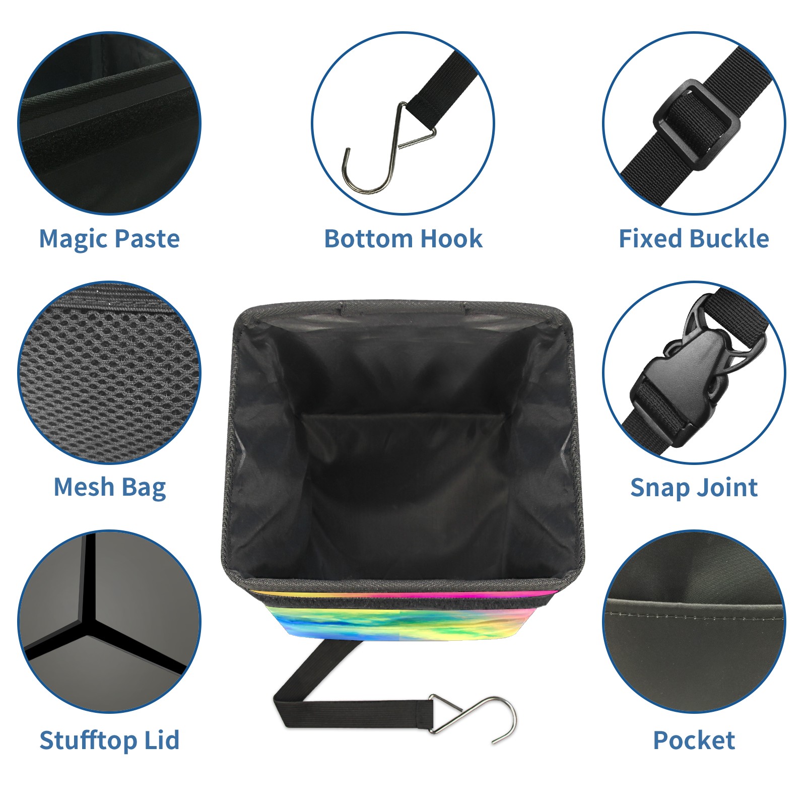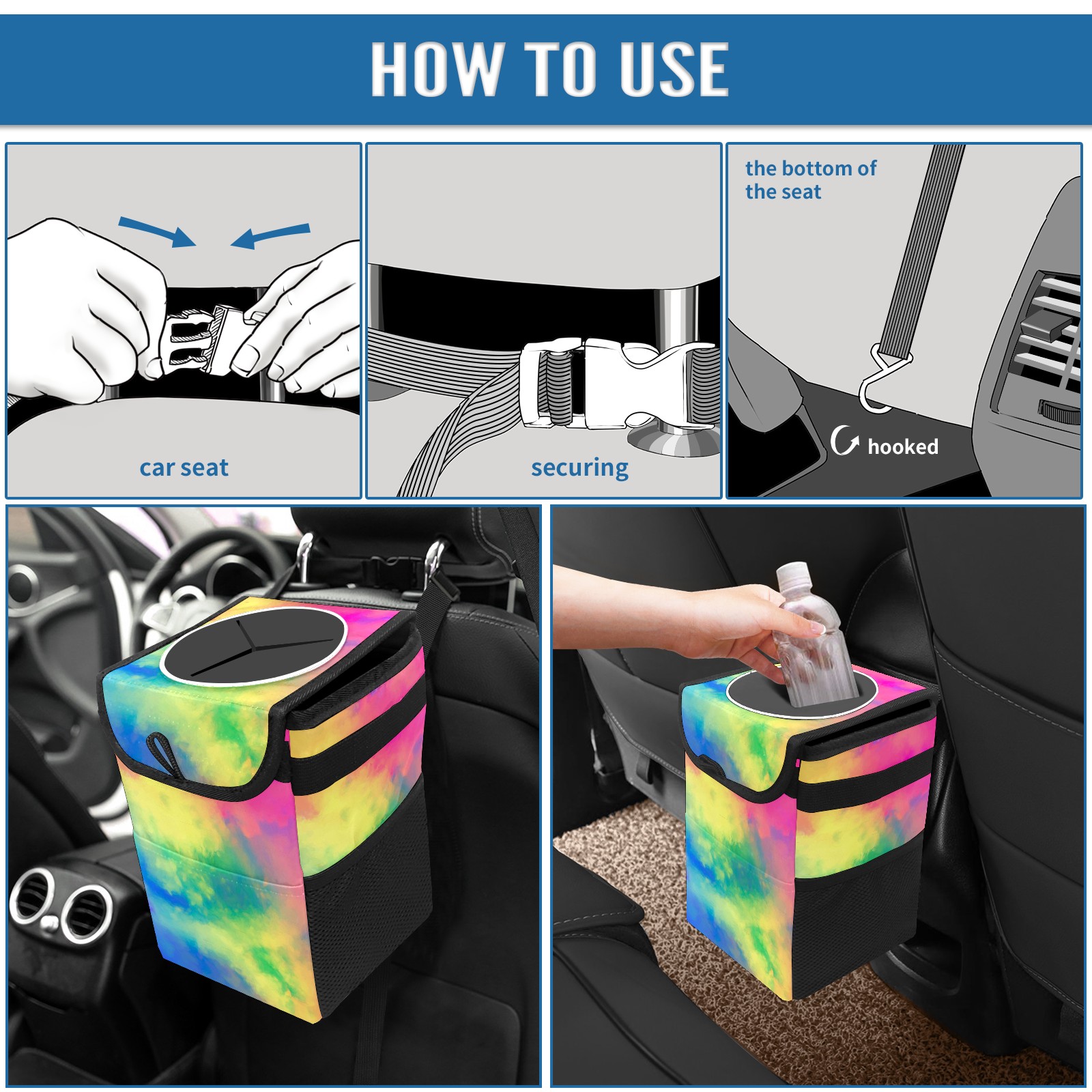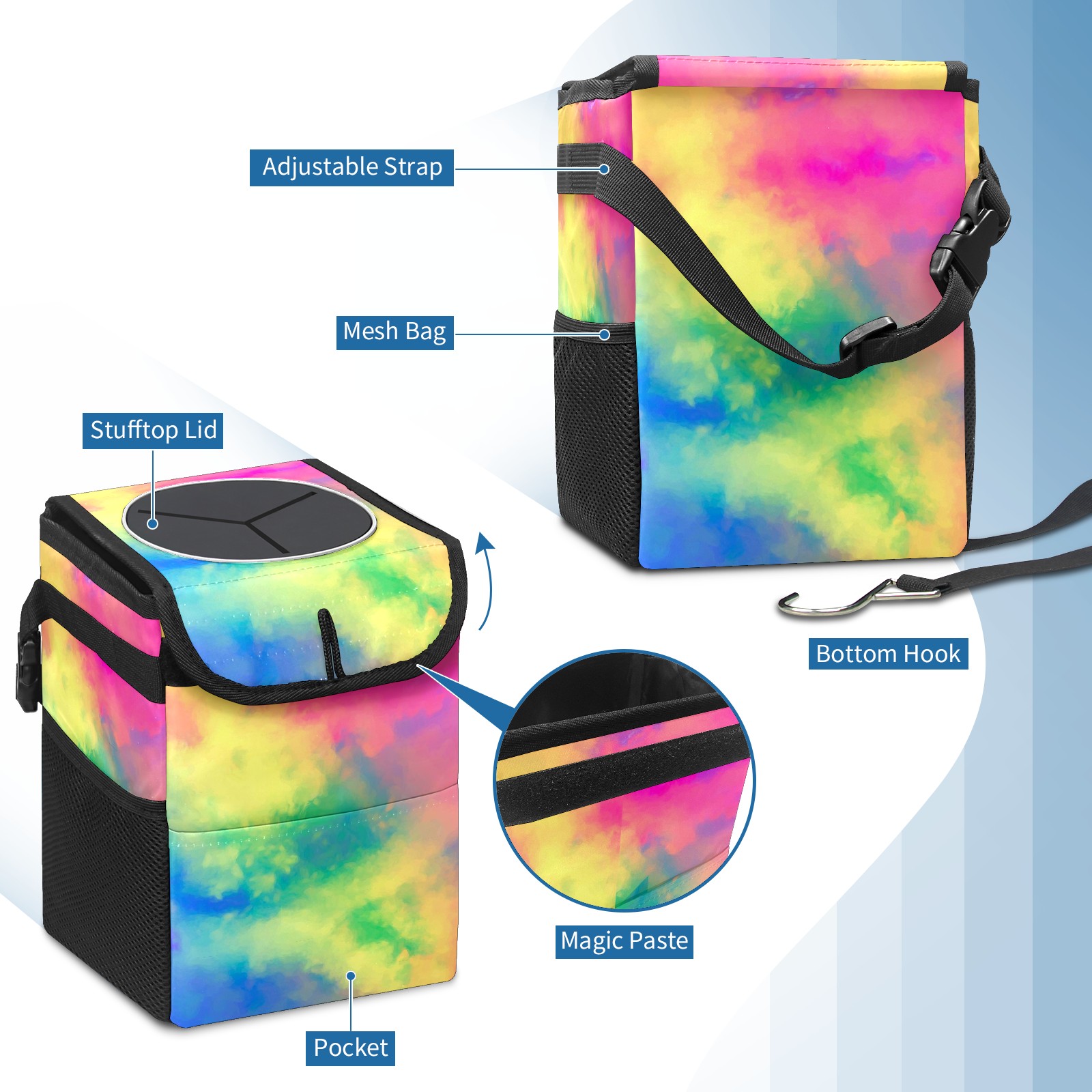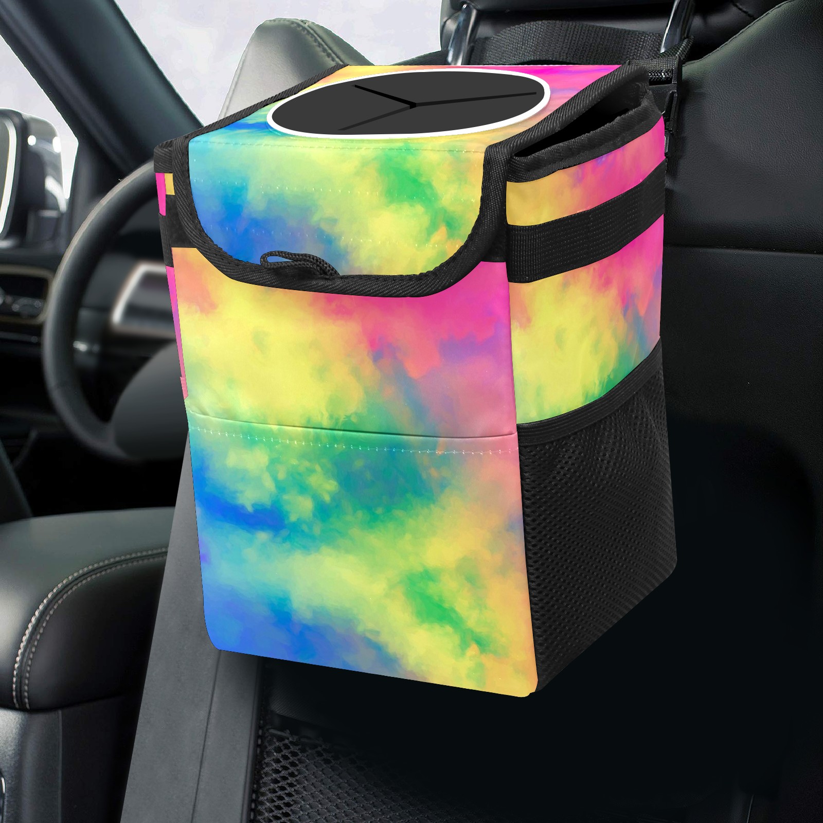 Car Garbage Can — Multi-functional, Lightweight Portable, Reusable Vehicle Trash Can, Waterproof with Sufficient Storage Capacity Girly Pastel Tie Dye