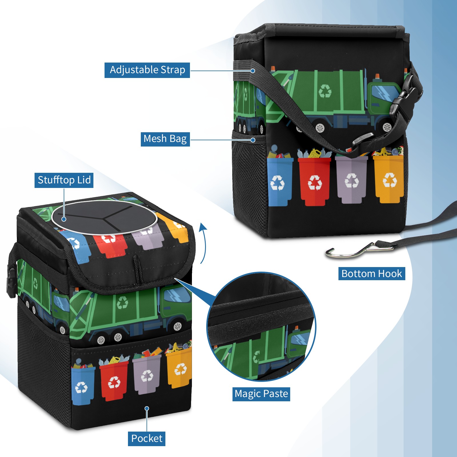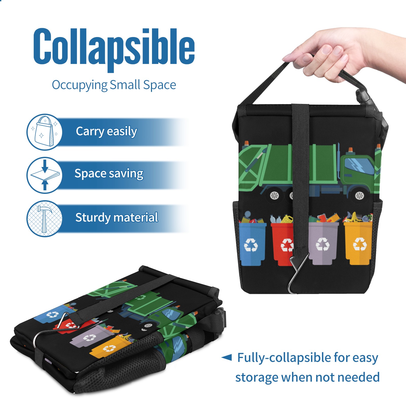 Car Garbage Can — Multi-functional, Lightweight Portable, Reusable Vehicle Trash Can, Waterproof with Sufficient Storage Capacity Garbage Truck Trash Recycling