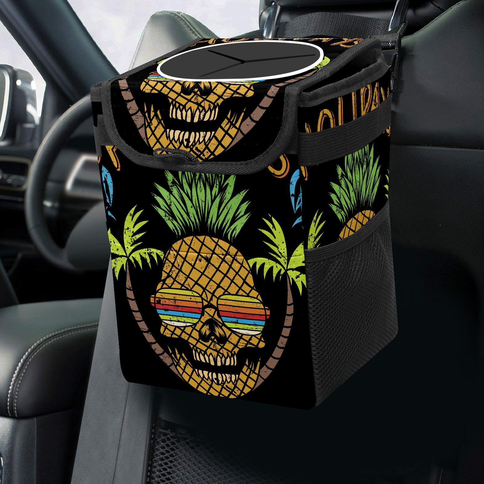 Car Garbage Can — Multi-functional, Lightweight Portable, Reusable Vehicle Trash Can, Waterproof with Sufficient Storage Capacity Funny Pinapple Skull Summer Holiday