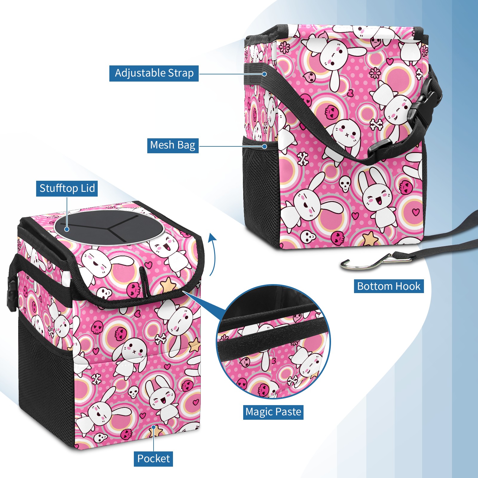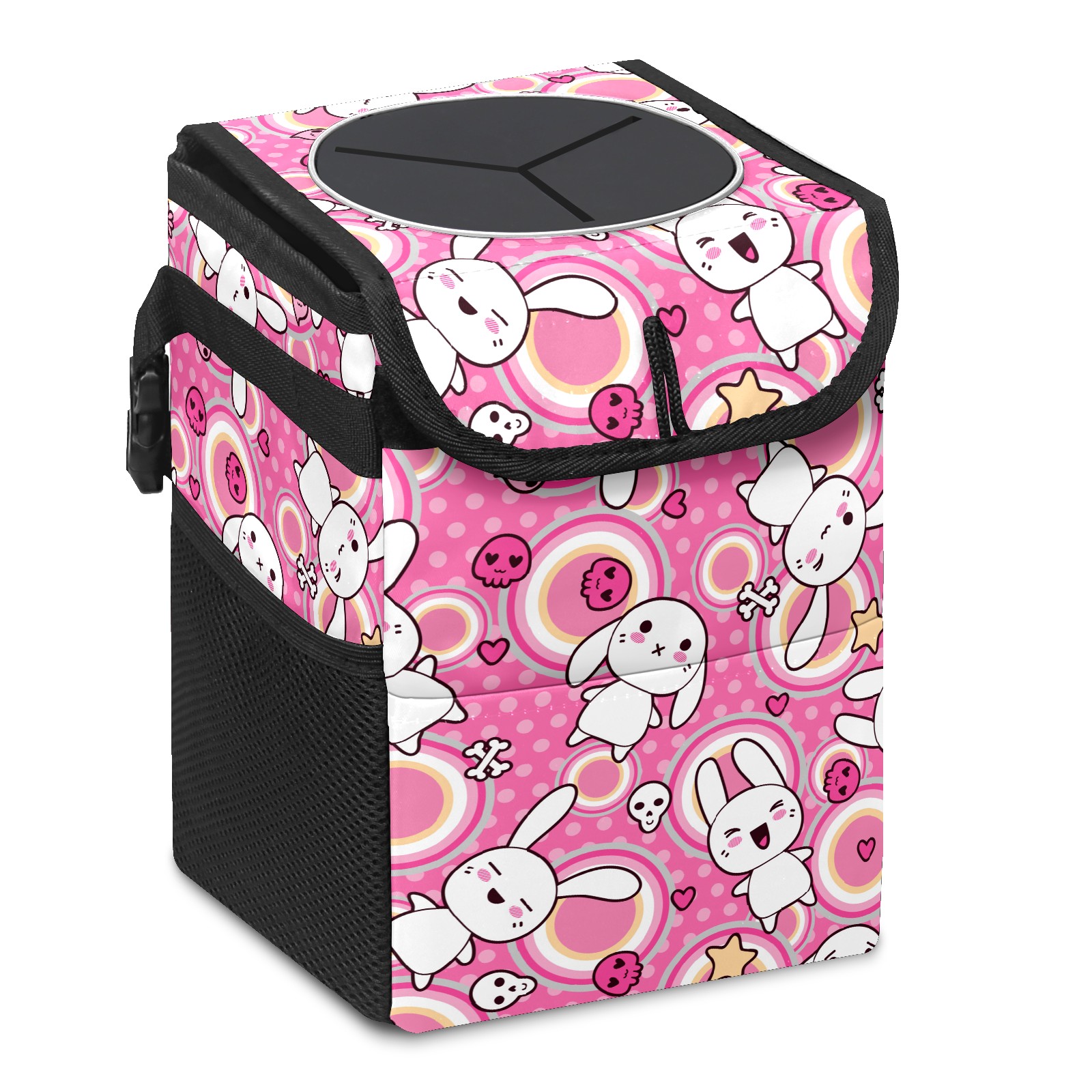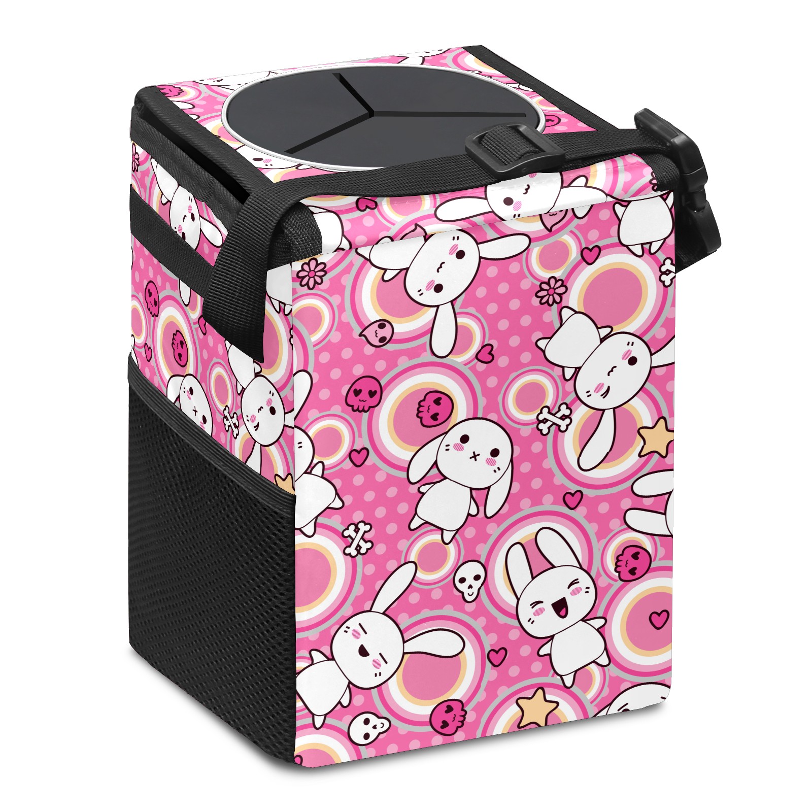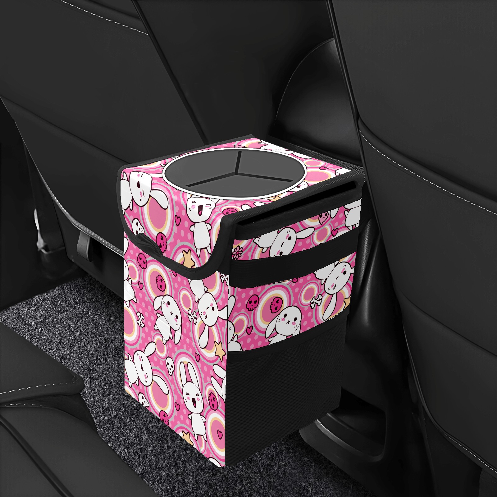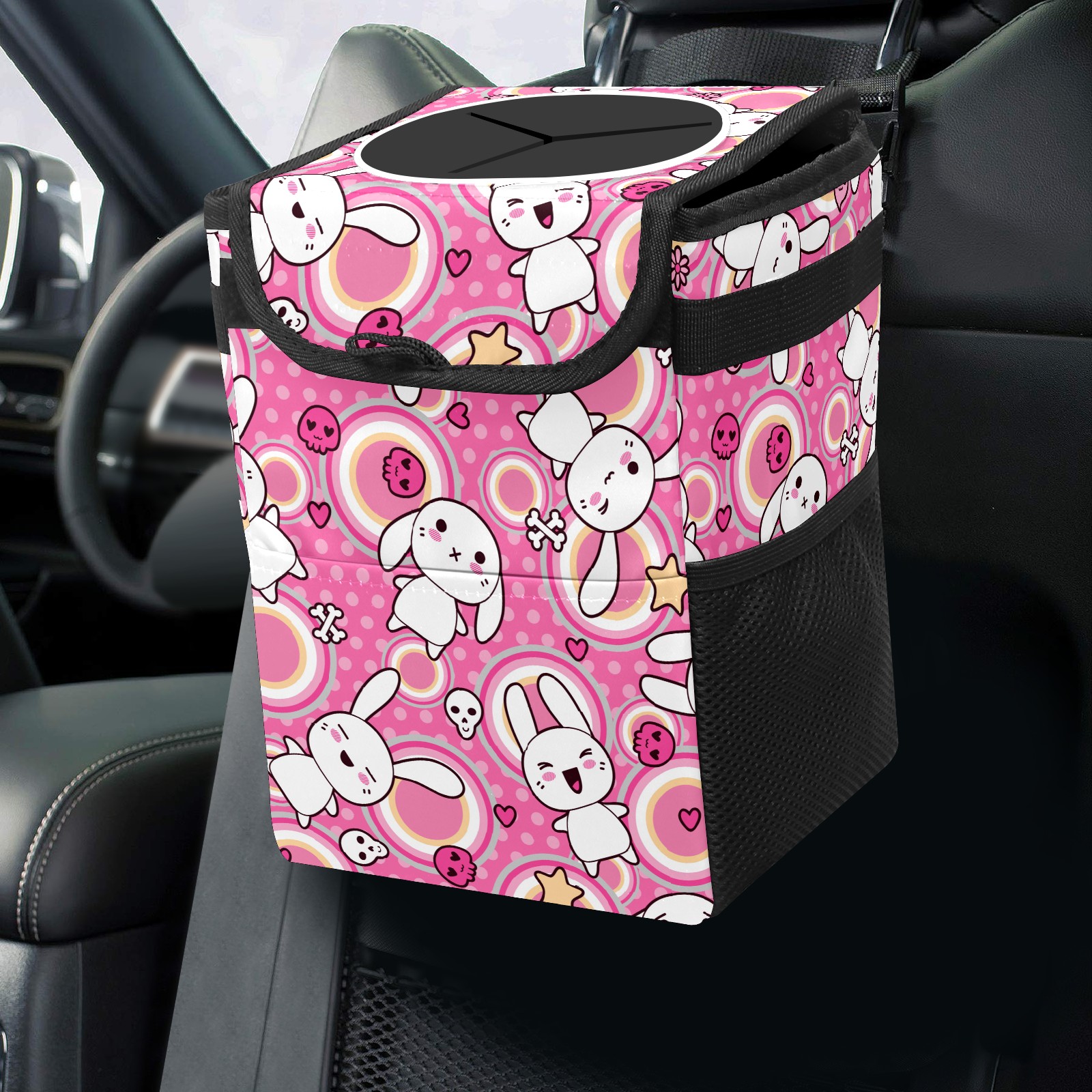 Car Garbage Can — Multi-functional, Lightweight Portable, Reusable Vehicle Trash Can, Waterproof with Sufficient Storage Capacity Cute Rabbit Bunny Pink Polka Dot