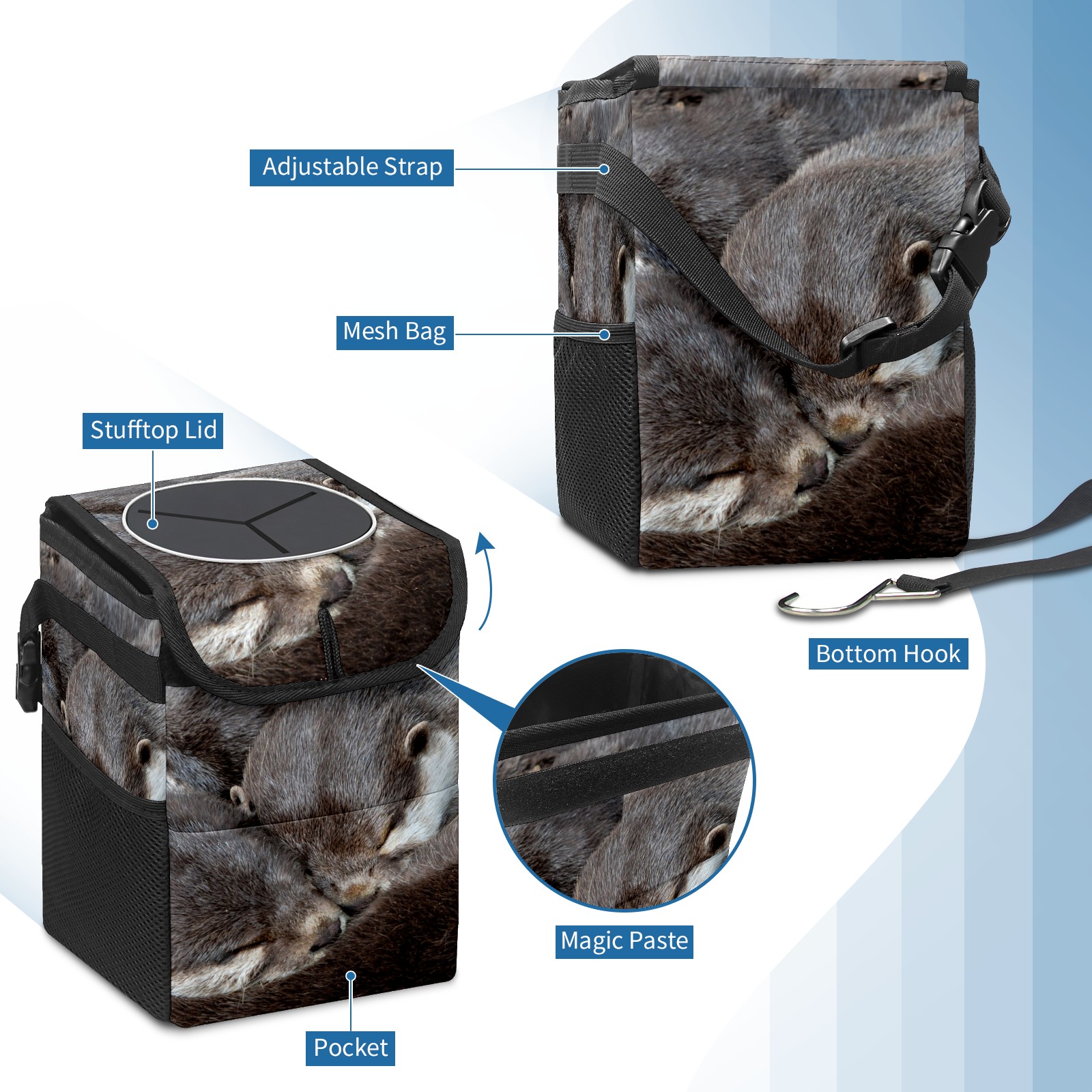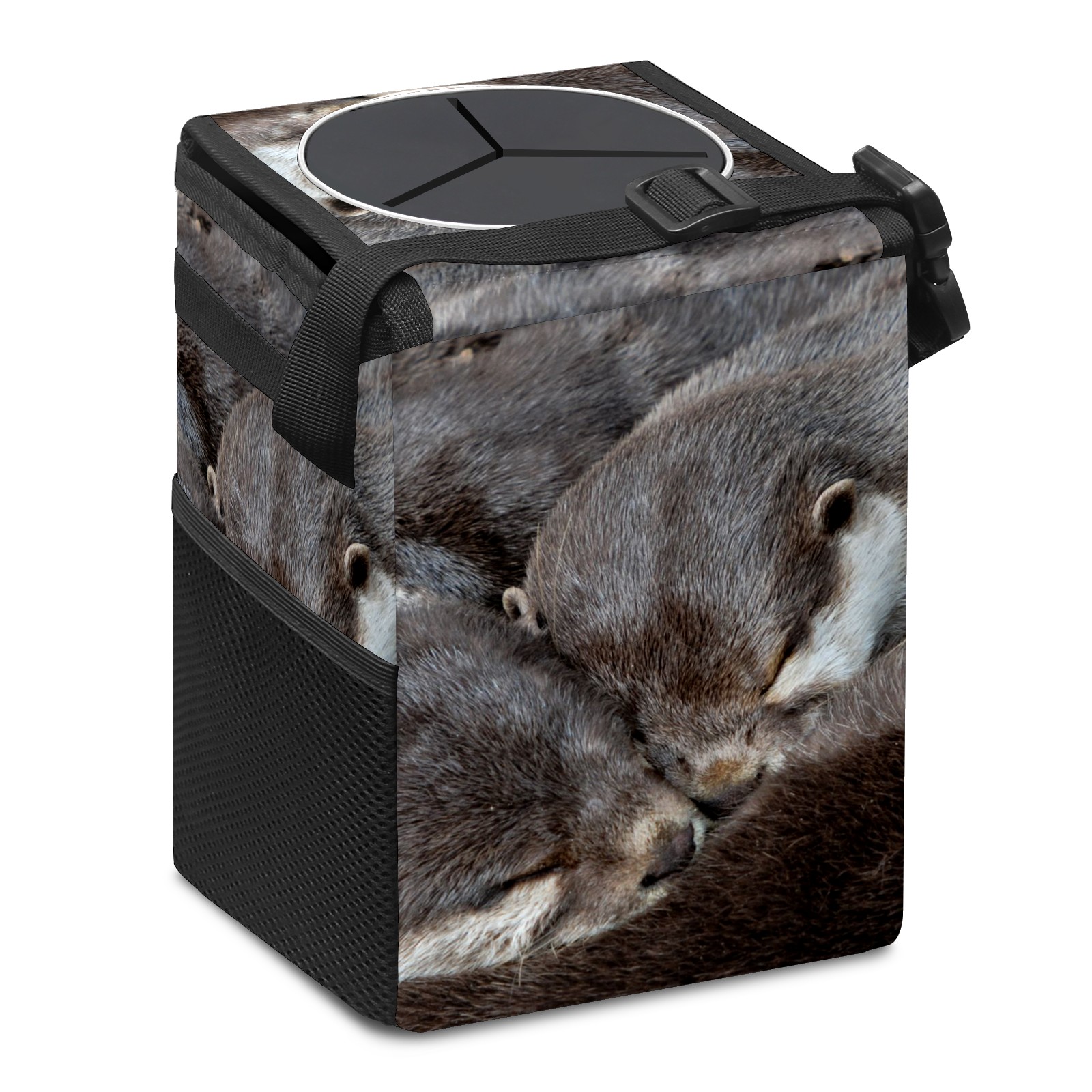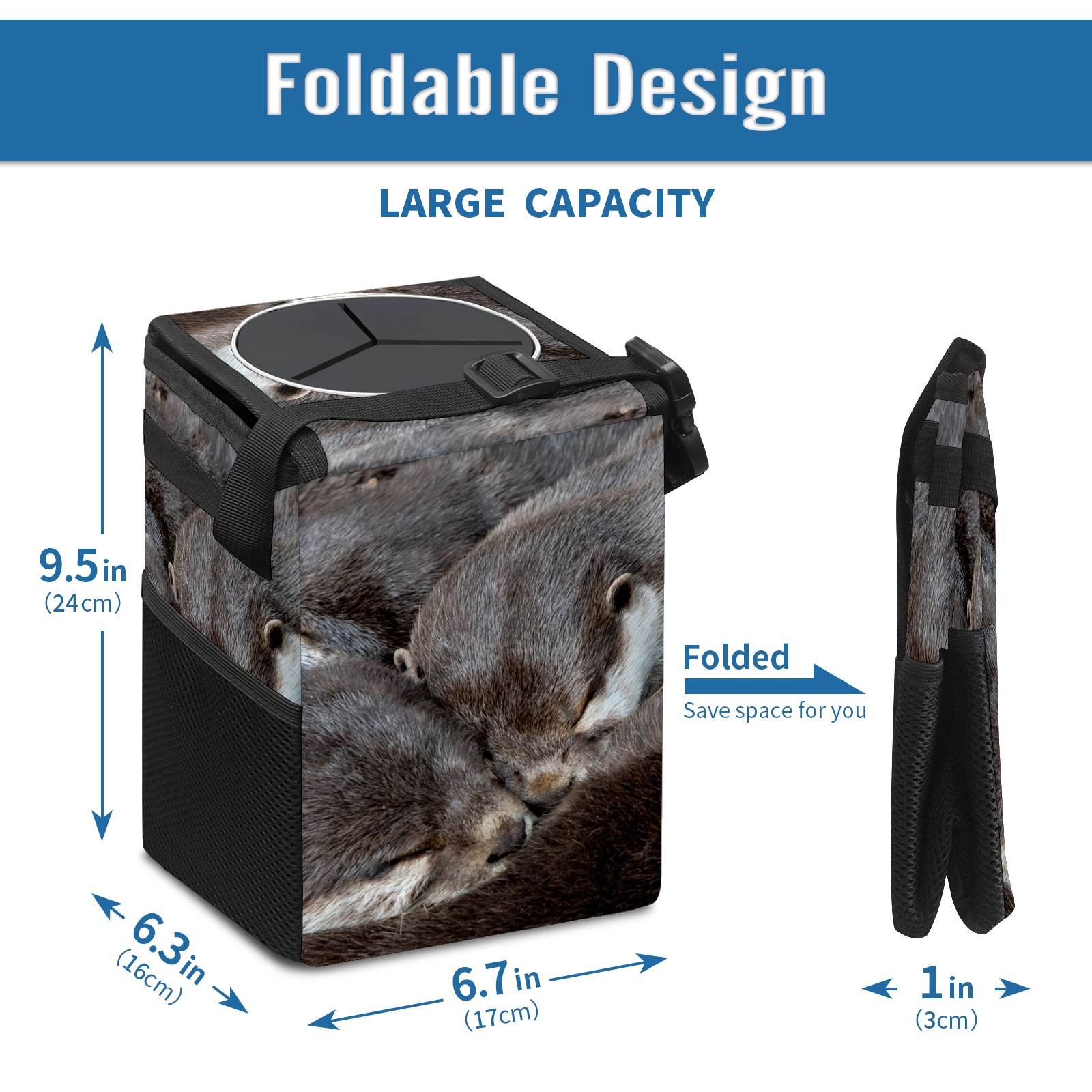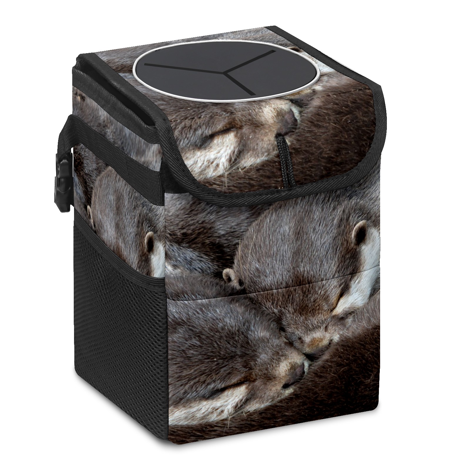 Car Garbage Can — Multi-functional, Lightweight Portable, Reusable Vehicle Trash Can, Waterproof with Sufficient Storage Capacity Cute Otters Family Sleeping