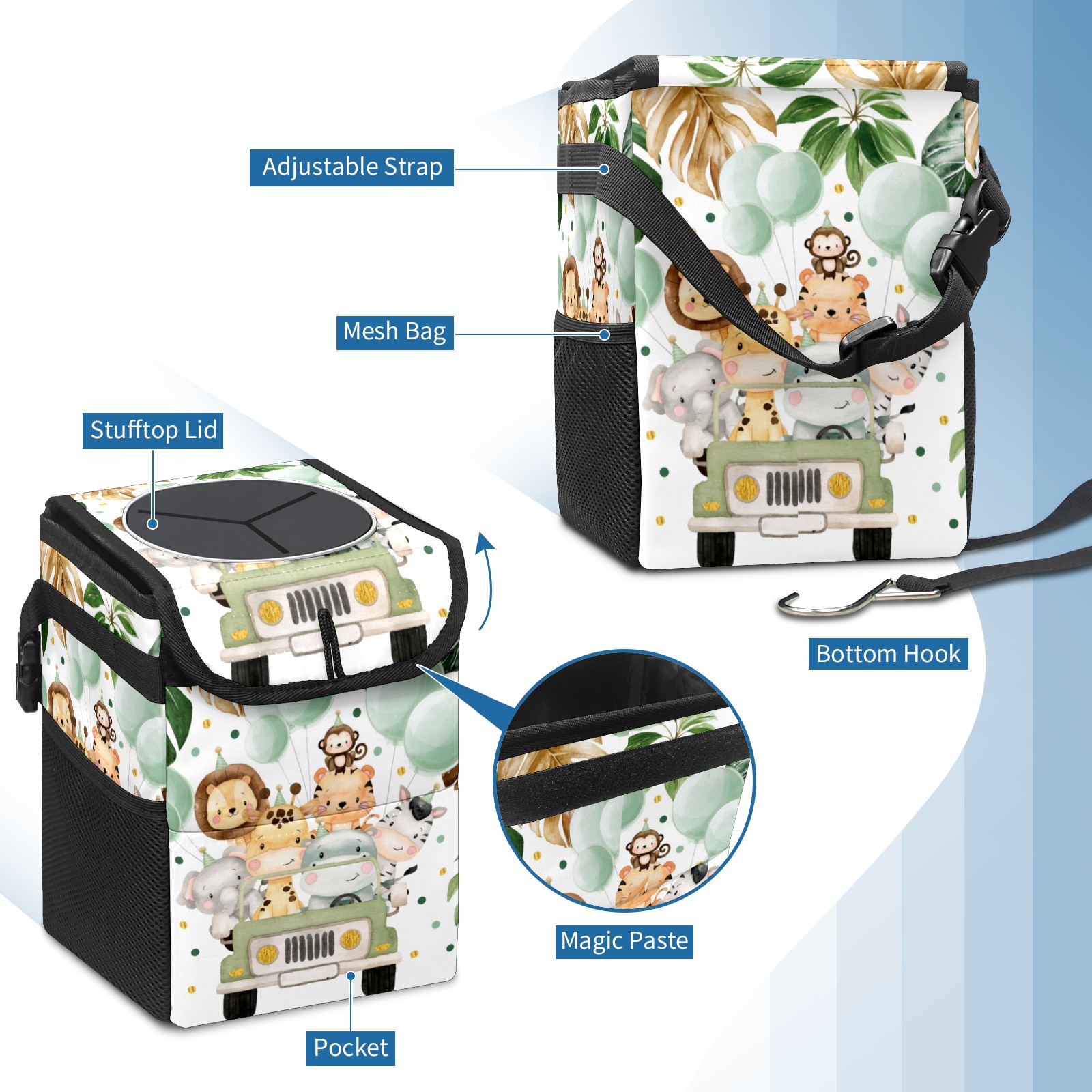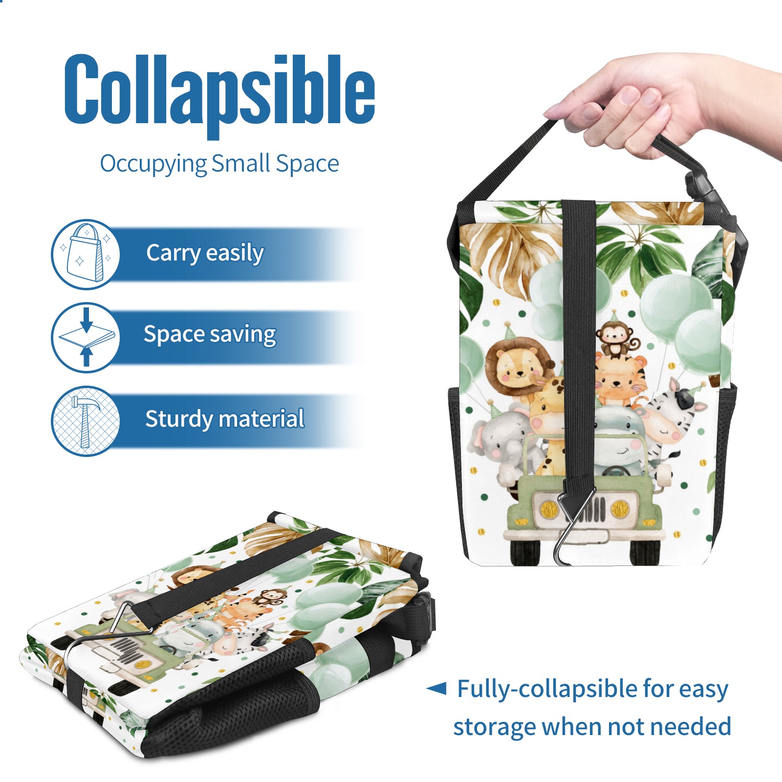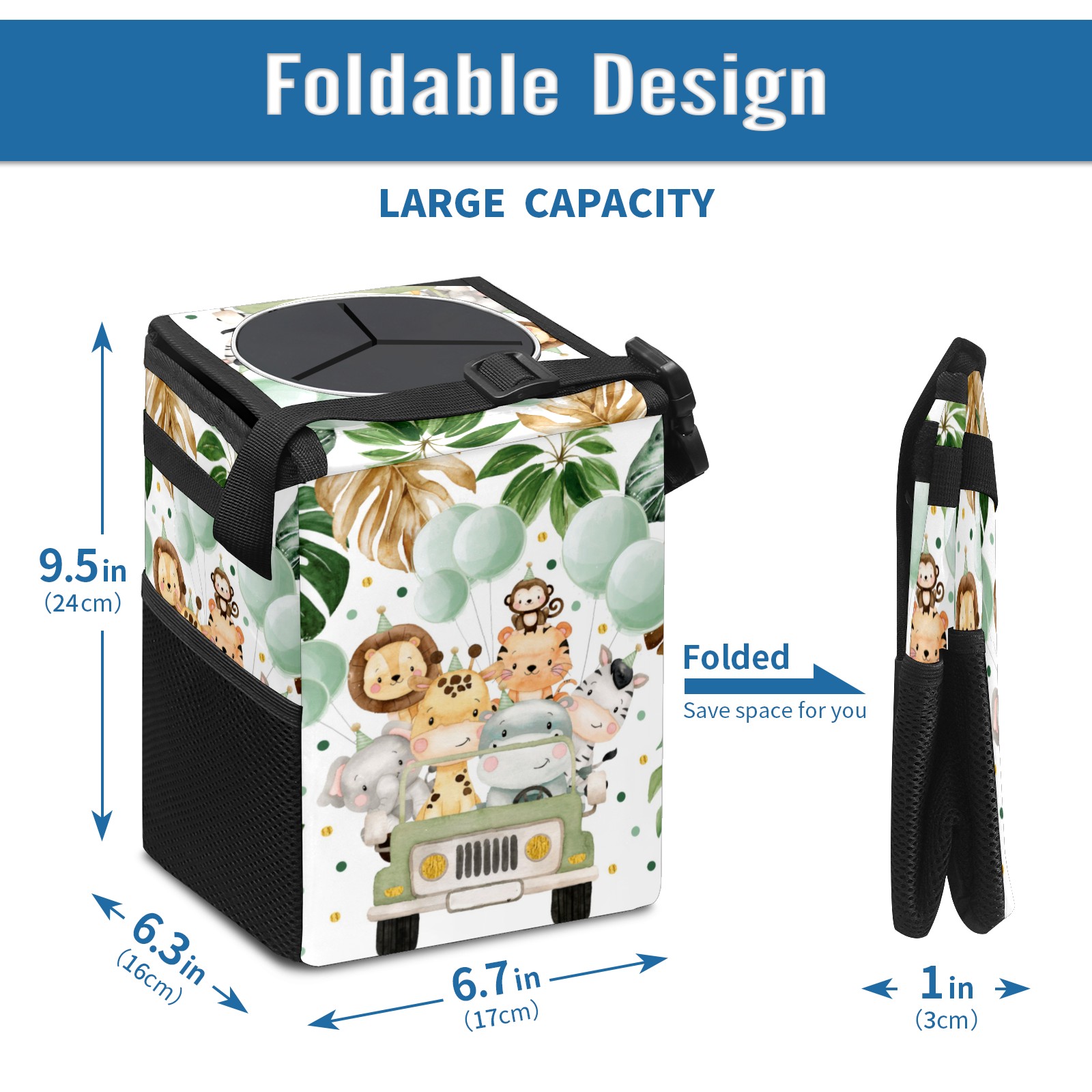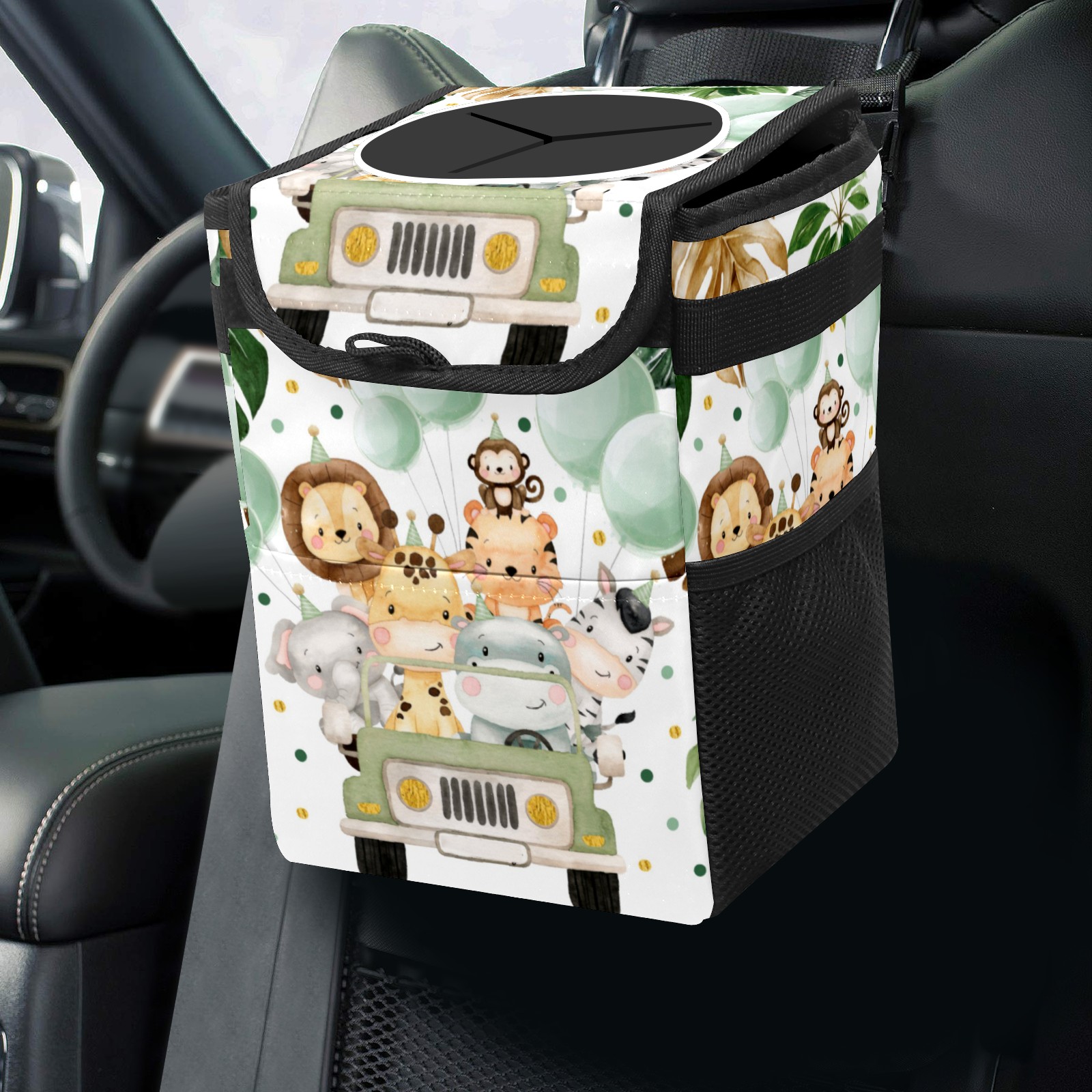 Car Garbage Can — Multi-functional, Lightweight Portable, Reusable Vehicle Trash Can, Waterproof with Sufficient Storage Capacity Cute Jungle Animals