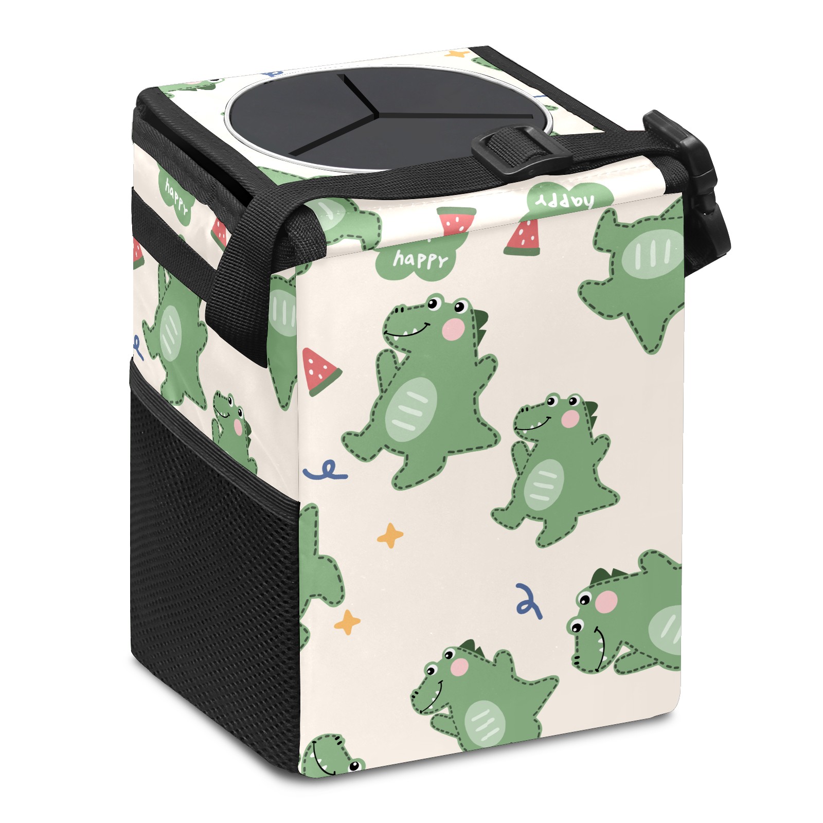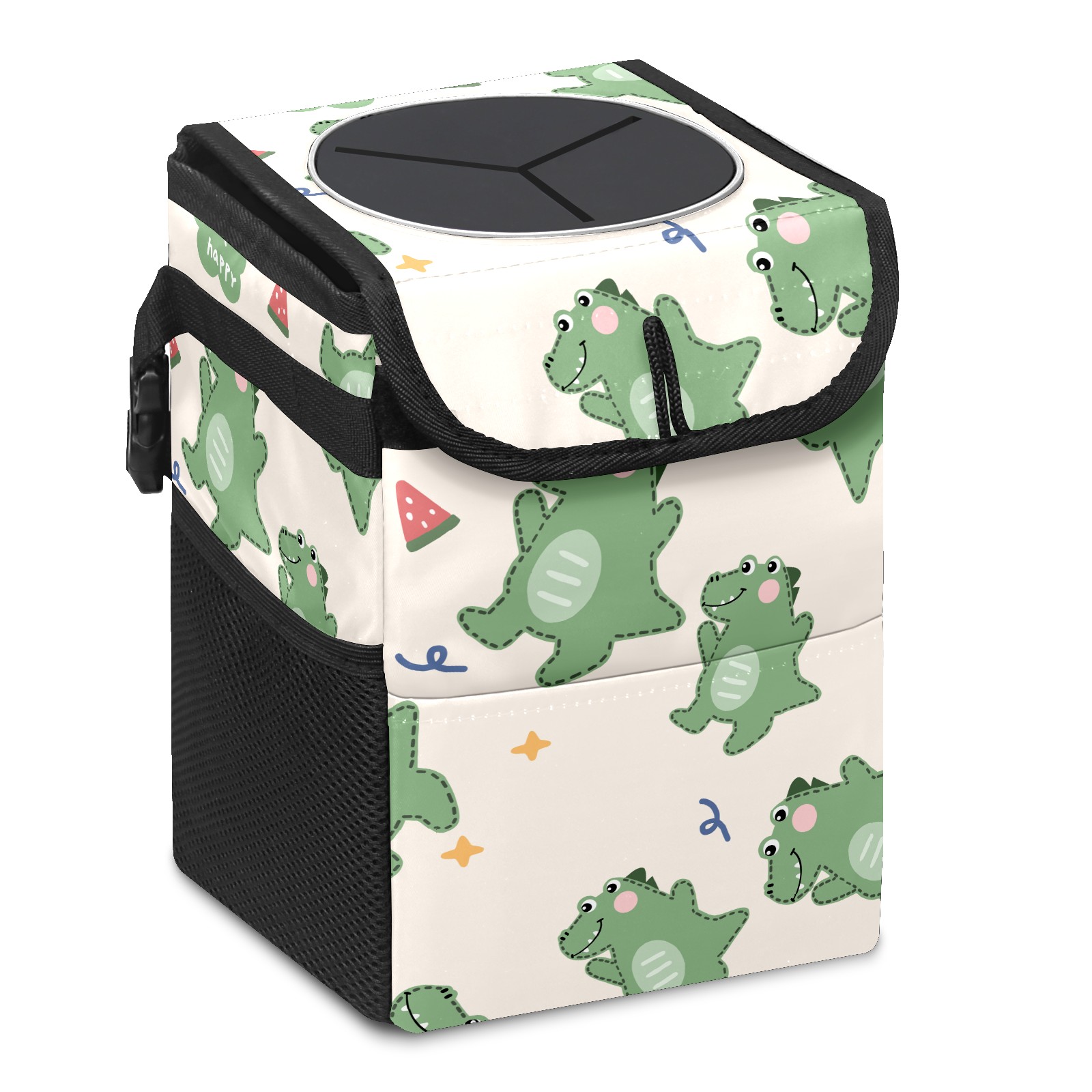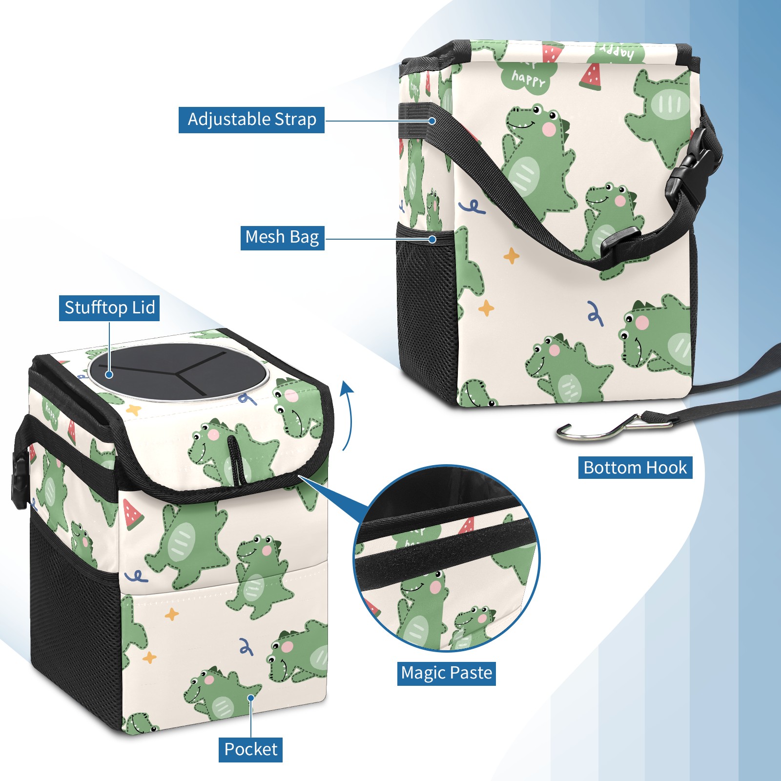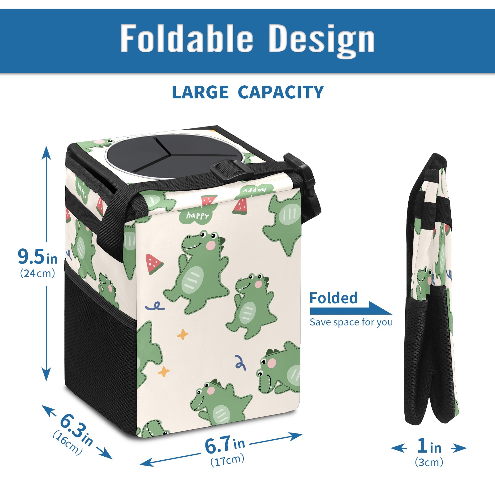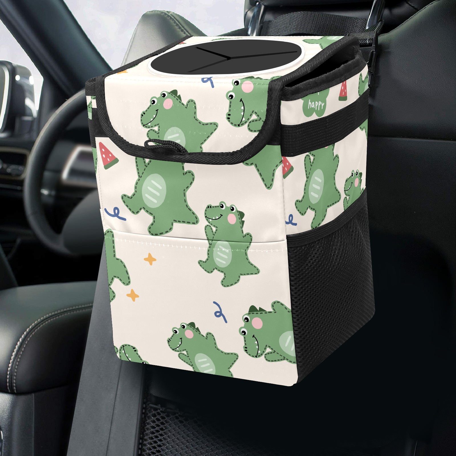 Car Garbage Can — Multi-functional, Lightweight Portable, Reusable Vehicle Trash Can, Waterproof with Sufficient Storage Capacity Cute Green Dinosaur Babies