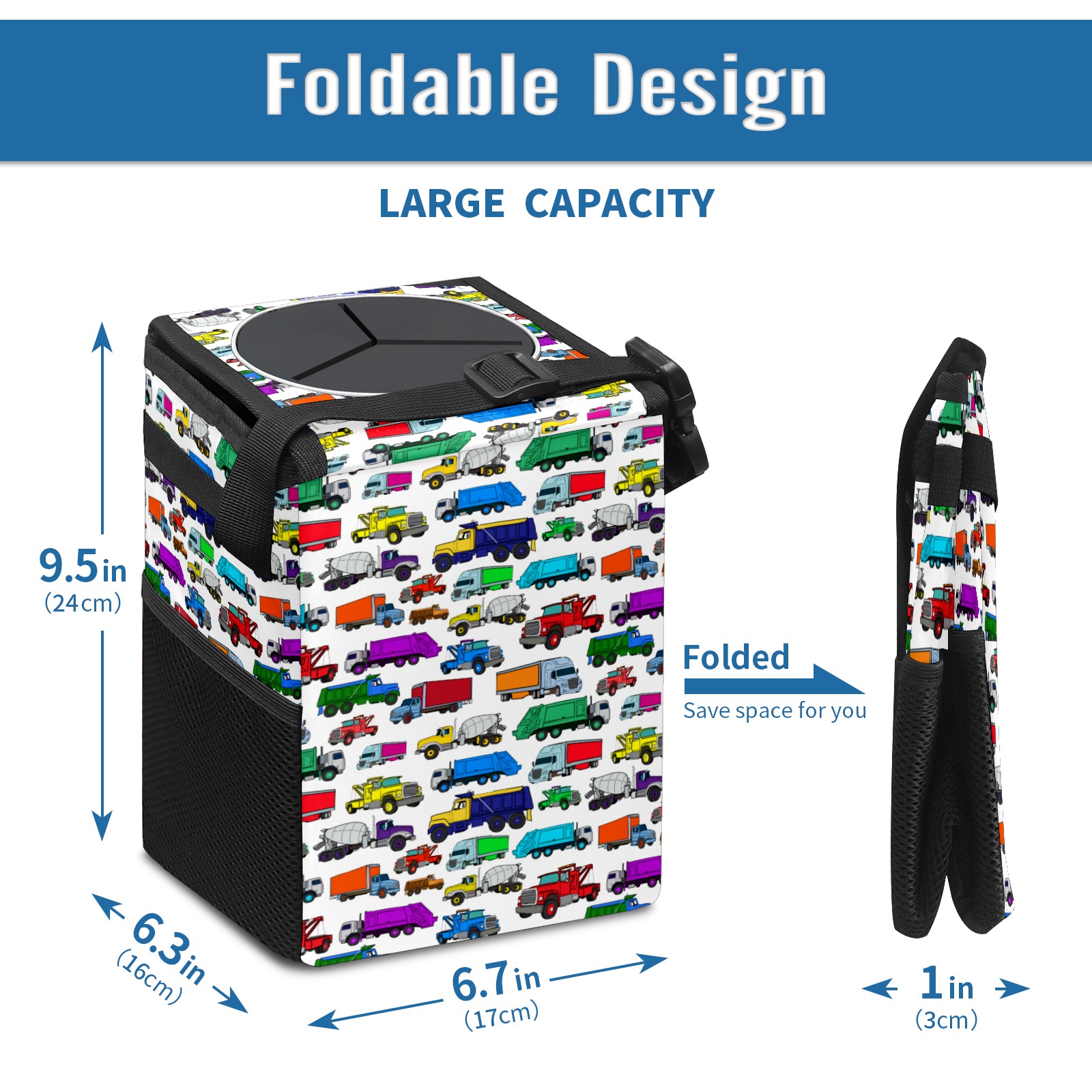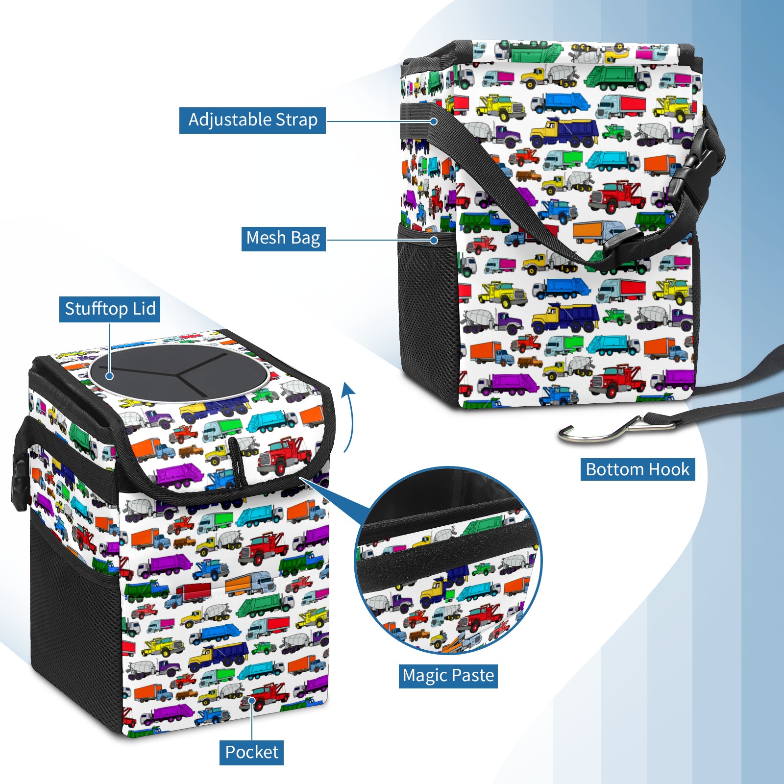 Car Garbage Can — Multi-functional, Lightweight Portable, Reusable Vehicle Trash Can, Waterproof with Sufficient Storage Capacity Cute Cartoon-style Truck