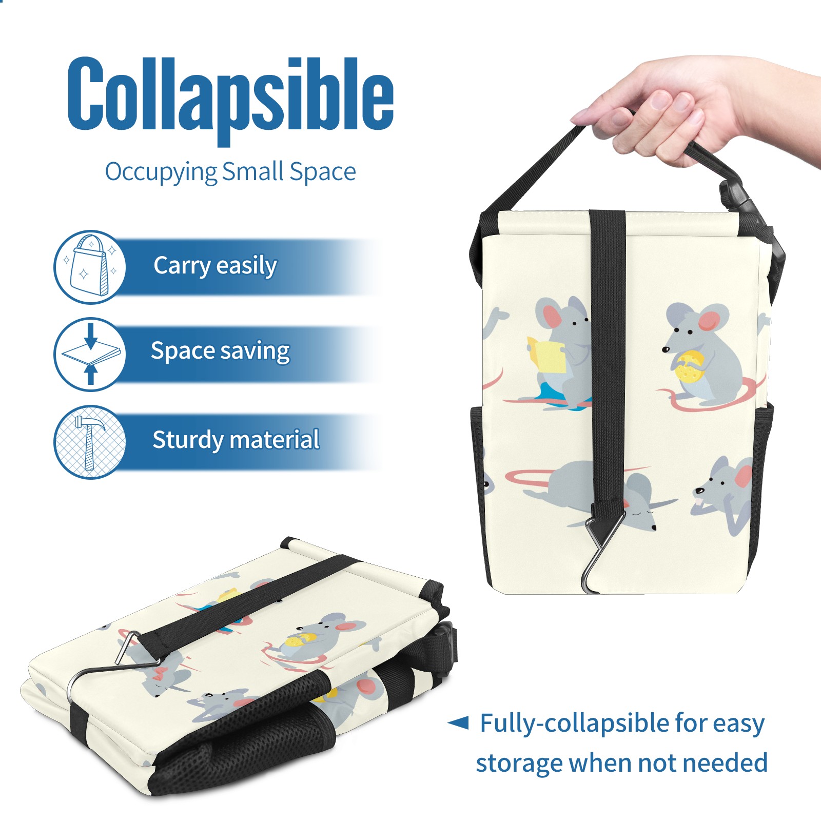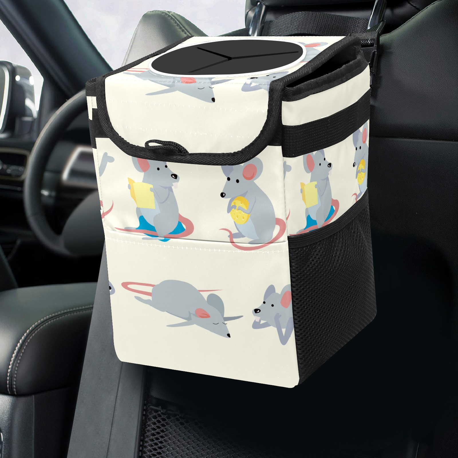 Car Garbage Can — Multi-functional, Lightweight Portable, Reusable Vehicle Trash Can, Waterproof with Sufficient Storage Capacity Cute Cartoon Gerbil Mouse