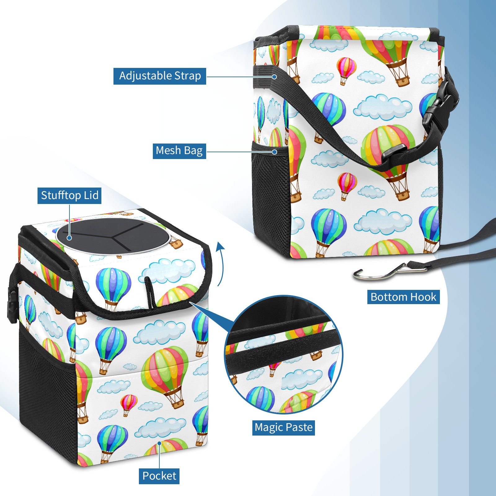 Car Garbage Can — Multi-functional, Lightweight Portable, Reusable Vehicle Trash Can, Waterproof with Sufficient Storage Capacity Colorful Hot Air Balloons Cloud