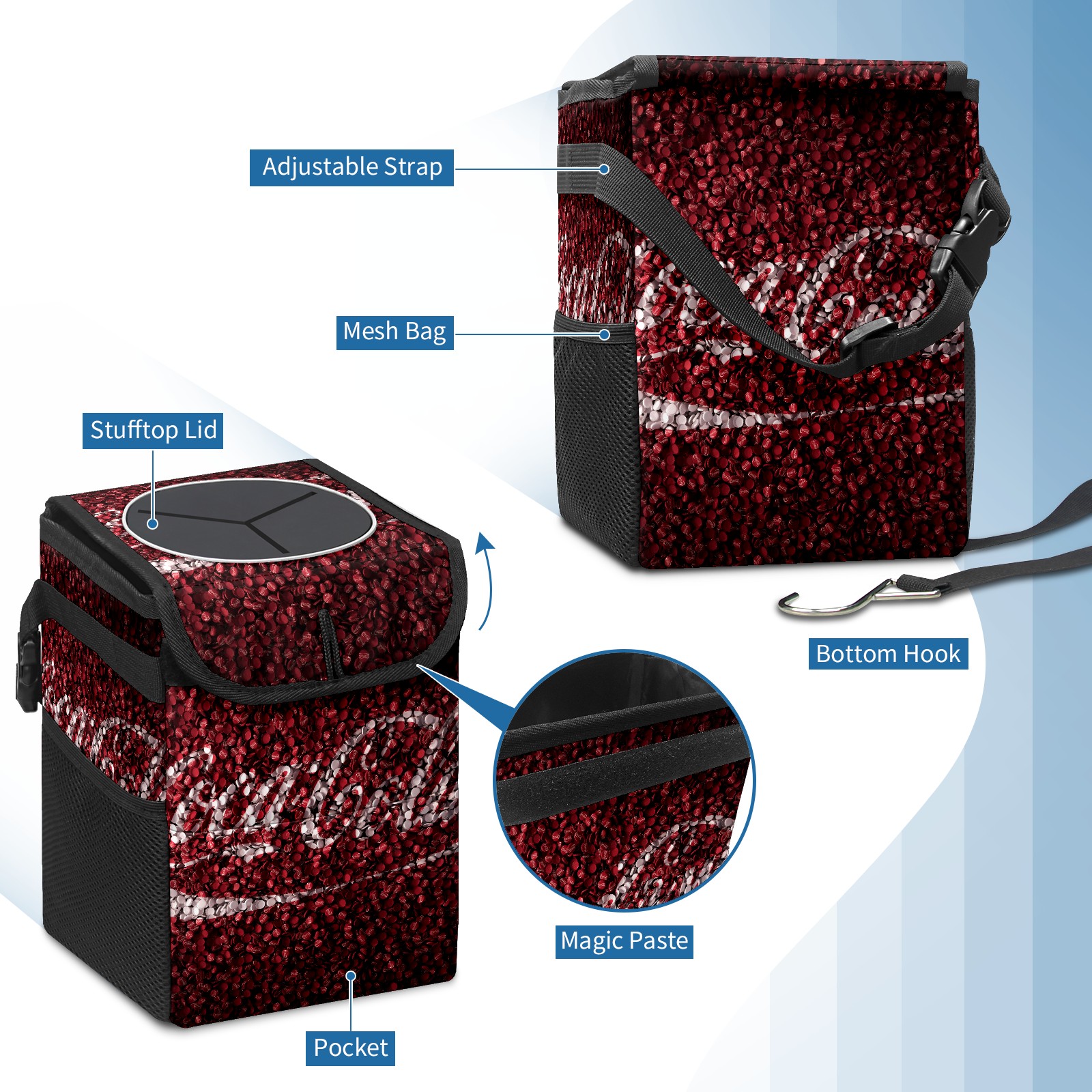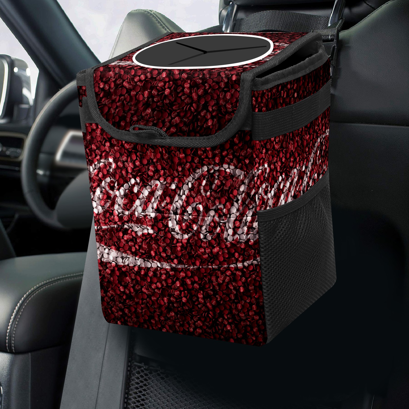 Car Garbage Can — Multi-functional, Lightweight Portable, Reusable Vehicle Trash Can, Waterproof with Sufficient Storage Capacity Classic Red Coca Cola Cap Sign