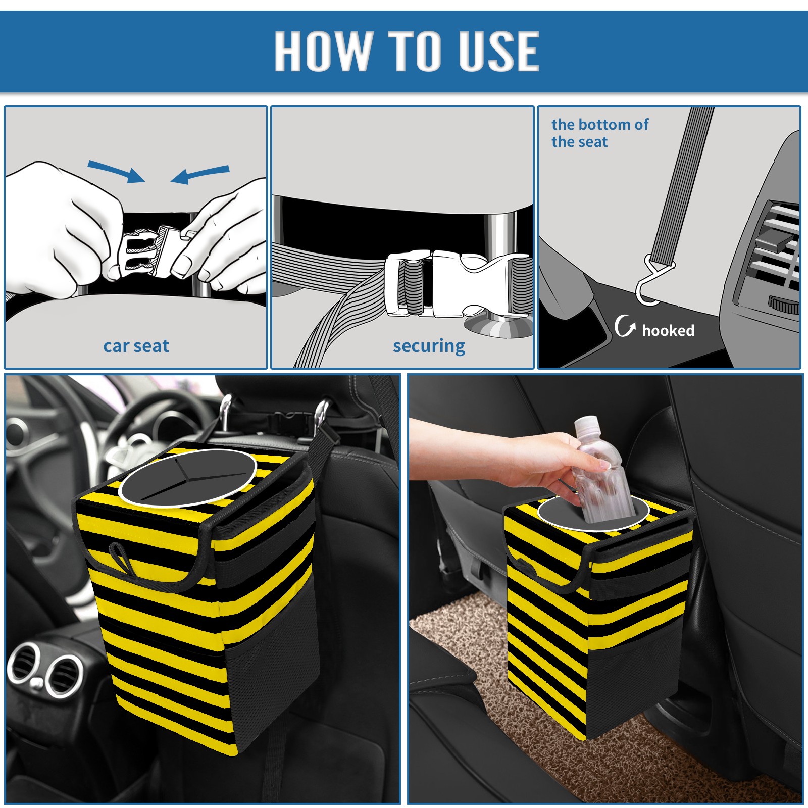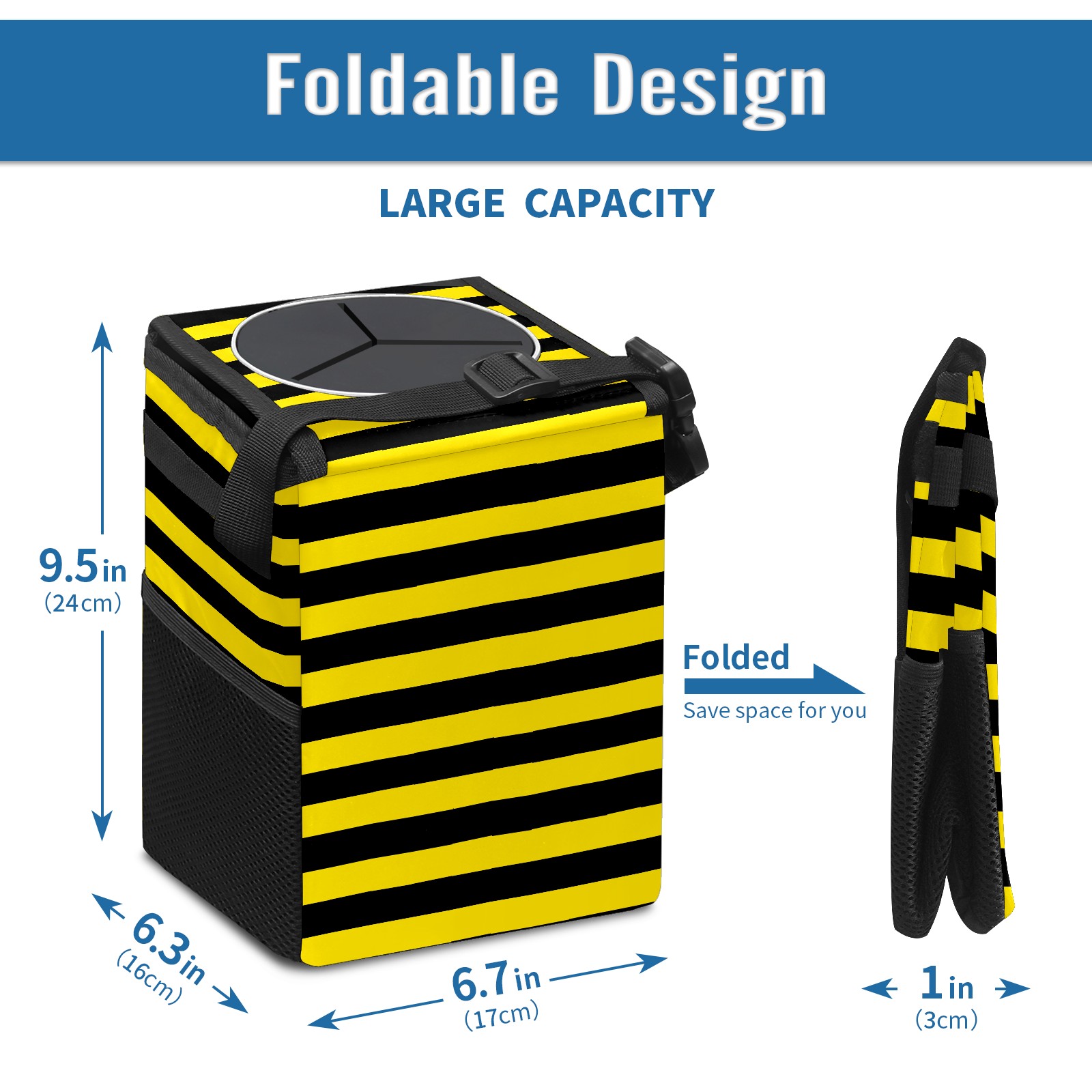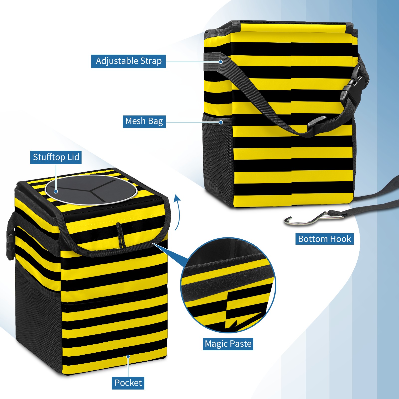 Car Garbage Can — Multi-functional, Lightweight Portable, Reusable Vehicle Trash Can, Waterproof with Sufficient Storage Capacity Black And Yellow Stripe Honey Bee Color