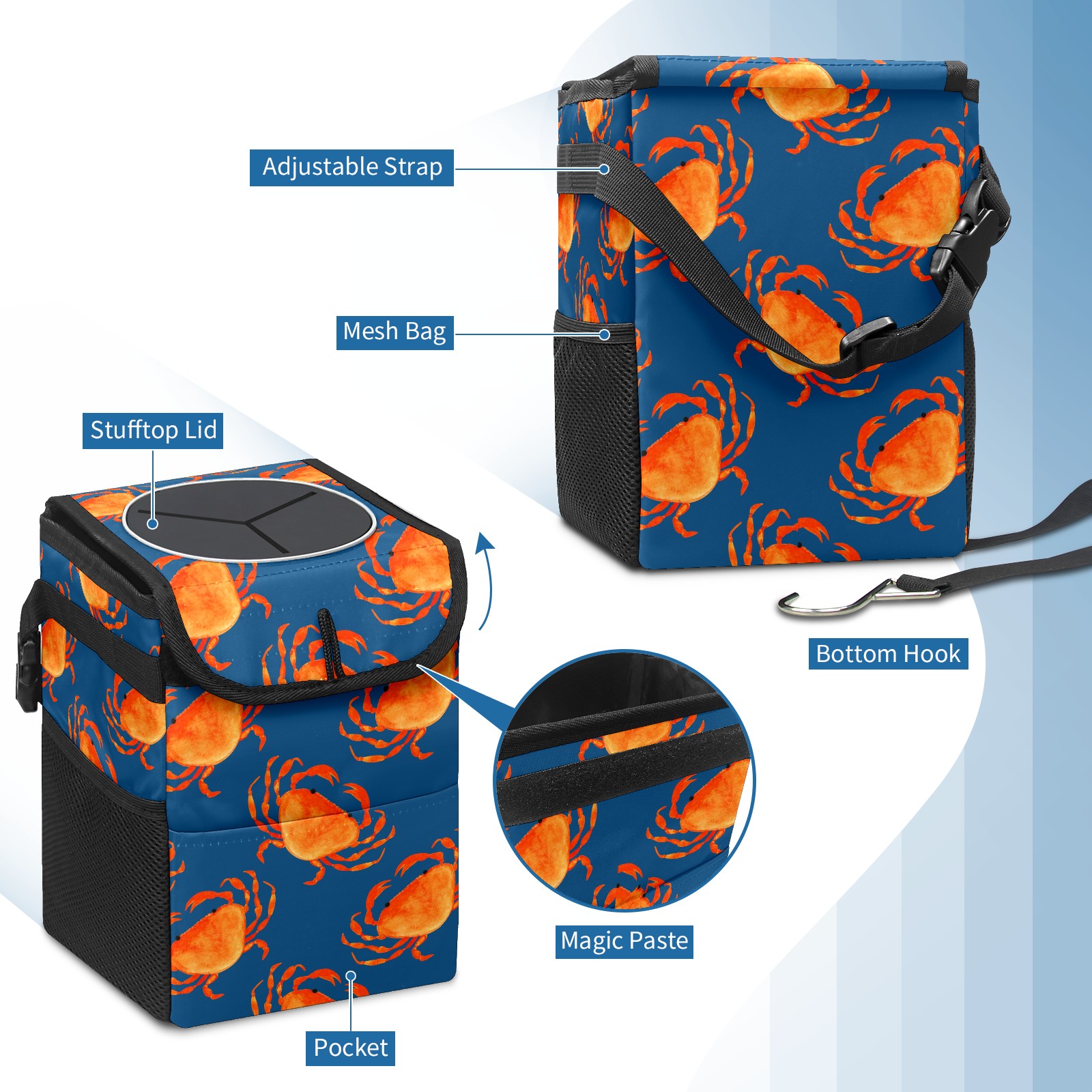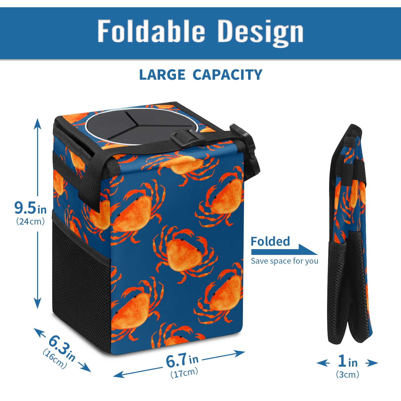 Car Garbage Can — Multi-functional, Lightweight Portable, Reusable Vehicle Trash Can, Waterproof with Sufficient Storage Capacity Beach Sea Crab