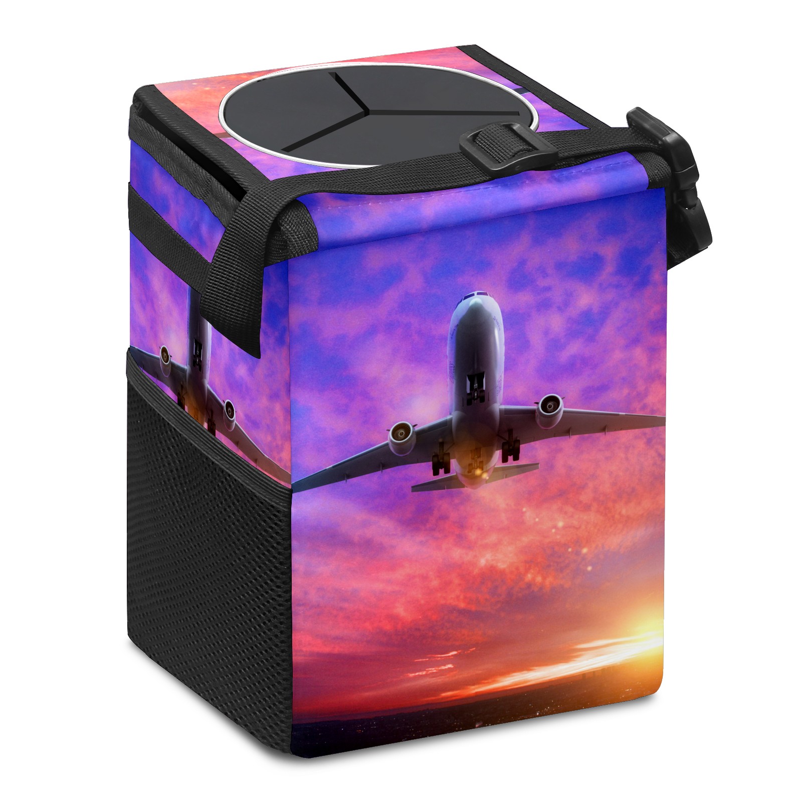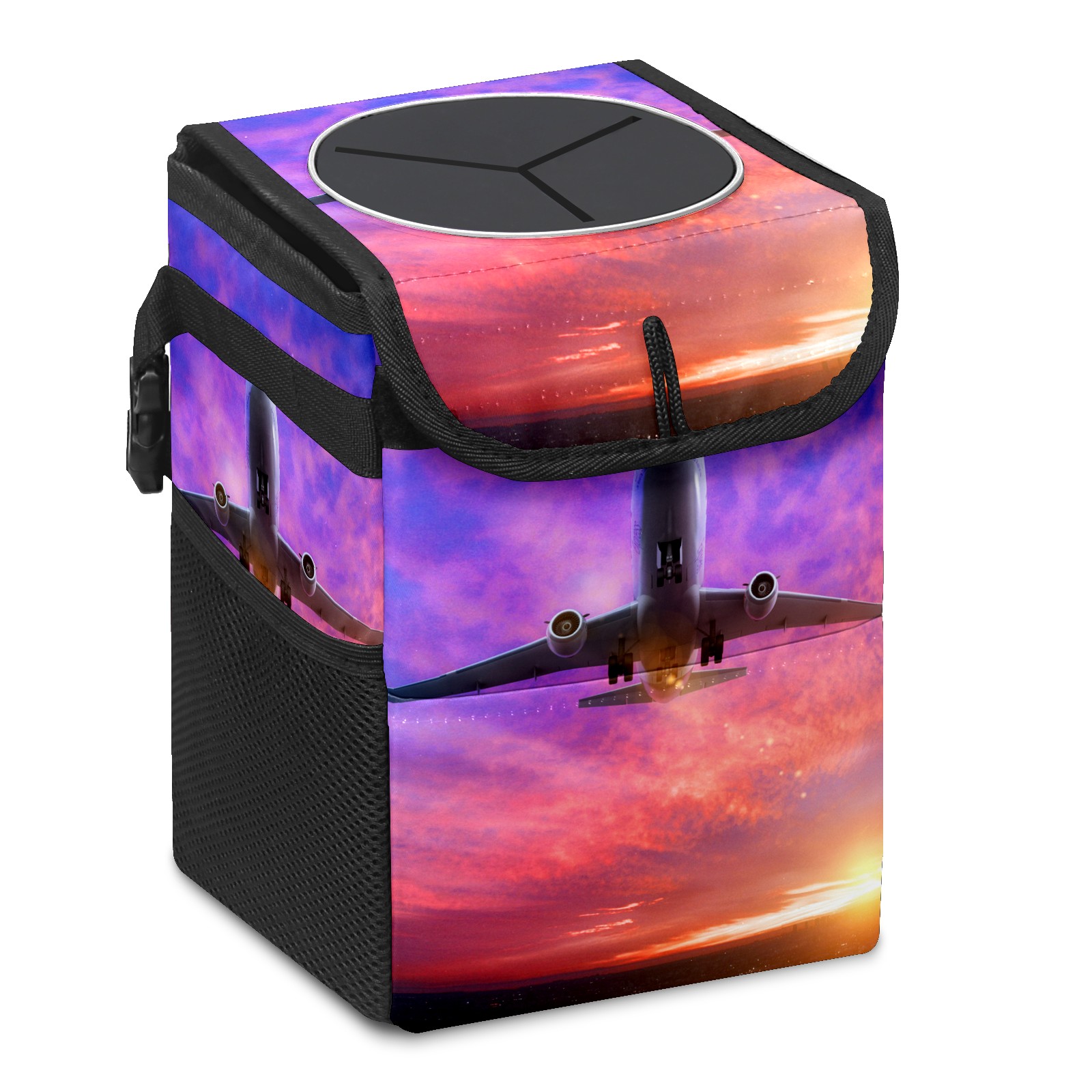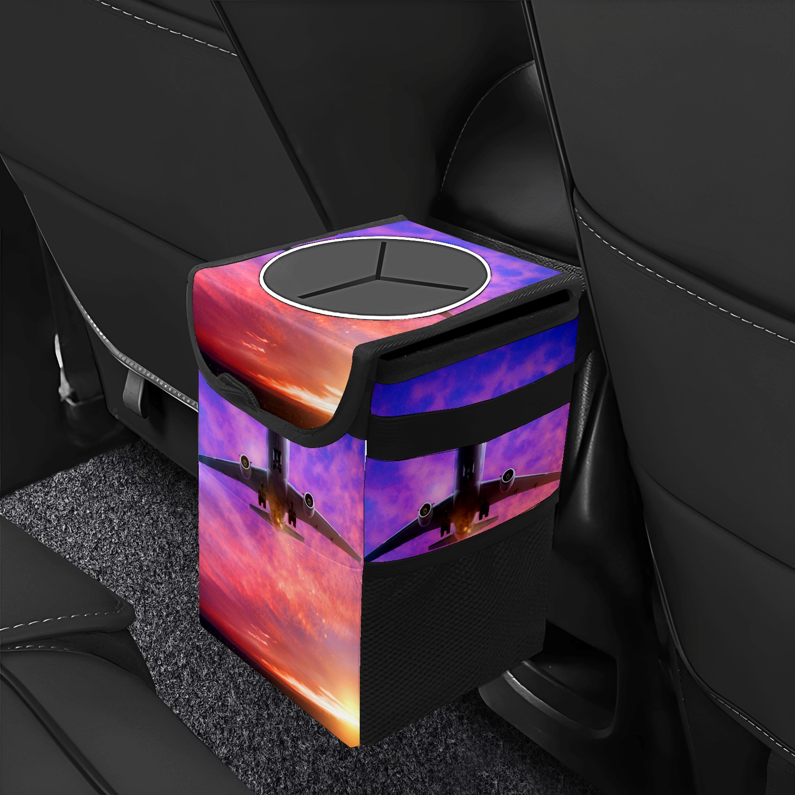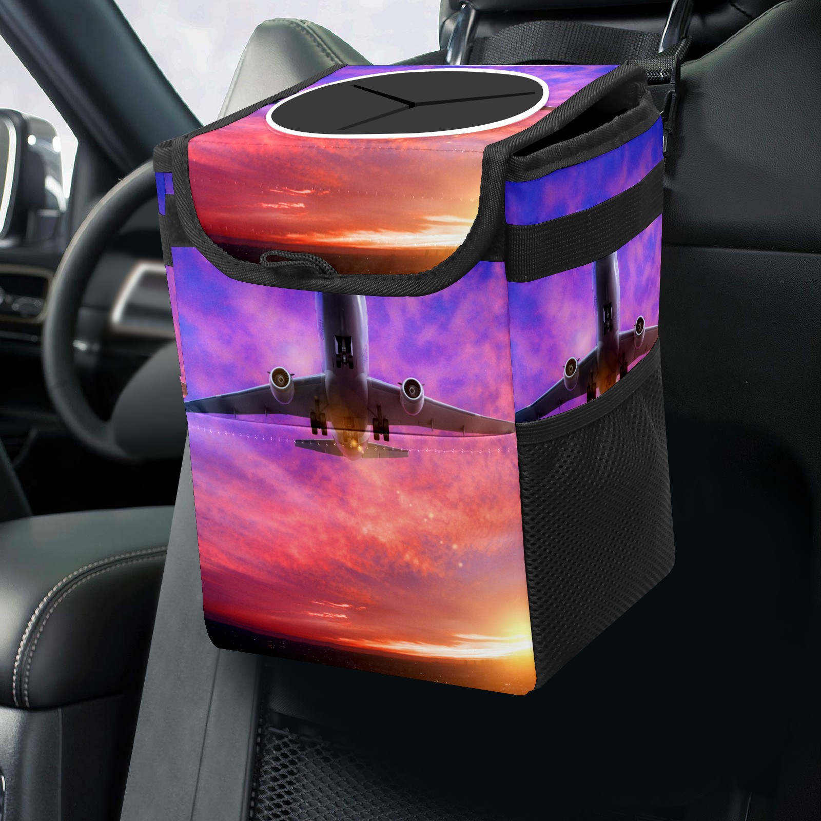 Car Garbage Can — Multi-functional, Lightweight Portable, Reusable Vehicle Trash Can, Waterproof with Sufficient Storage Capacity Airplane Helicopter In Sunset