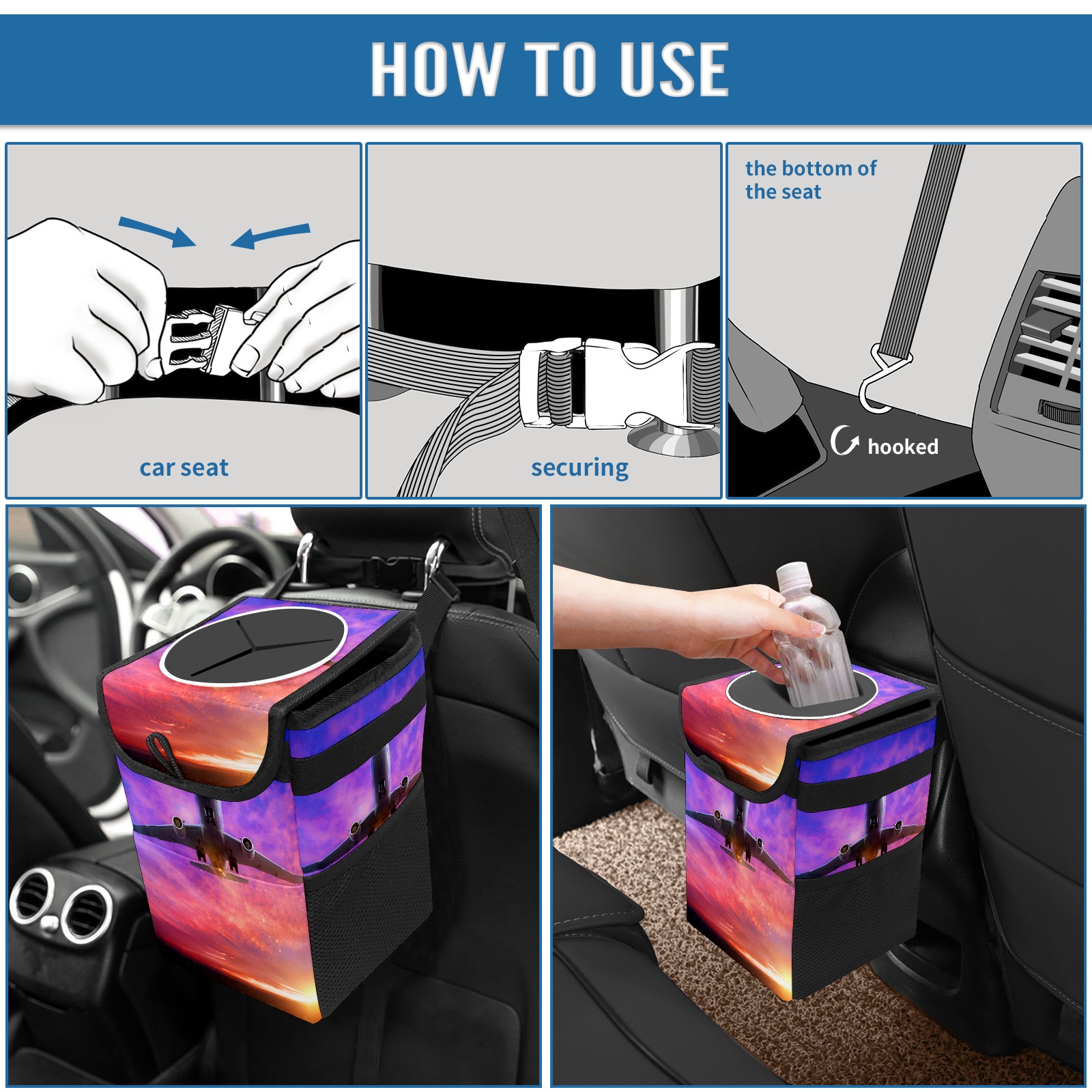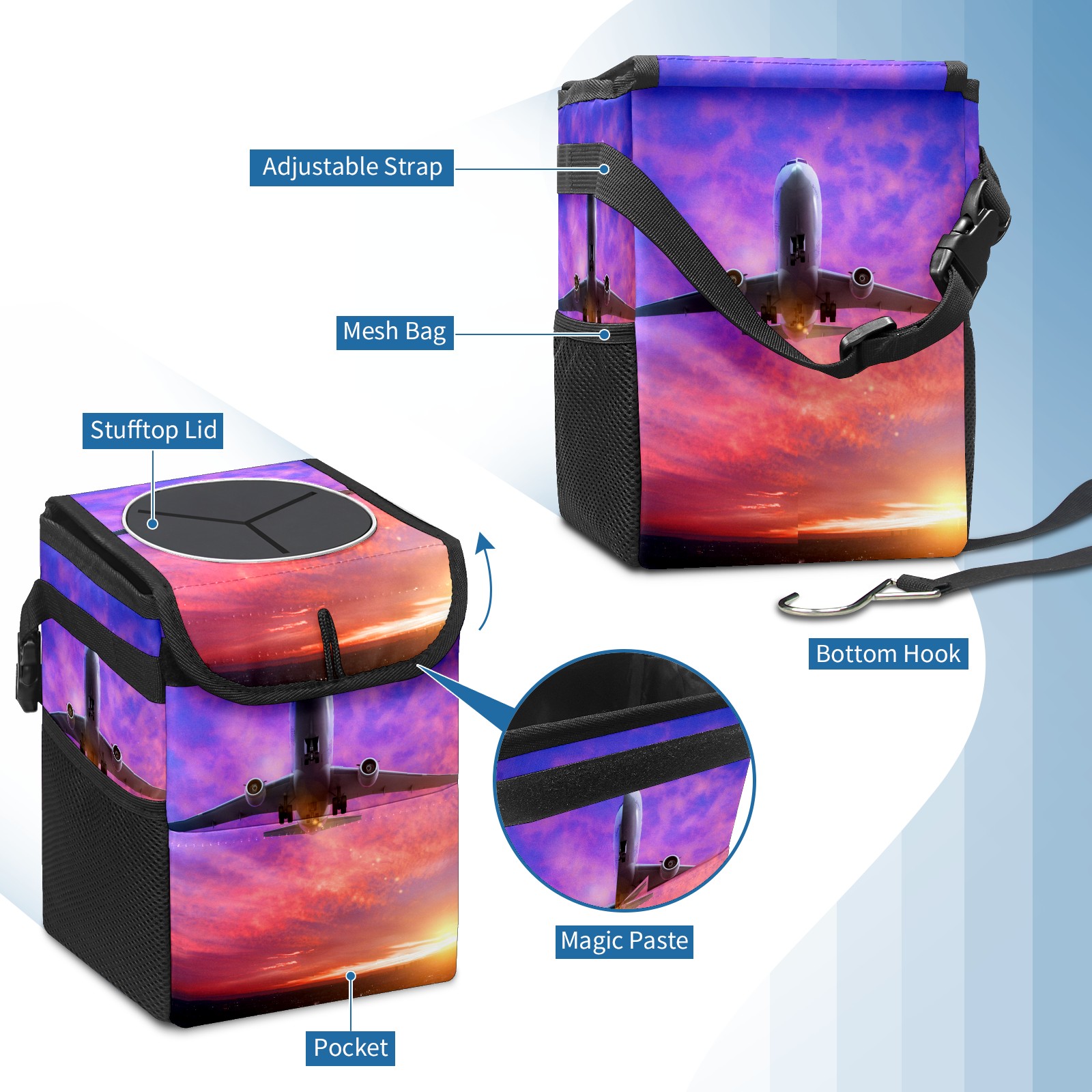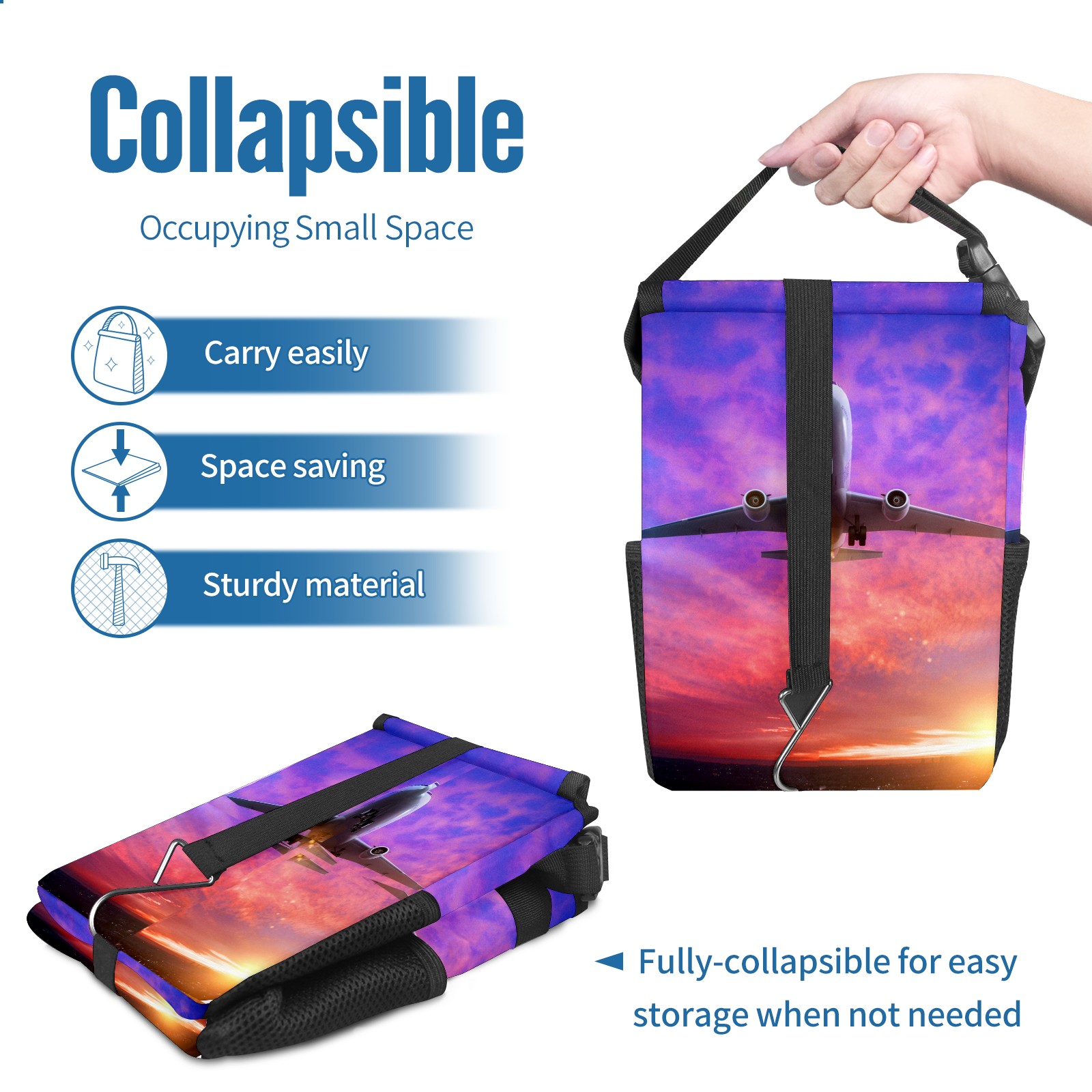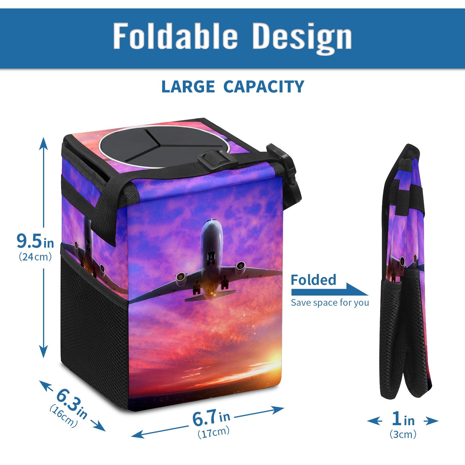 Car Garbage Can — Multi-functional, Lightweight Portable, Reusable Vehicle Trash Can, Waterproof with Sufficient Storage Capacity Airplane Helicopter In Sunset