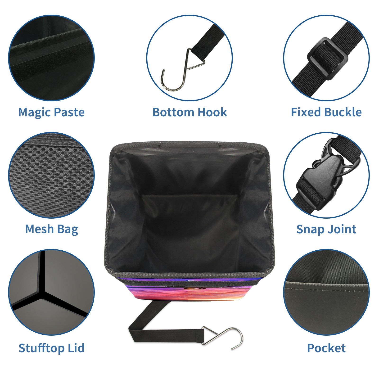 • <p>Keep your car neat with this practical car trash can—built for durability, versatility, and on-the-go convenience! Crafted from quality twill fabric with a waterproof lining, it prevents leaks, keeping seats/floors clean. Clean easily: empty directly or secure a disposable bag with side clips. Adjustable pull cord fits floor, seat, or headrest. 9.5x6.3x6.7 inches, ample space for daily trash, folds flat for storage. More than a trash can, it doubles as a storage bag for cups, toys, docs, and small gadgets—must-have car interior accessory. Installs in seconds on seats, console, or gear shift; adjustable straps keep it stable, no slipping on bumpy roads. Perfect gift for new car owners!</p>