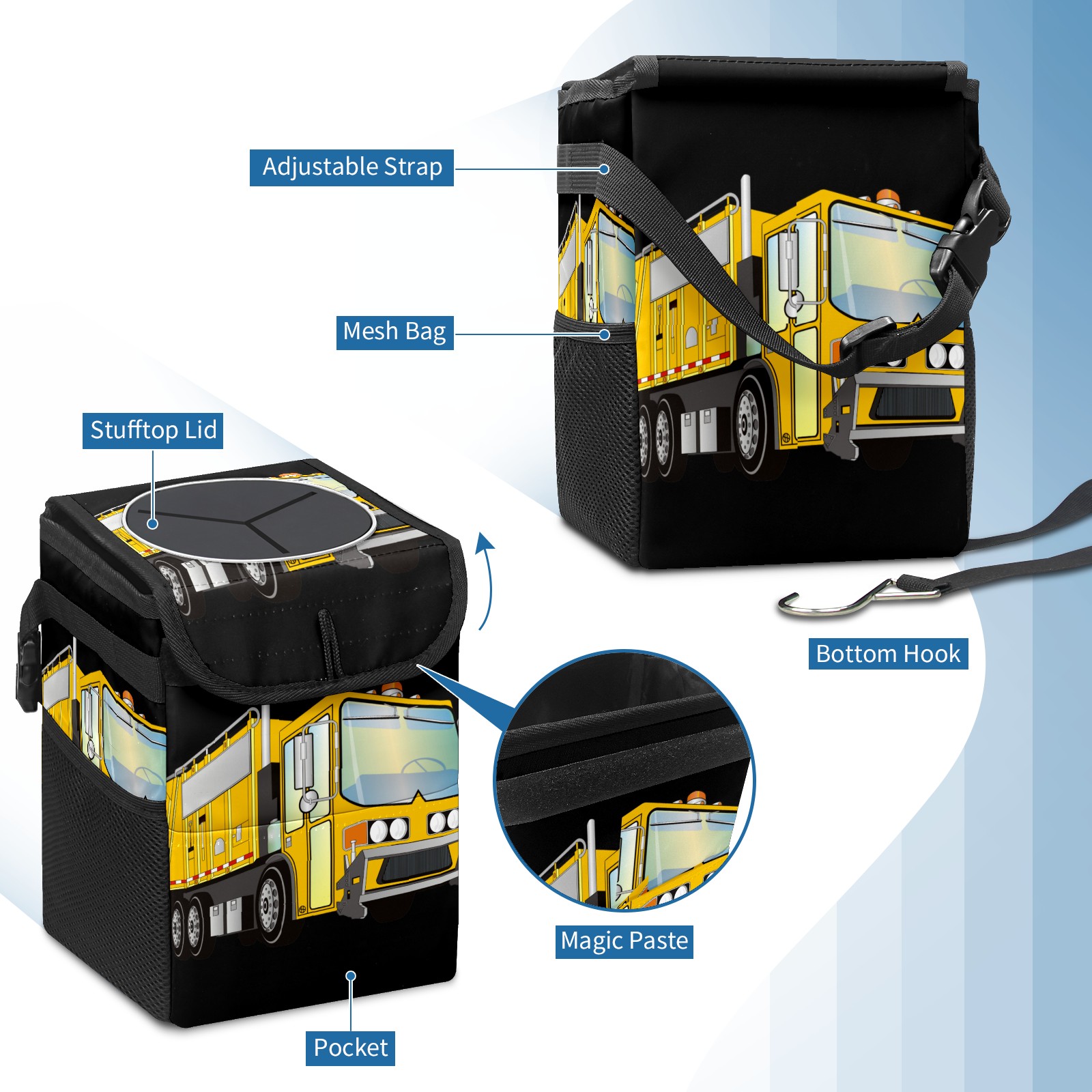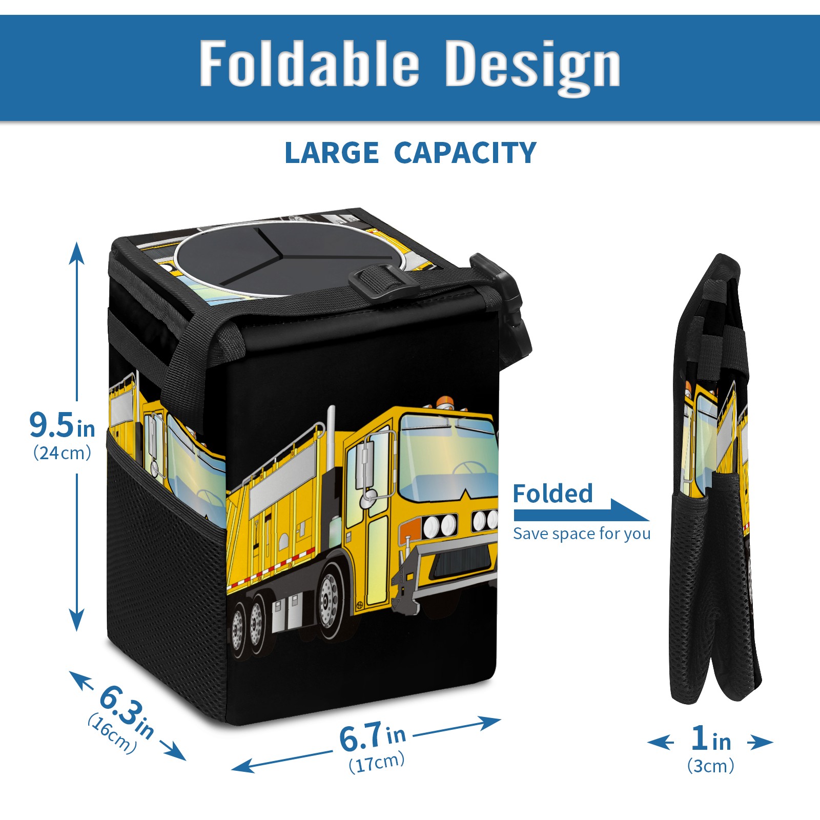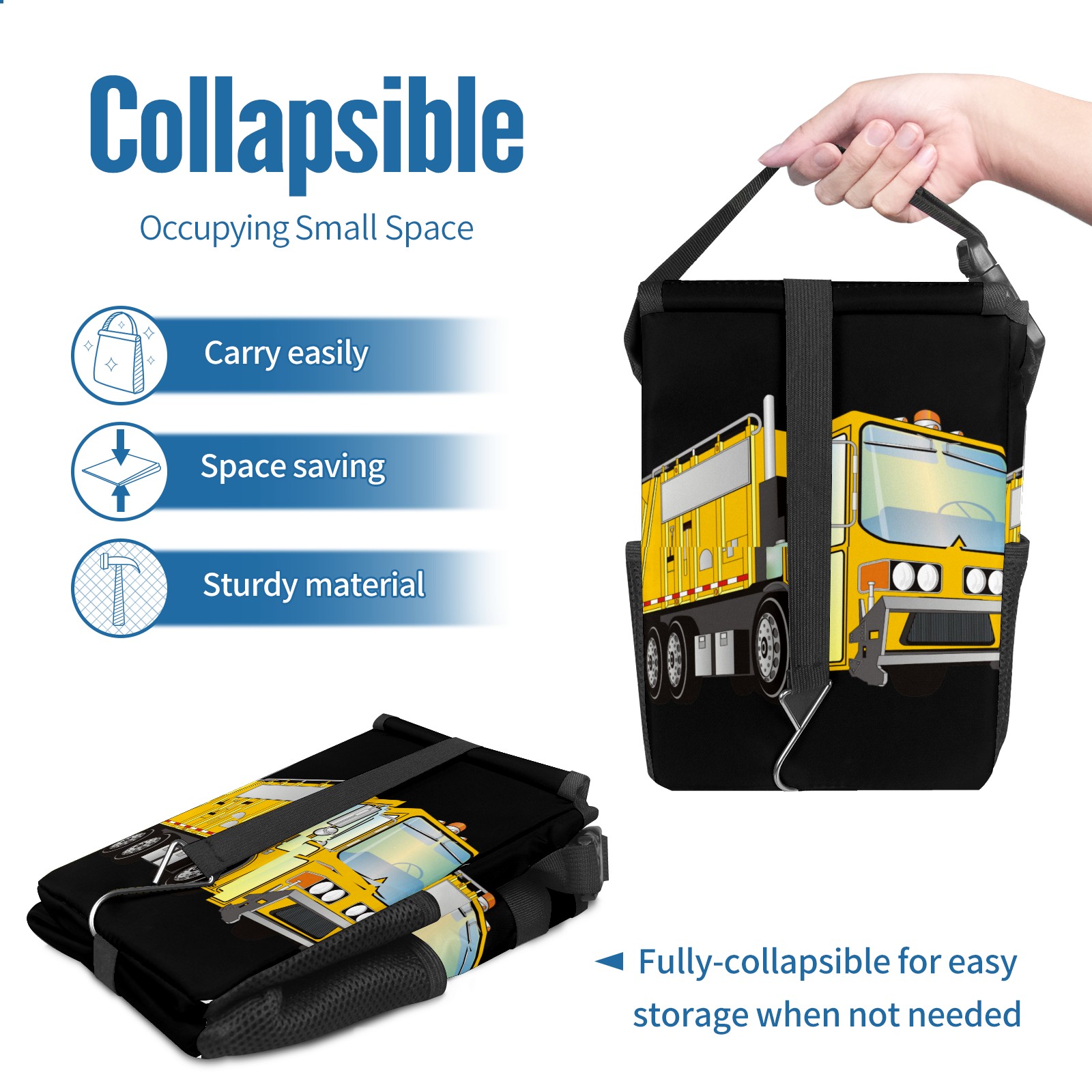 Car Garbage Can — Multi-functional, Lightweight Portable, Reusable Vehicle Trash Can, Waterproof with Sufficient Storage Capacity 3d Garbage Truck Yellow
