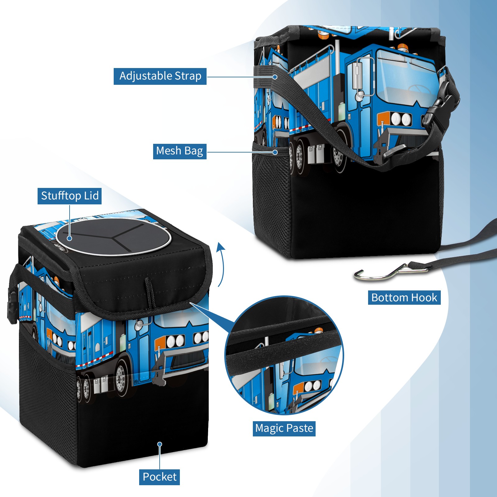 Car Garbage Can — Multi-functional, Lightweight Portable, Reusable Vehicle Trash Can, Waterproof with Sufficient Storage Capacity 3d Blue Garbage Truck