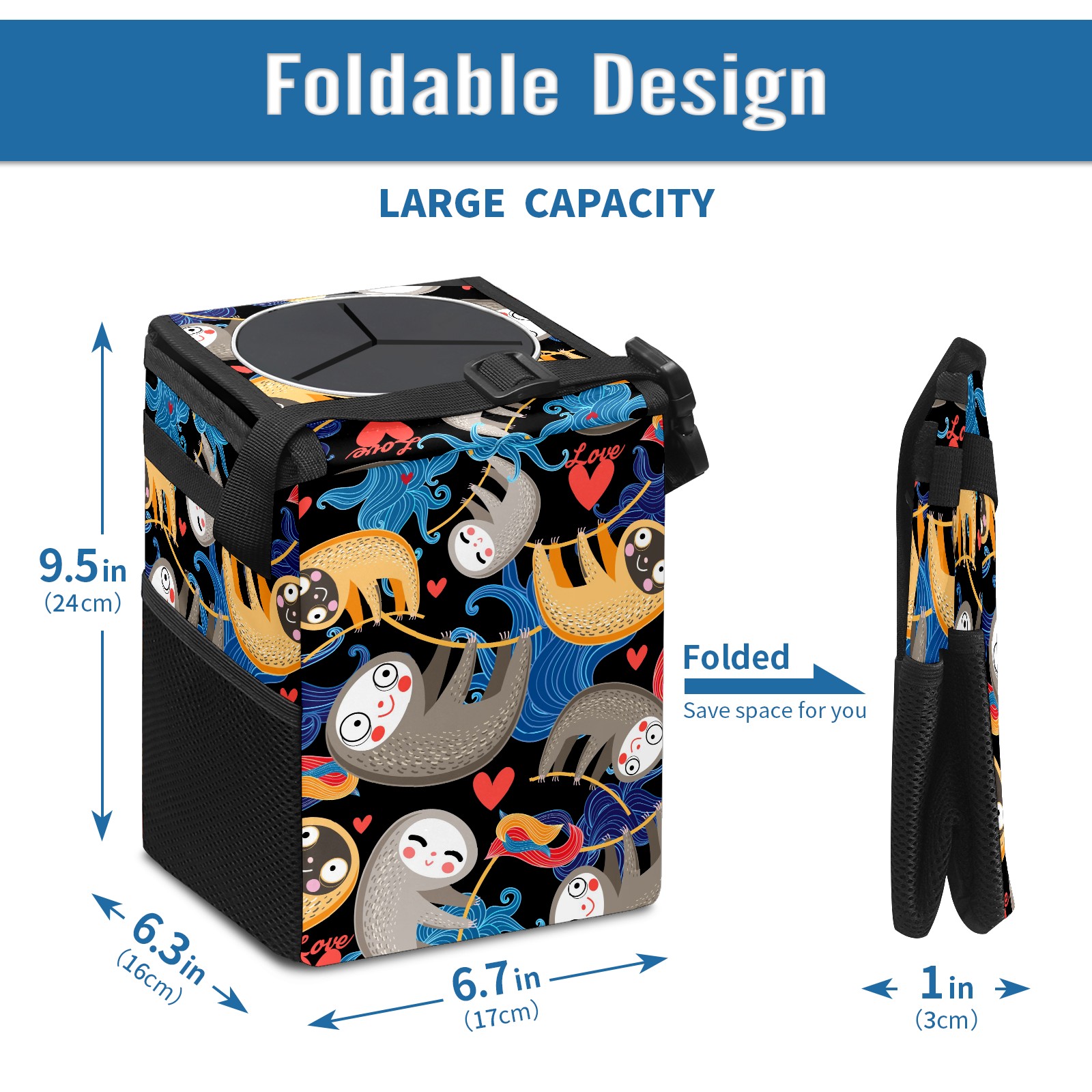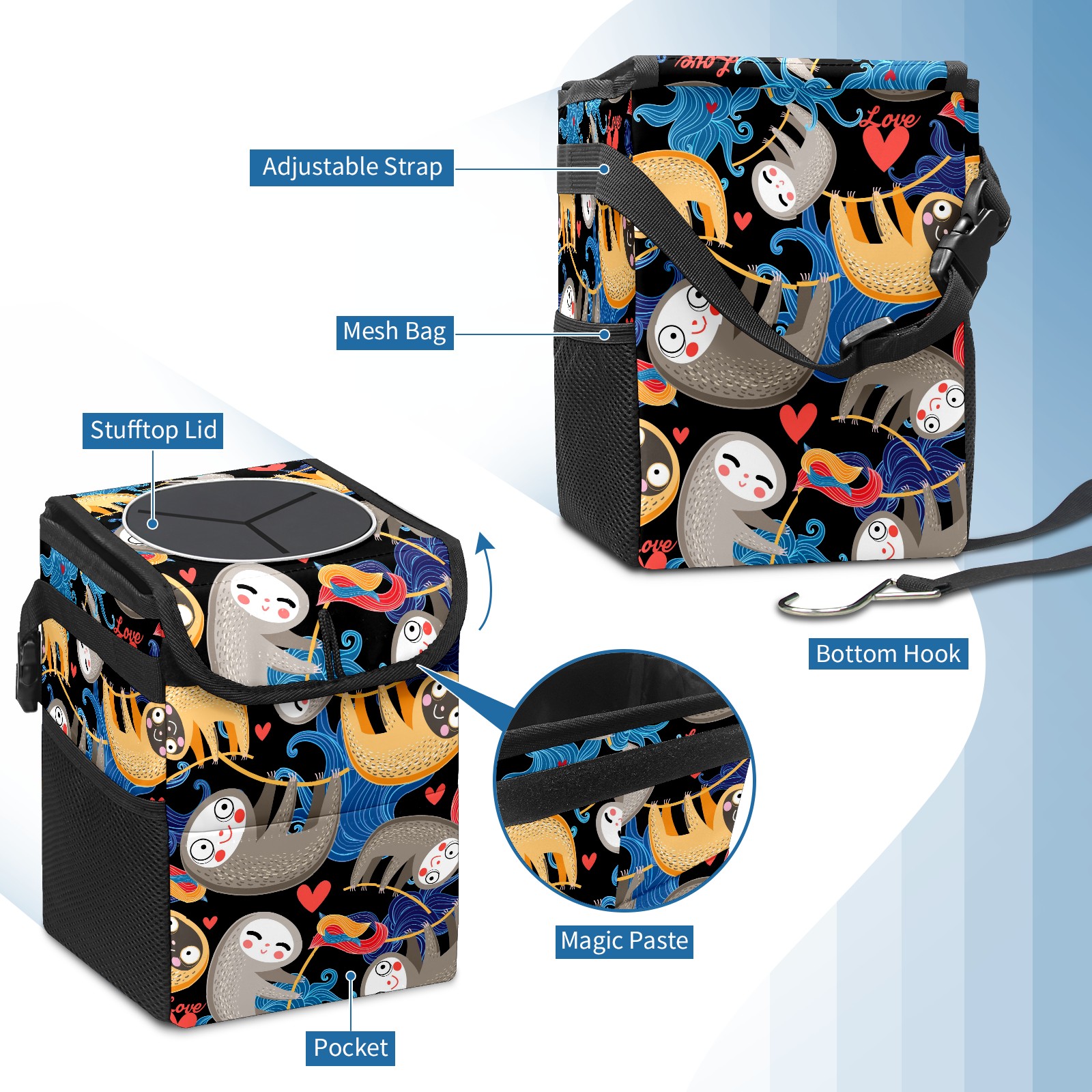 Car Garbage Can — Multi-functional, Lightweight Portable, Reusable Vehicle Trash Can, Waterproof with Sufficient Storage Capacity Cute Sloth Cartoon Animal