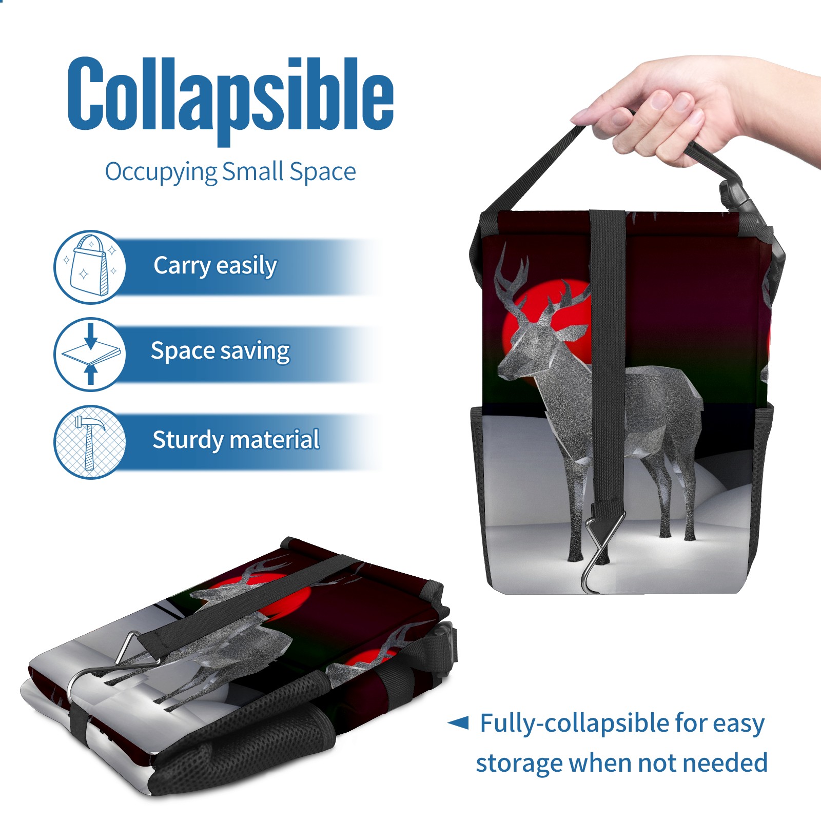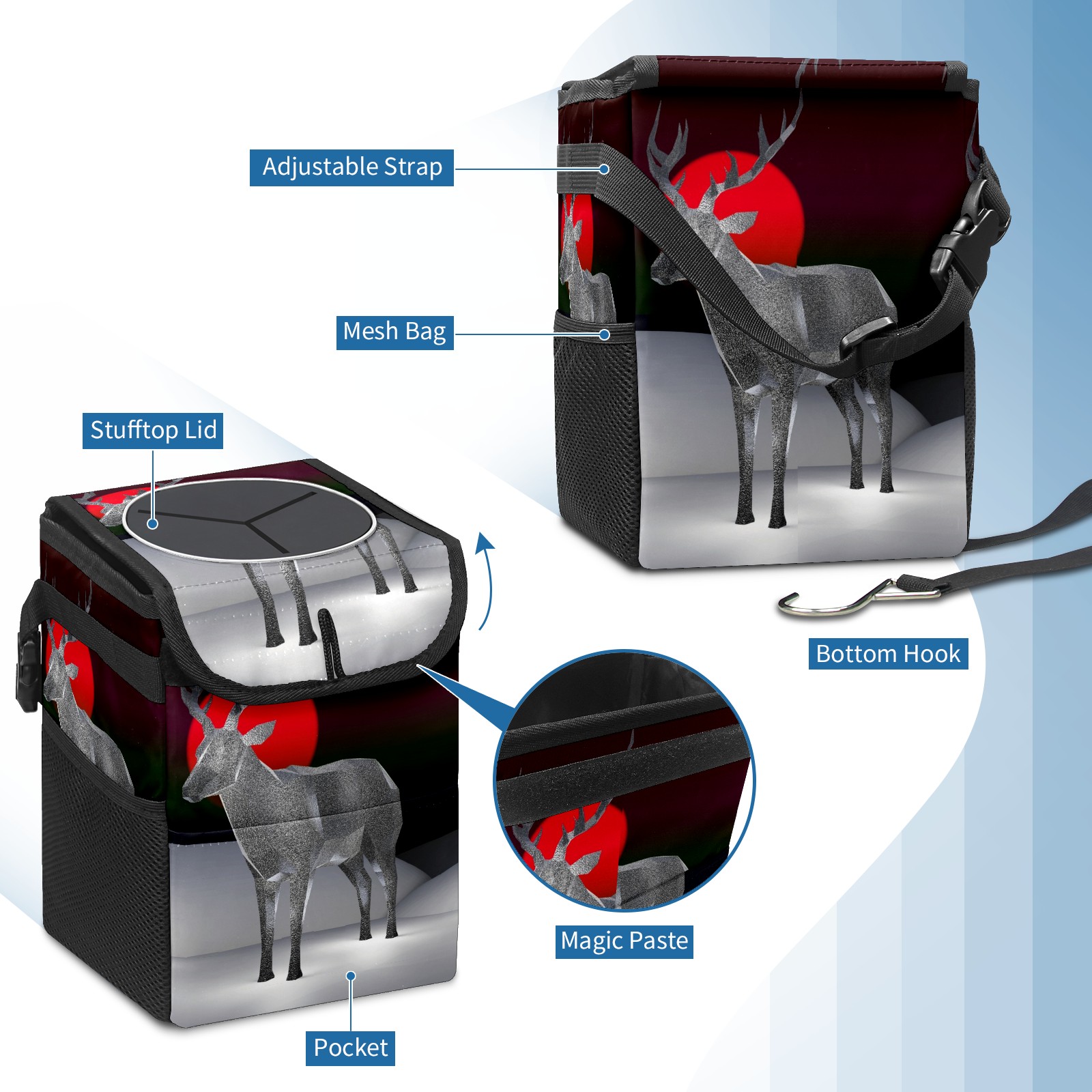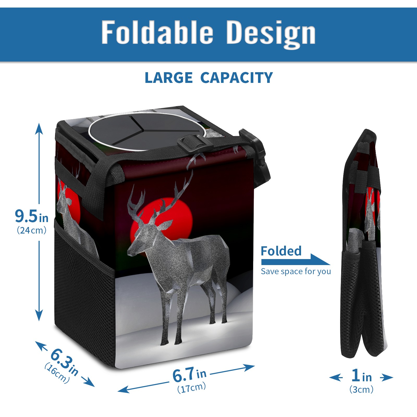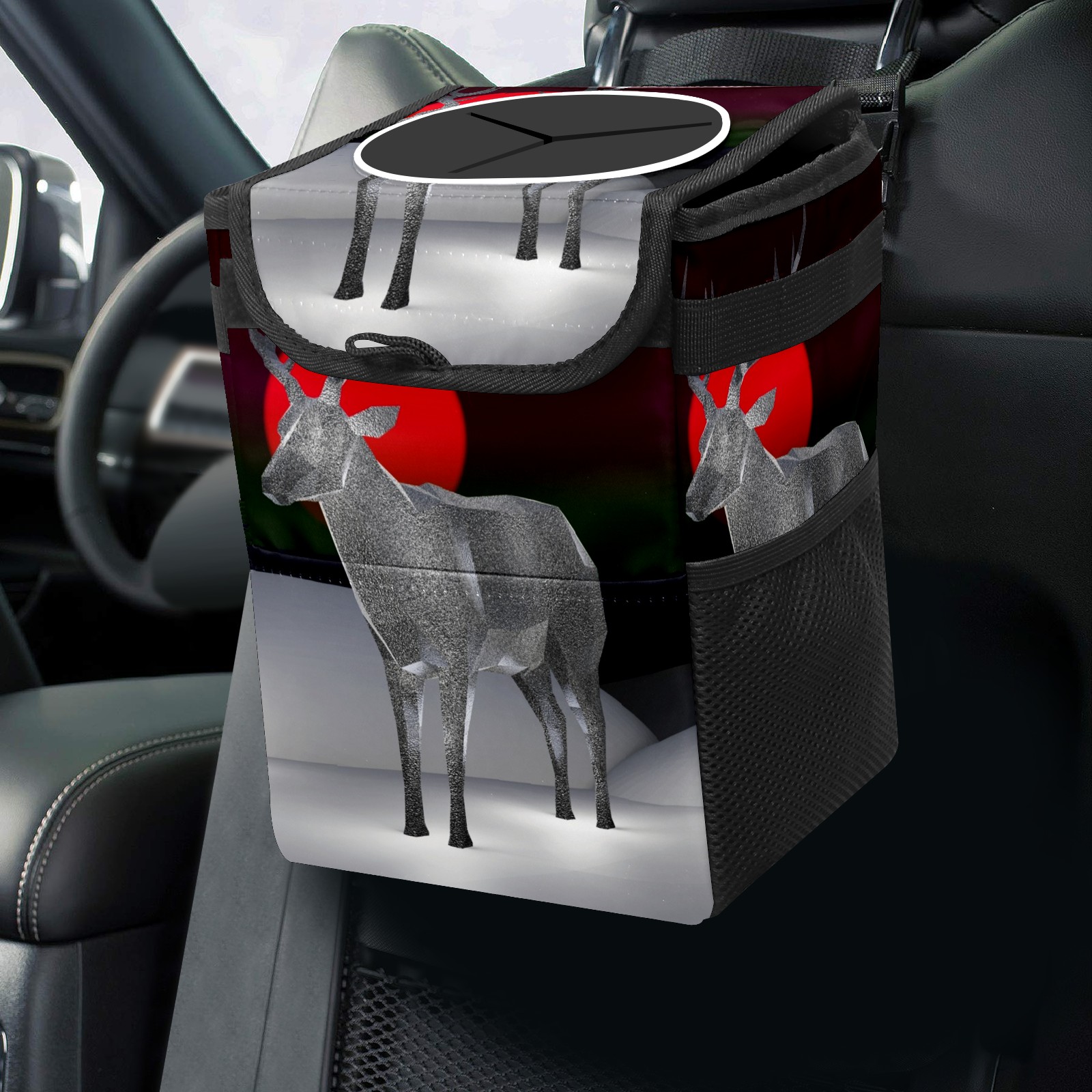 Car Garbage Can — Multi-functional, Lightweight Portable, Reusable Vehicle Trash Can, Waterproof with Sufficient Storage Capacity 3D Reindeer Antler Deer