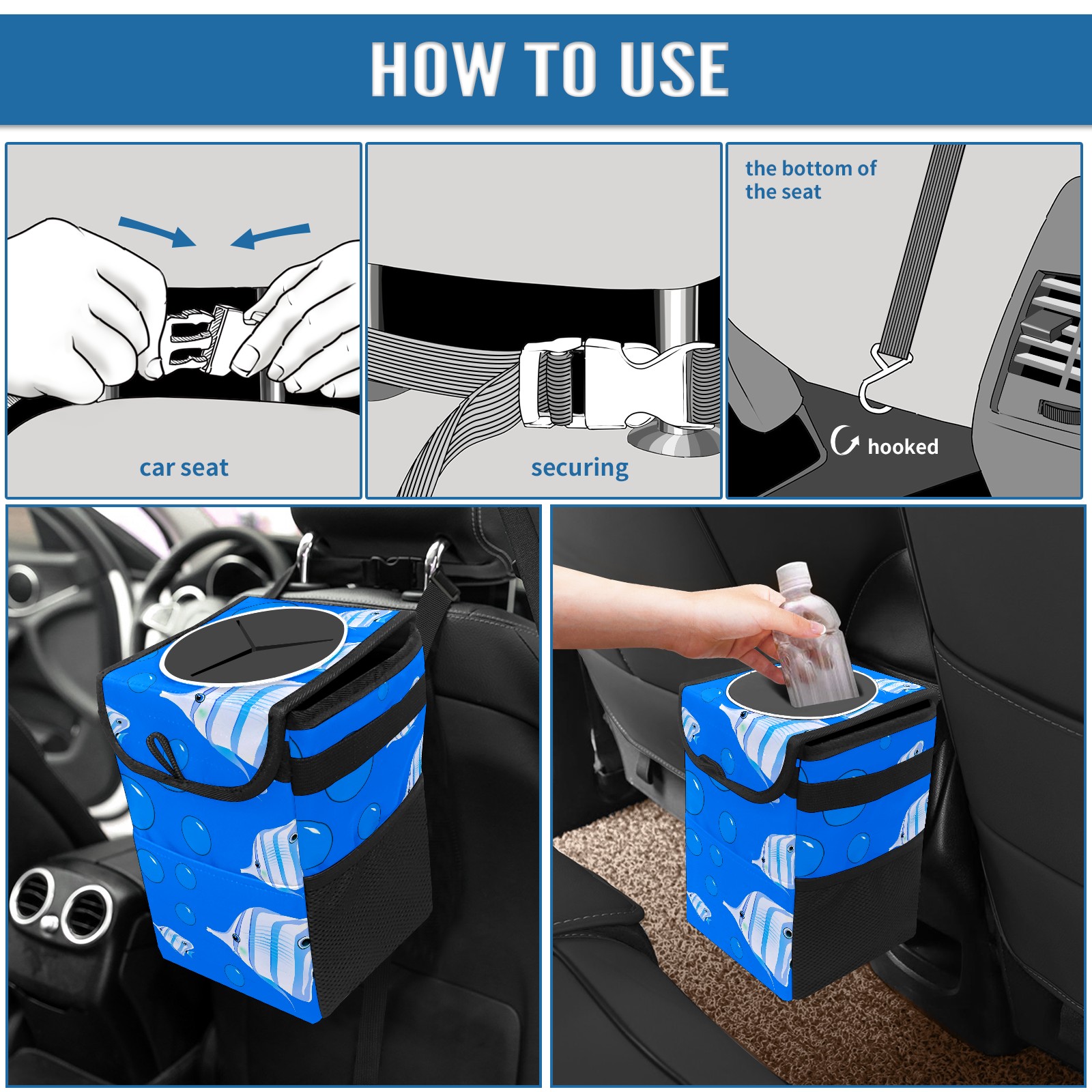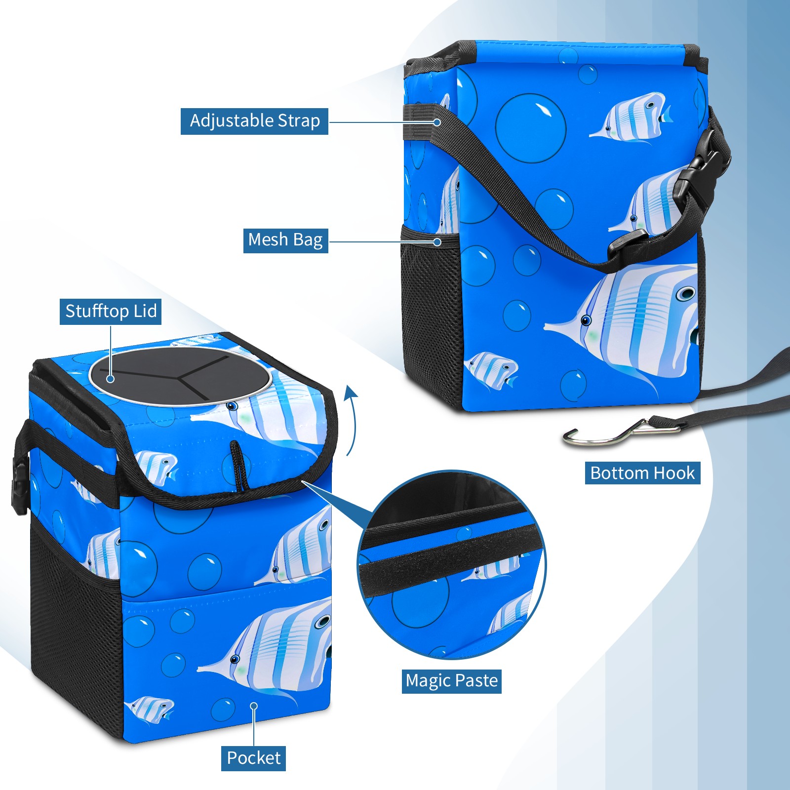 Car Garbage Can — Multi-functional, Lightweight Portable, Reusable Vehicle Trash Can, Waterproof with Sufficient Storage Capacity Fish Bubble