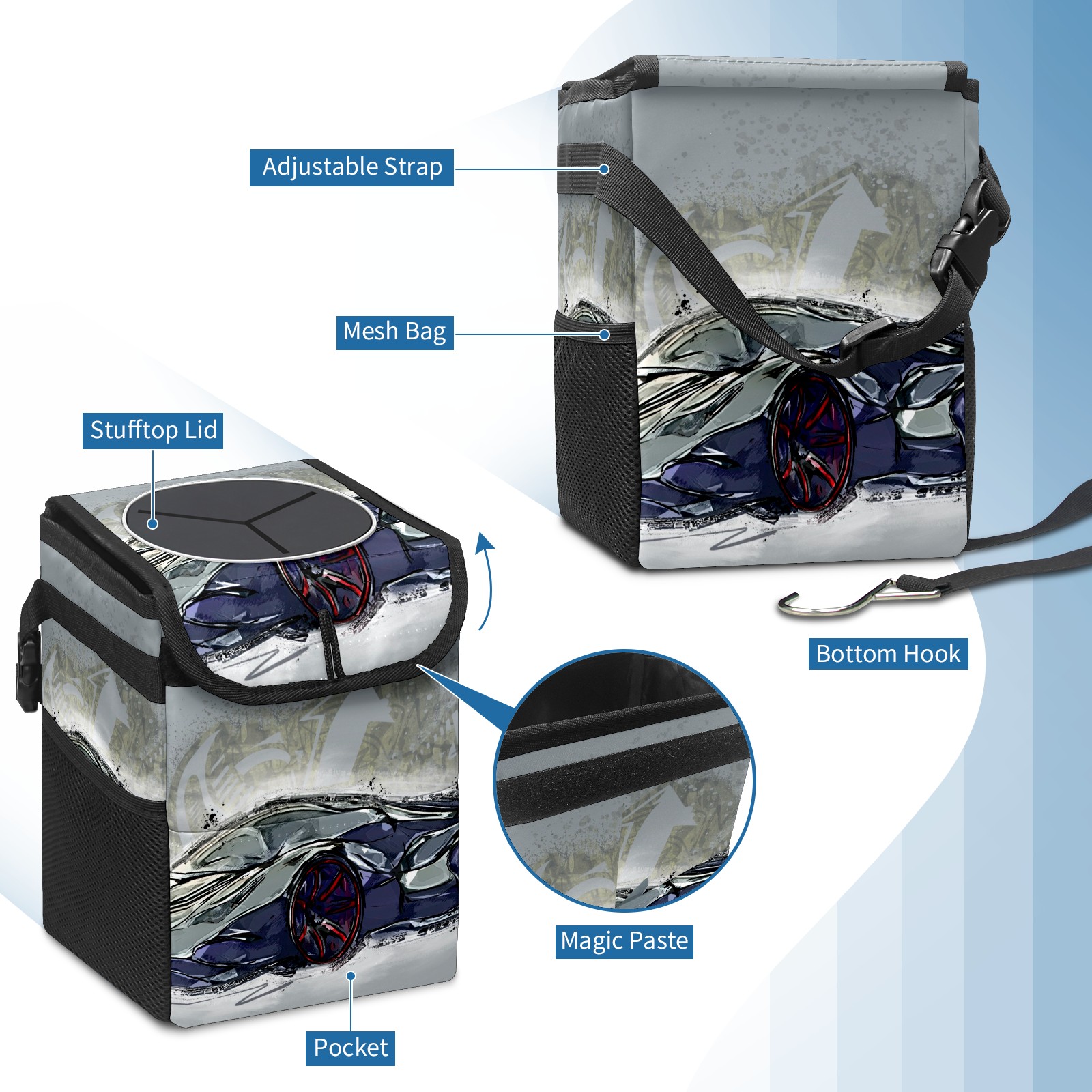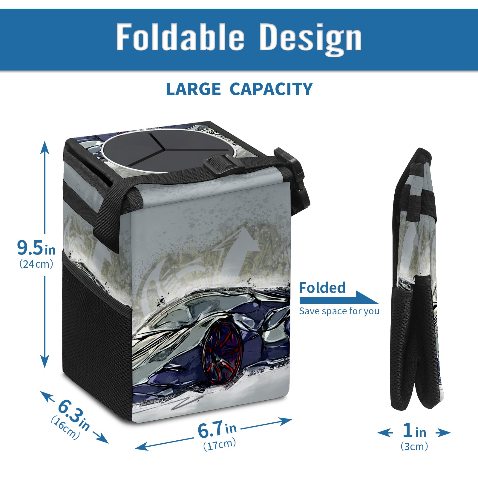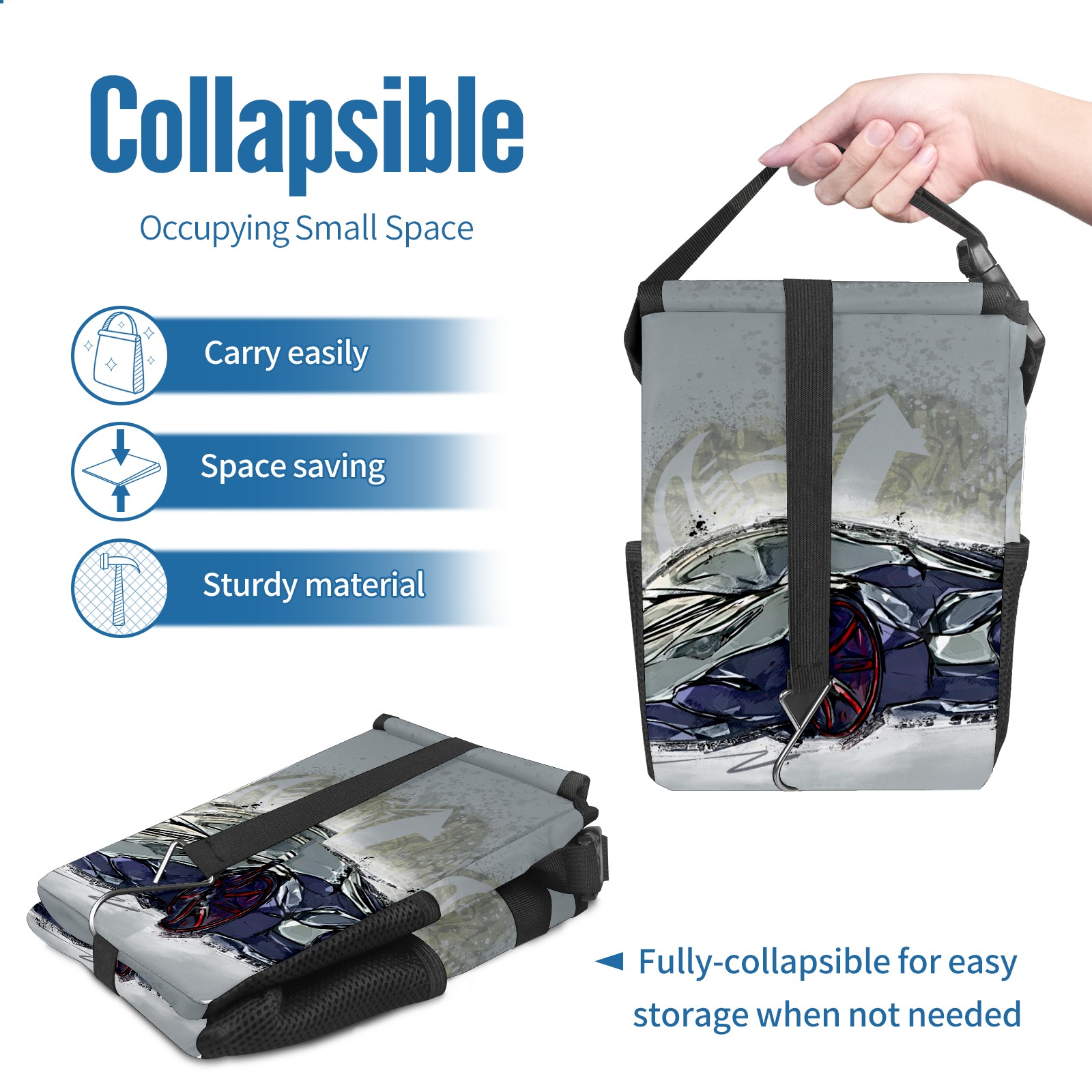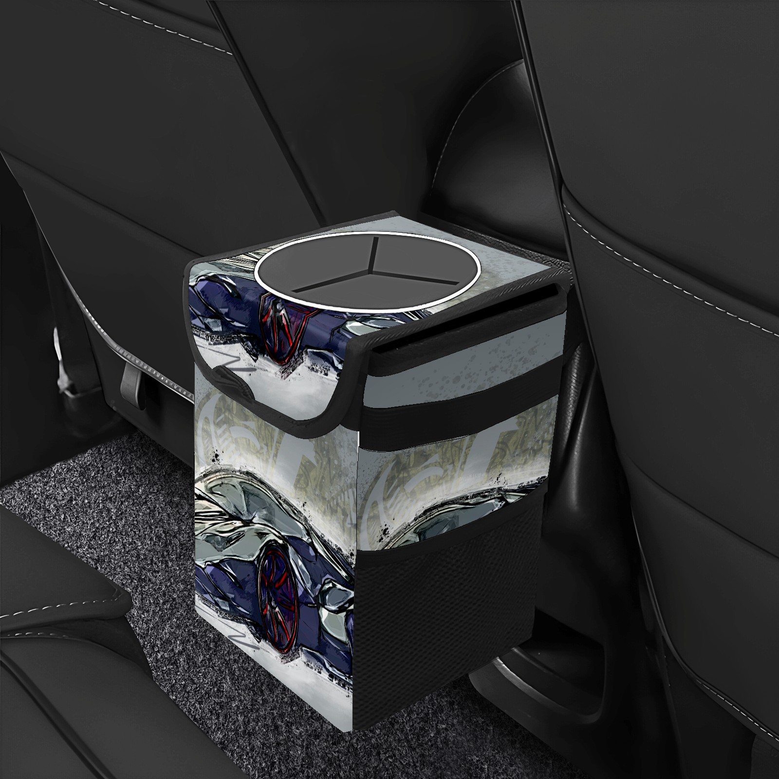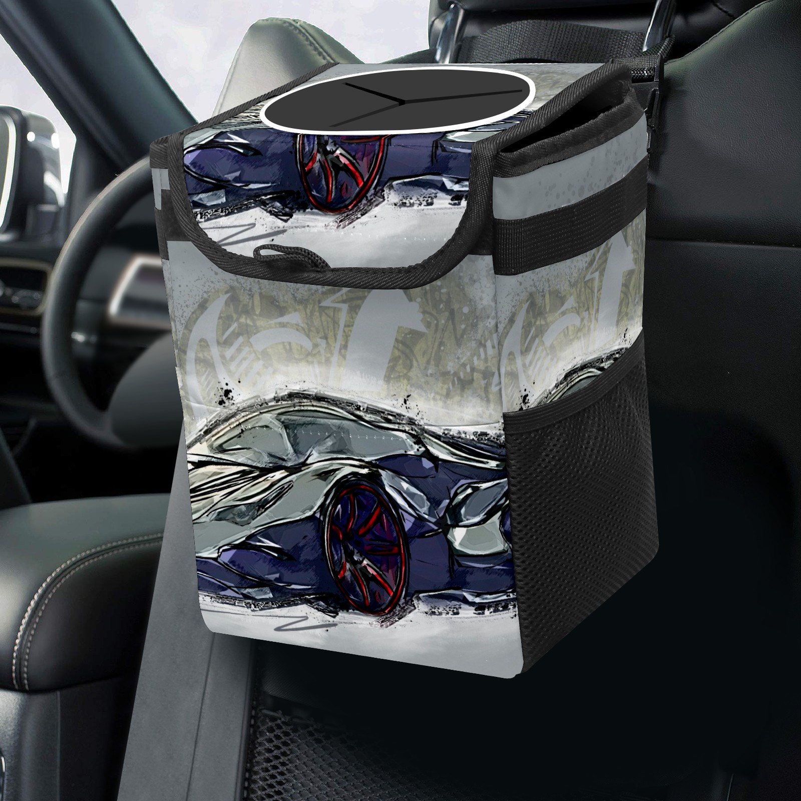Car Garbage Can — Multi-functional, Lightweight Portable, Reusable Vehicle Trash Can, Waterproof with Sufficient Storage Capacity Hand-painted Car