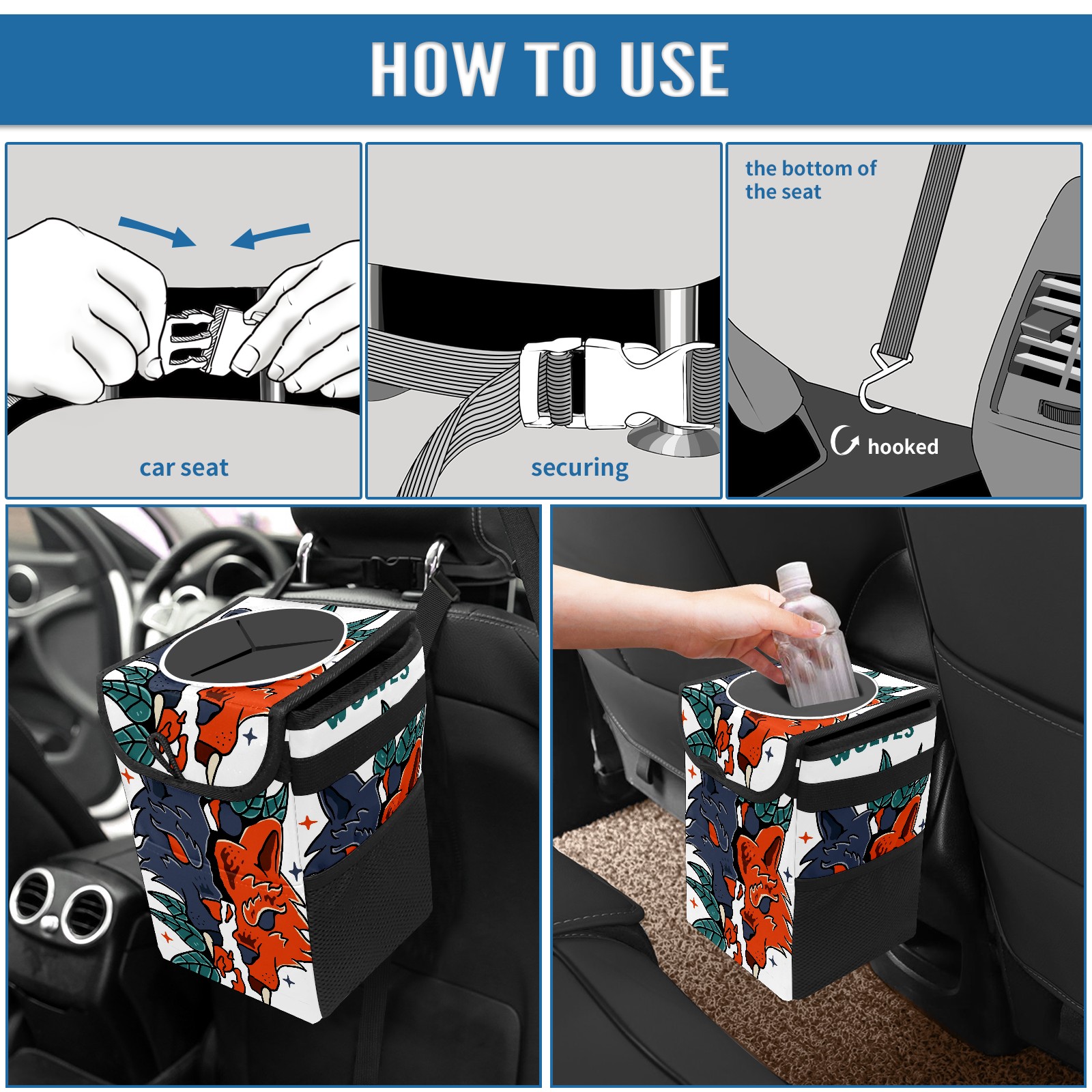 Car Garbage Can — Multi-functional, Lightweight Portable, Reusable Vehicle Trash Can, Waterproof with Sufficient Storage Capacity Wolf