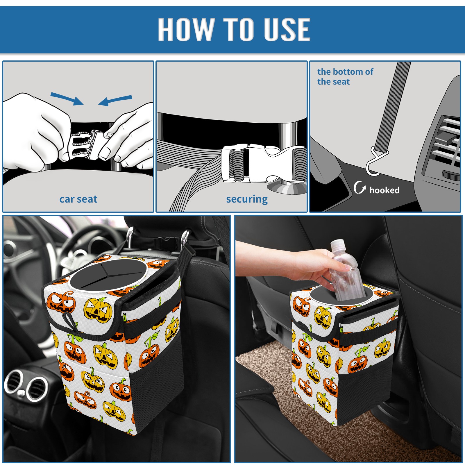 Car Garbage Can — Multi-functional, Lightweight Portable, Reusable Vehicle Trash Can, Waterproof with Sufficient Storage Capacity Colorful Pumpkin