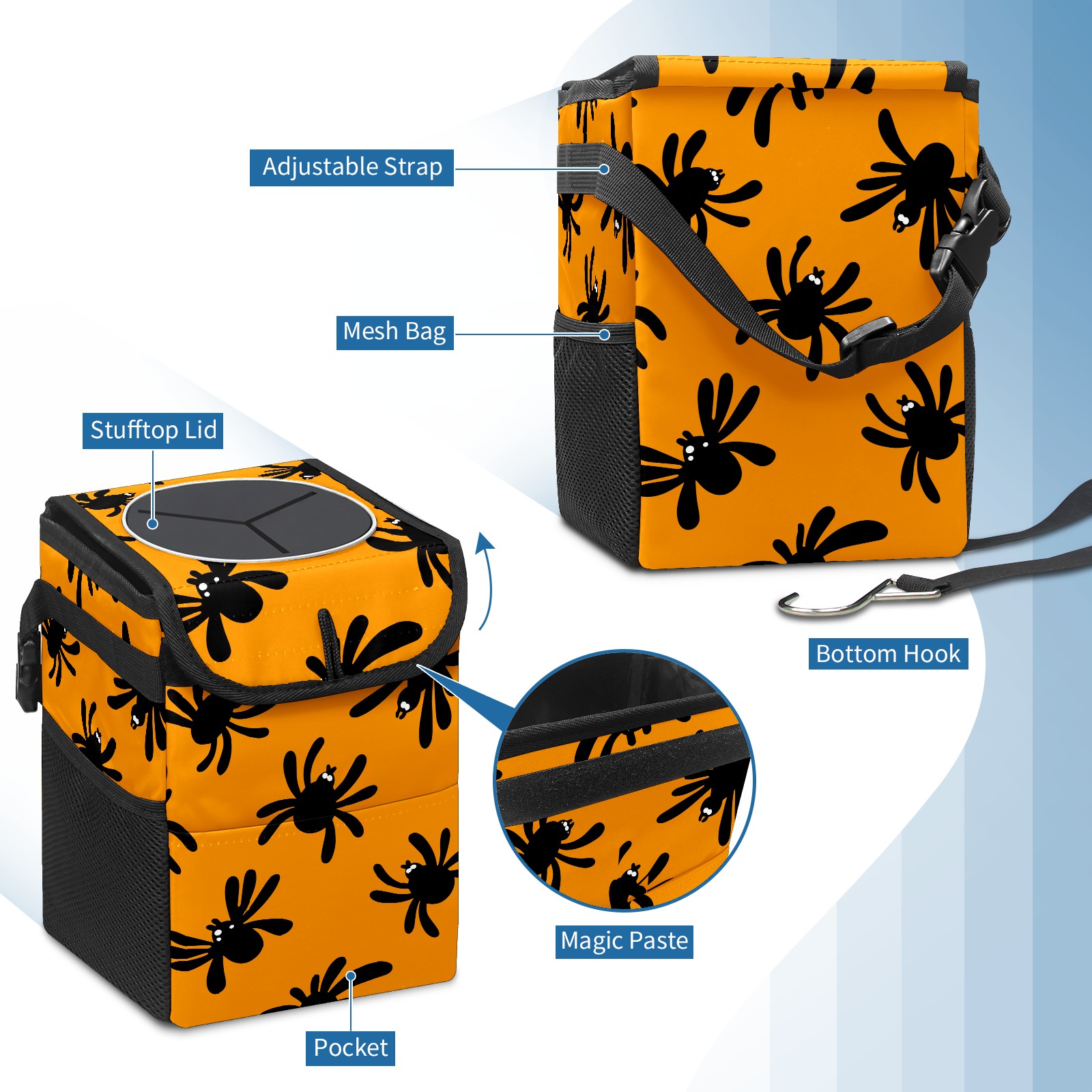Car Garbage Can — Multi-functional, Lightweight Portable, Reusable Vehicle Trash Can, Waterproof with Sufficient Storage Capacity Black Spider