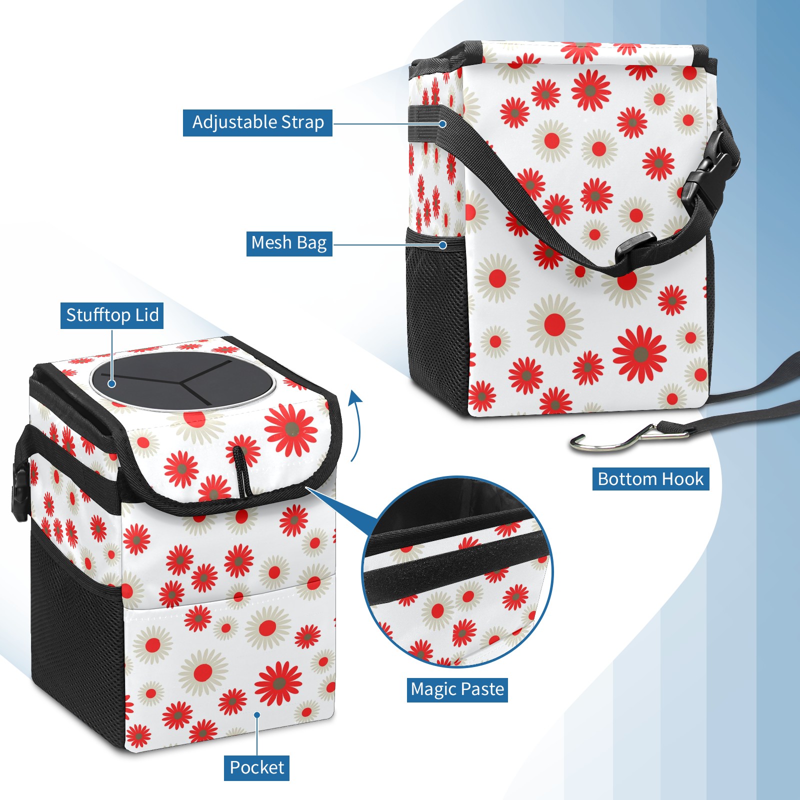 Car Garbage Can — Multi-functional, Lightweight Portable, Reusable Vehicle Trash Can, Waterproof with Sufficient Storage Capacity Flowers