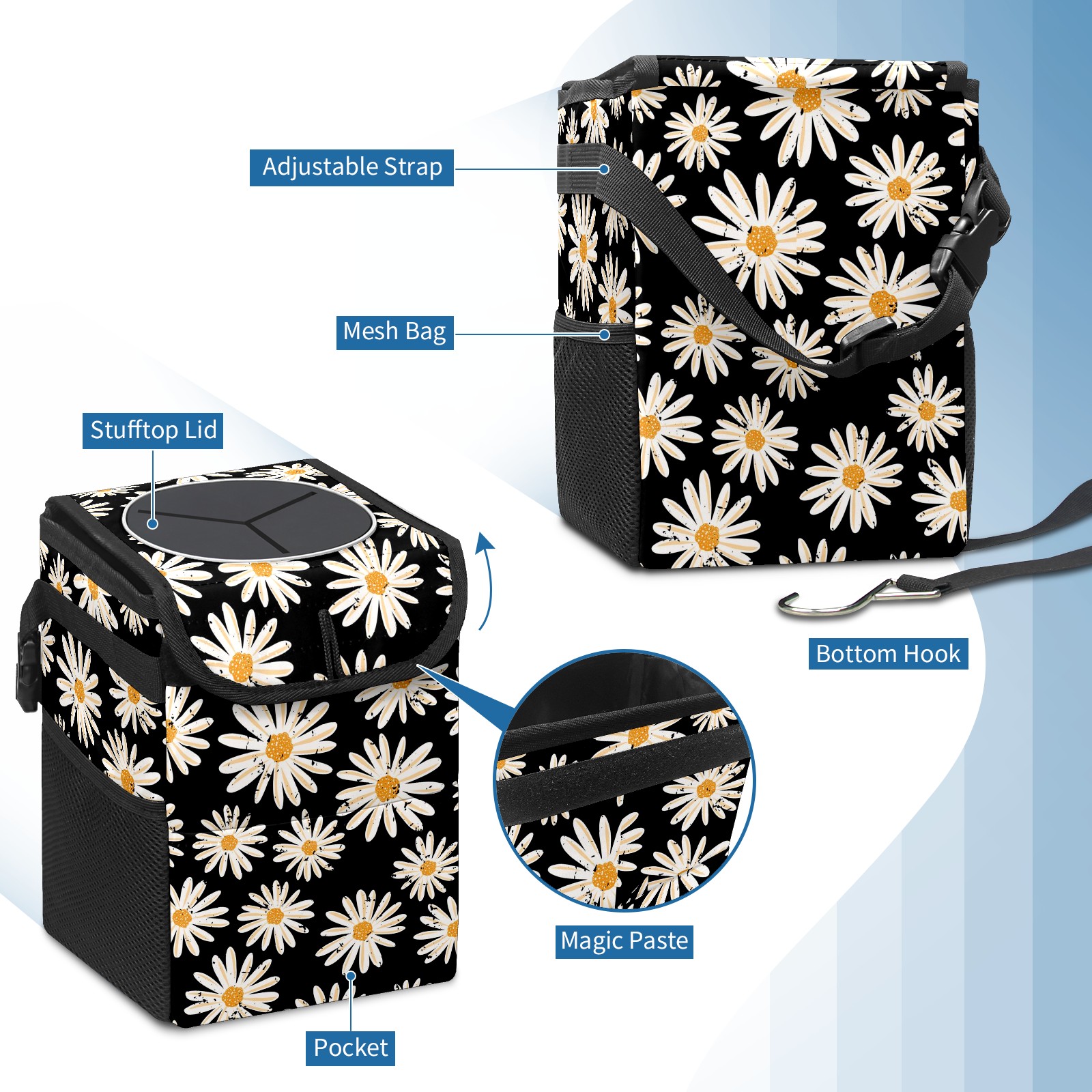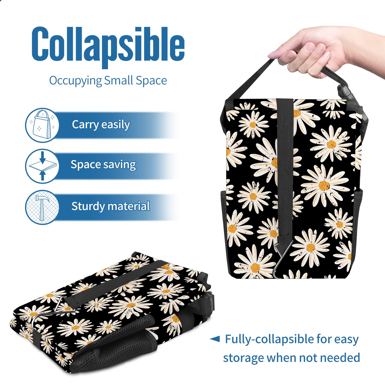 Car Garbage Can — Multi-functional, Lightweight Portable, Reusable Vehicle Trash Can, Waterproof with Sufficient Storage Capacity Flowers