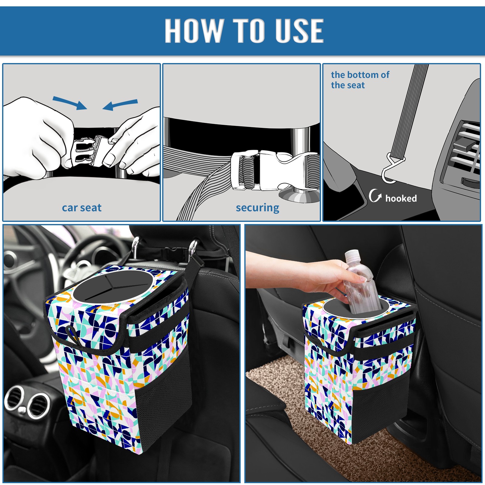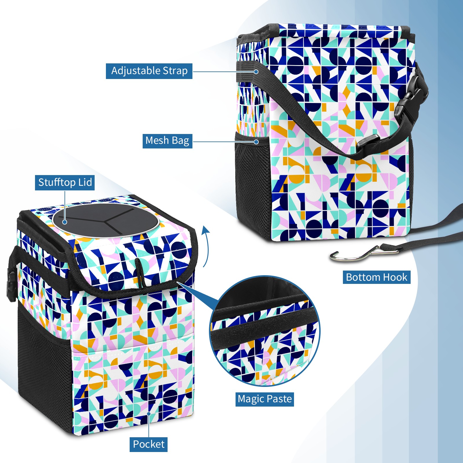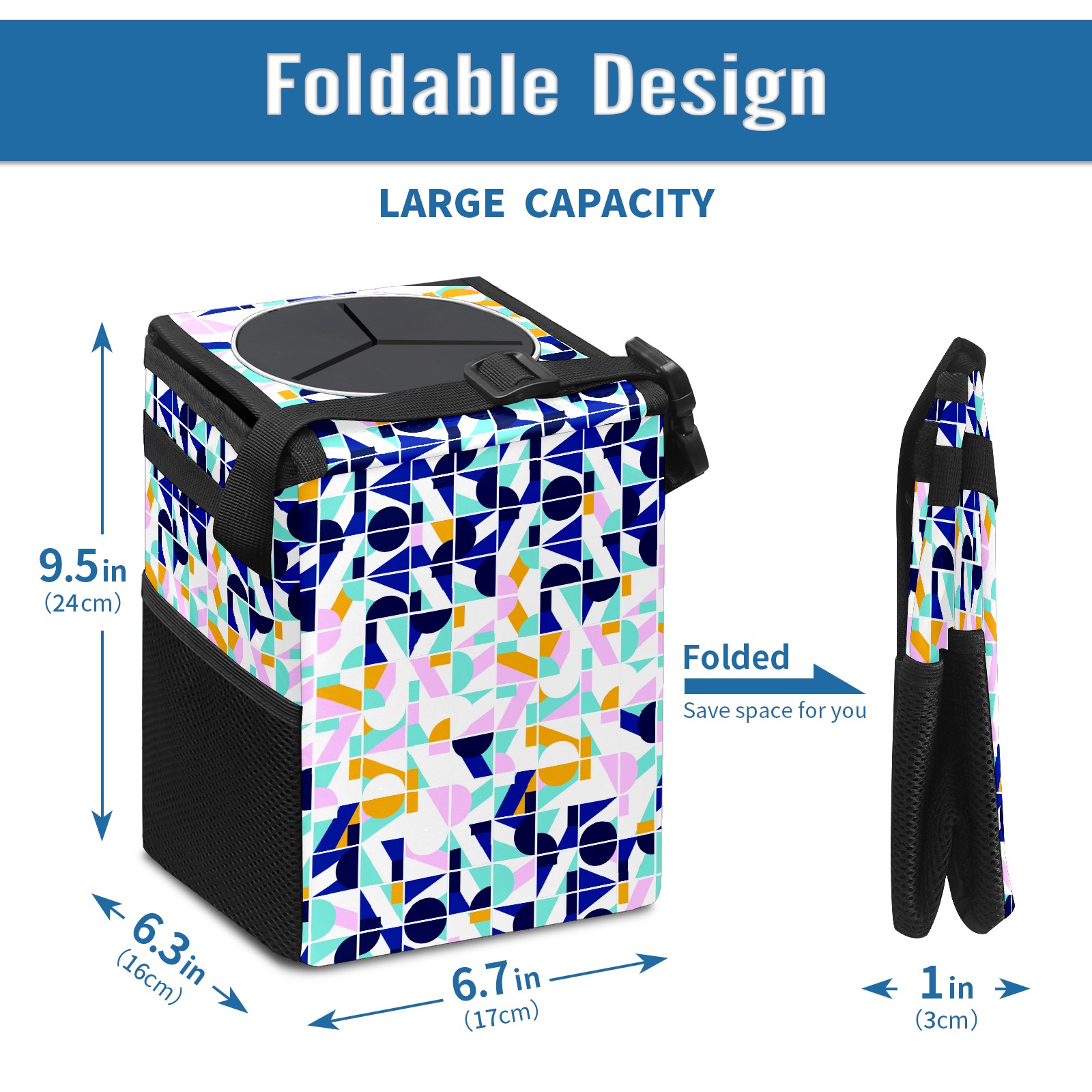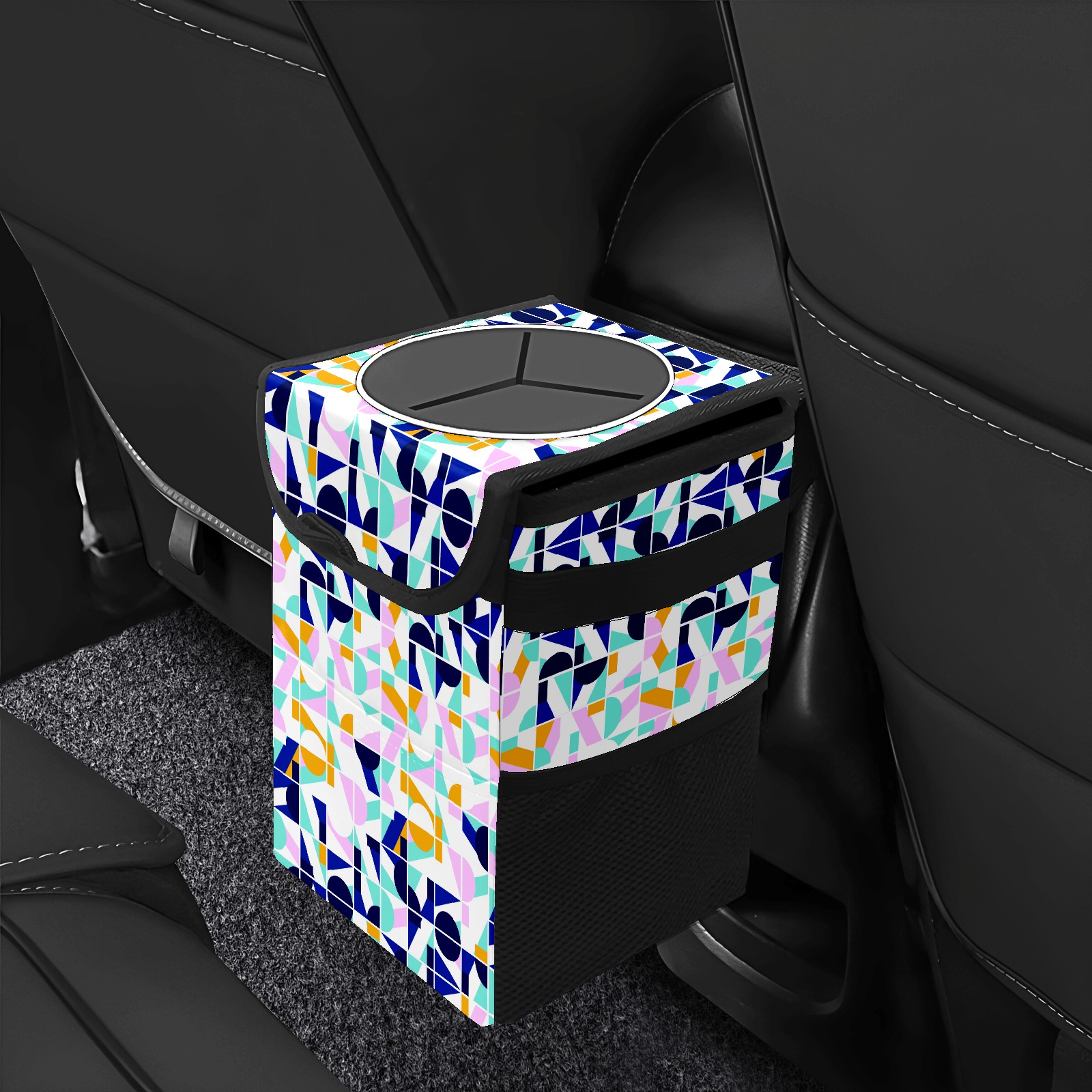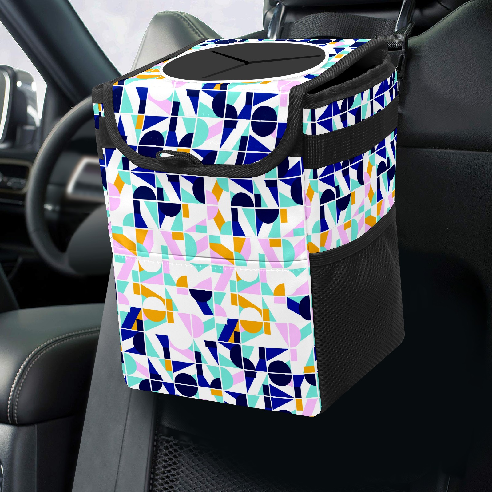 Car Garbage Can — Multi-functional, Lightweight Portable, Reusable Vehicle Trash Can, Waterproof with Sufficient Storage Capacity Modern Geometric Pattern