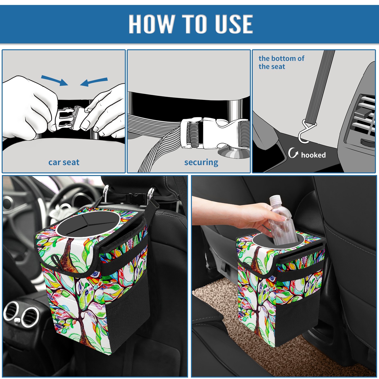 • <p>Keep your car neat with this practical car trash can—built for durability, versatility, and on-the-go convenience! Crafted from quality twill fabric with a waterproof lining, it prevents leaks, keeping seats/floors clean. Clean easily: empty directly or secure a disposable bag with side clips. Adjustable pull cord fits floor, seat, or headrest. 9.5x6.3x6.7 inches, ample space for daily trash, folds flat for storage. More than a trash can, it doubles as a storage bag for cups, toys, docs, and small gadgets—must-have car interior accessory. Installs in seconds on seats, console, or gear shift; adjustable straps keep it stable, no slipping on bumpy roads. Perfect gift for new car owners!</p>