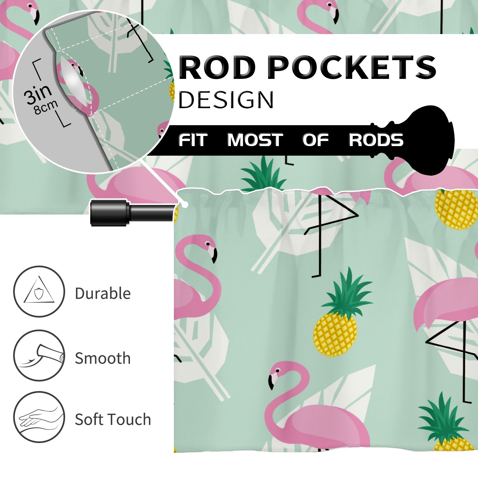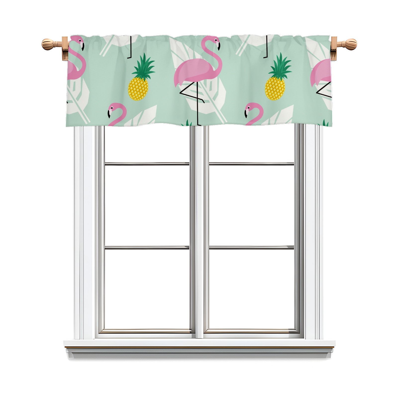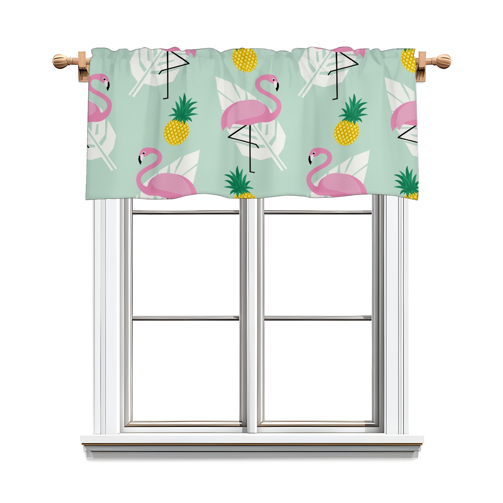 Blackout Curtain Valance for Living Room/Bathroom/Kitchen Valance Rod Pocket Curtain 14 x 52 Inches Summer Flamingo Pineapple Pattern
