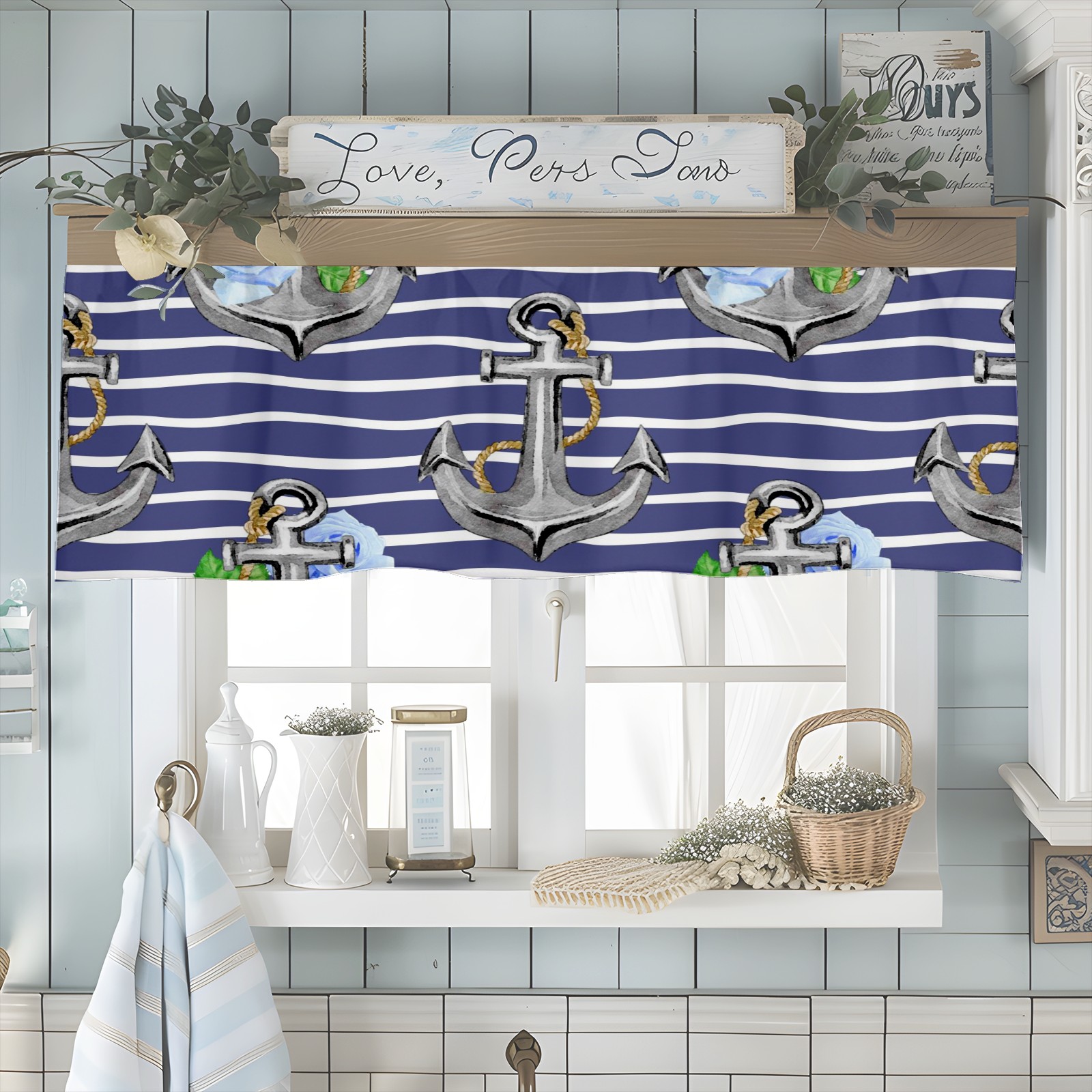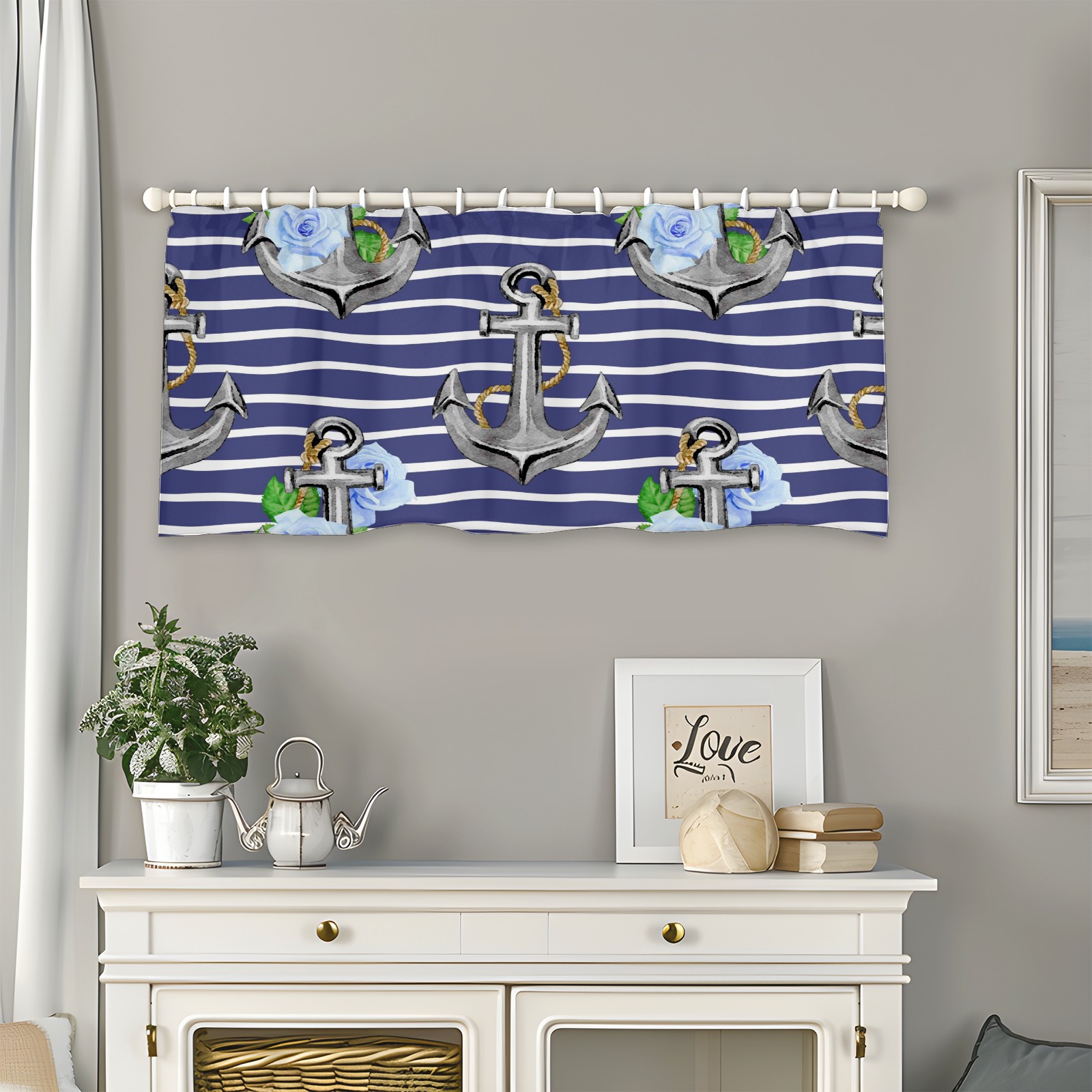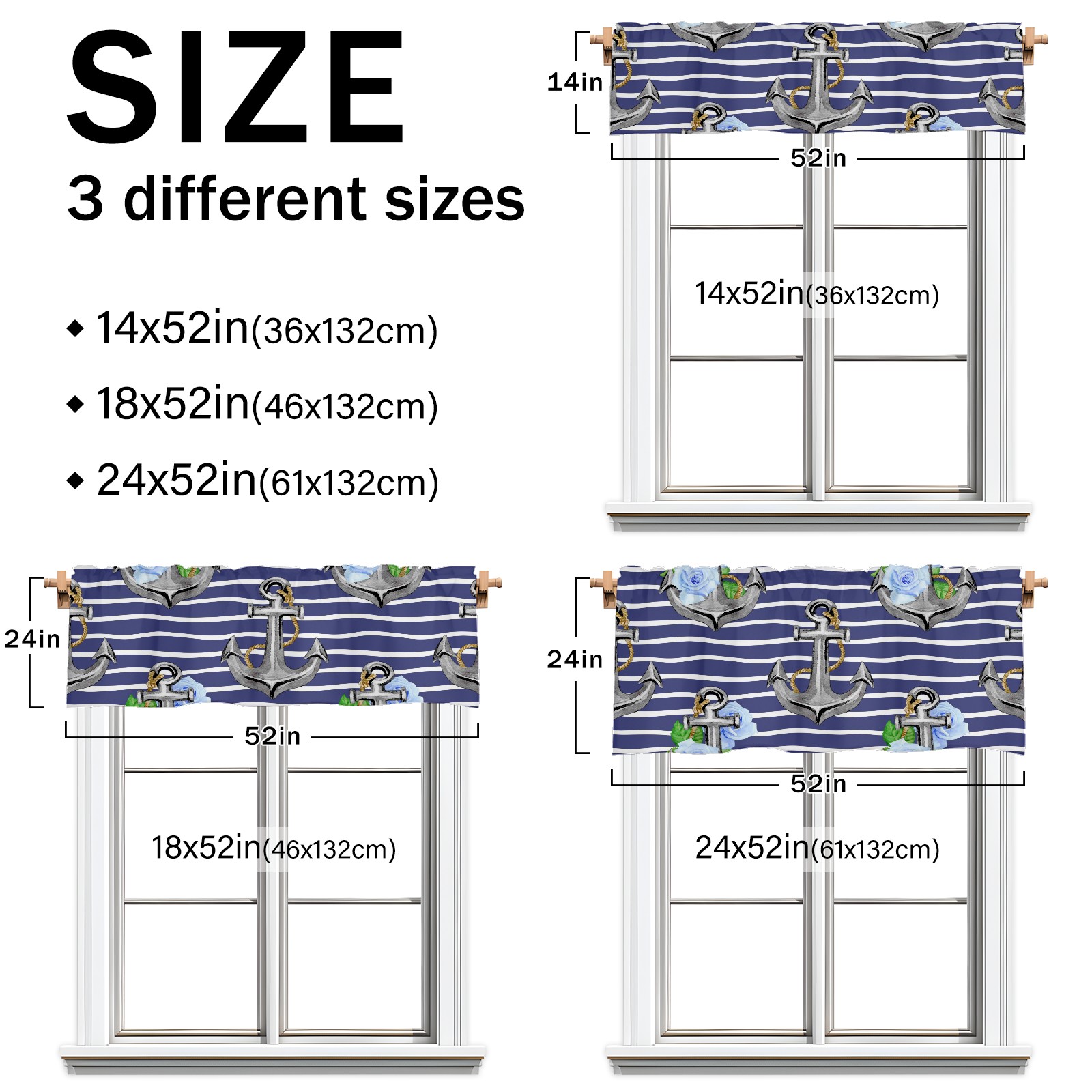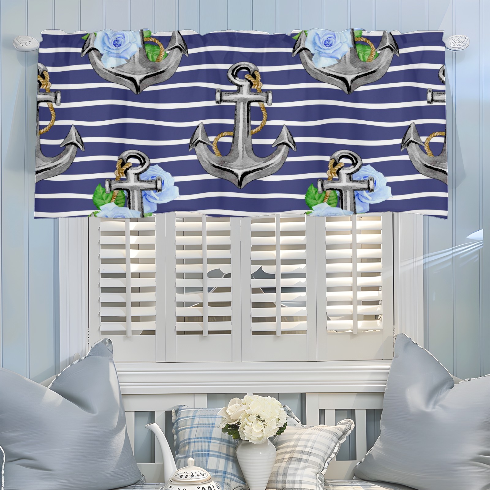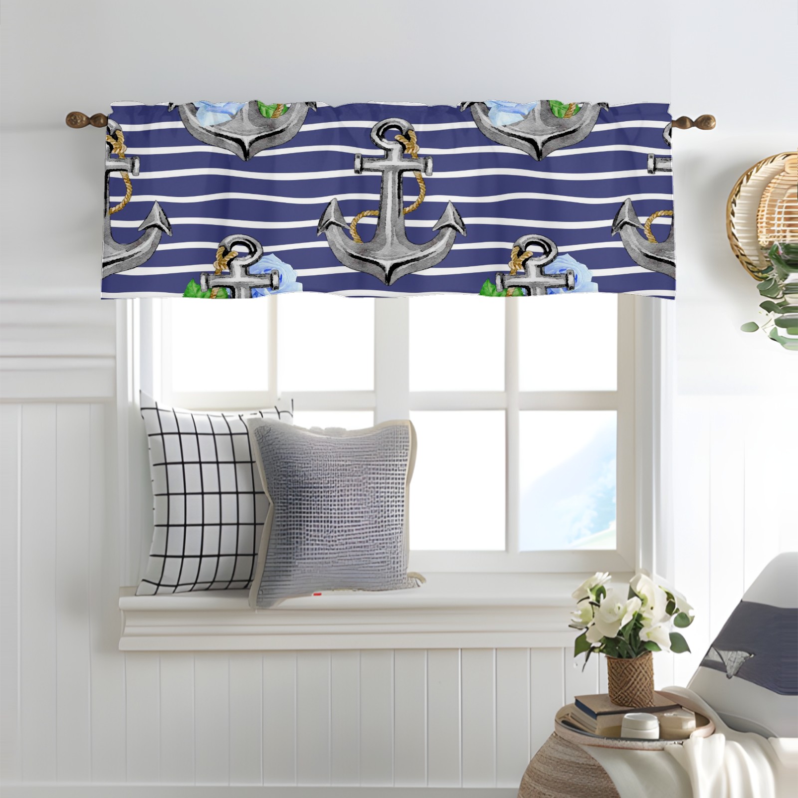 Blackout Curtain Valance for Living Room/Bathroom/Kitchen Valance Rod Pocket Curtain 14 x 52 Inches Stripe Nautical Anchor Floral Print