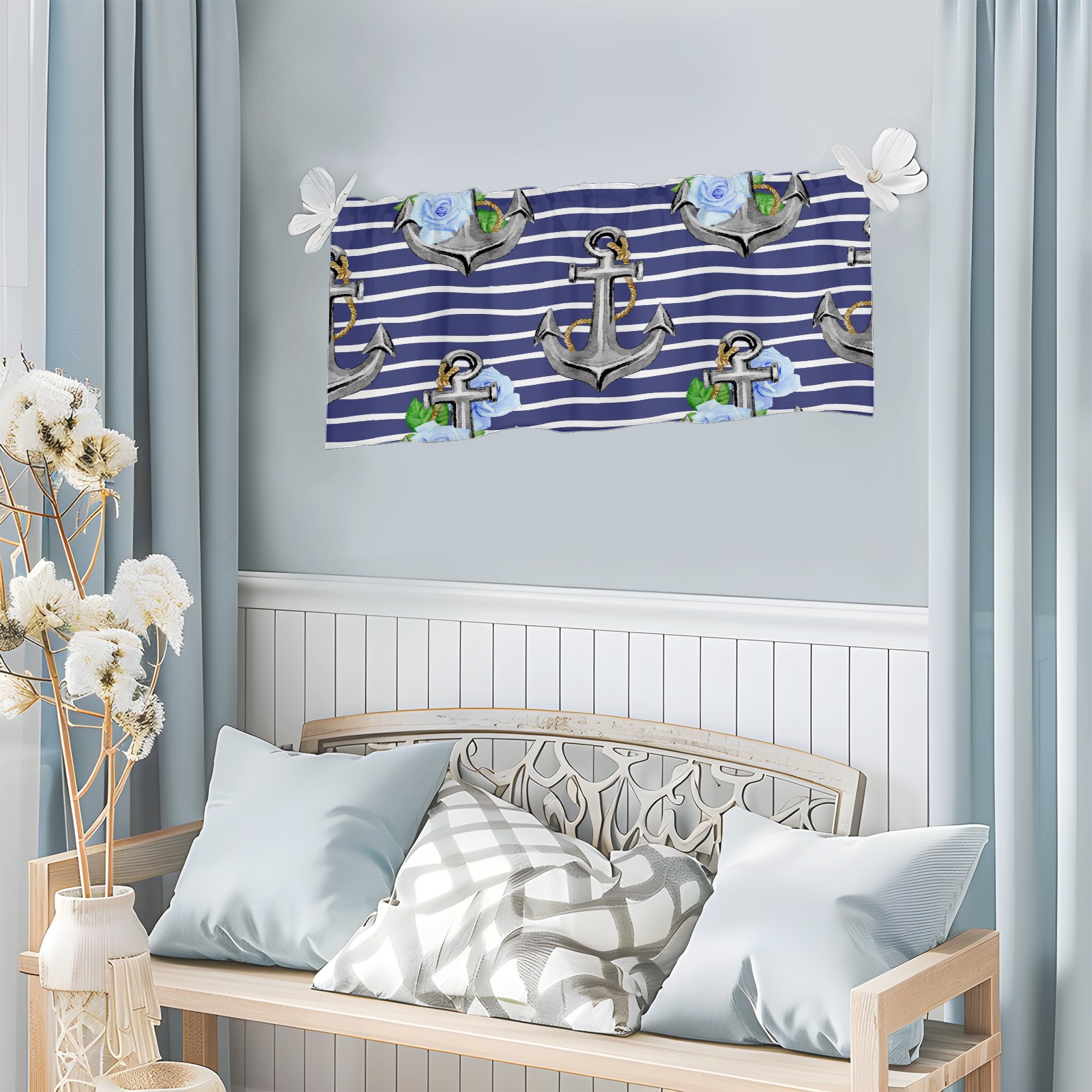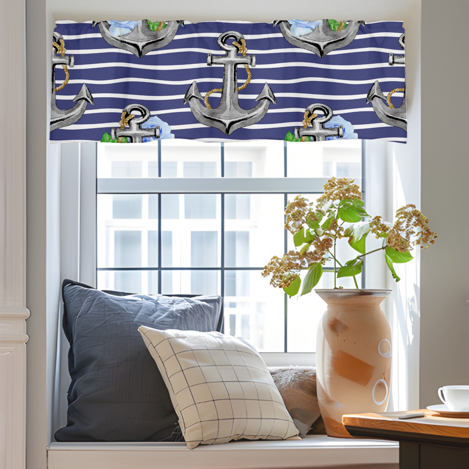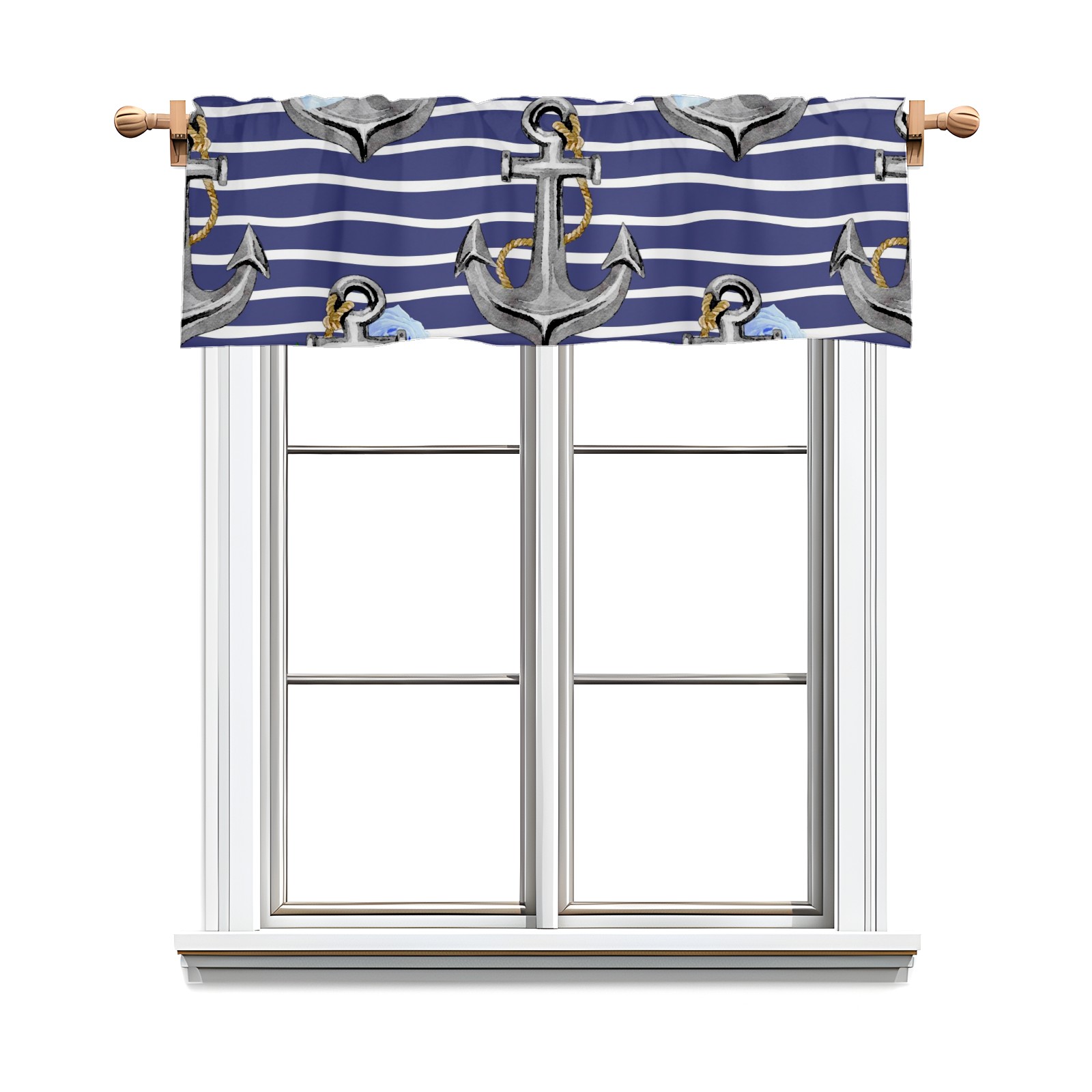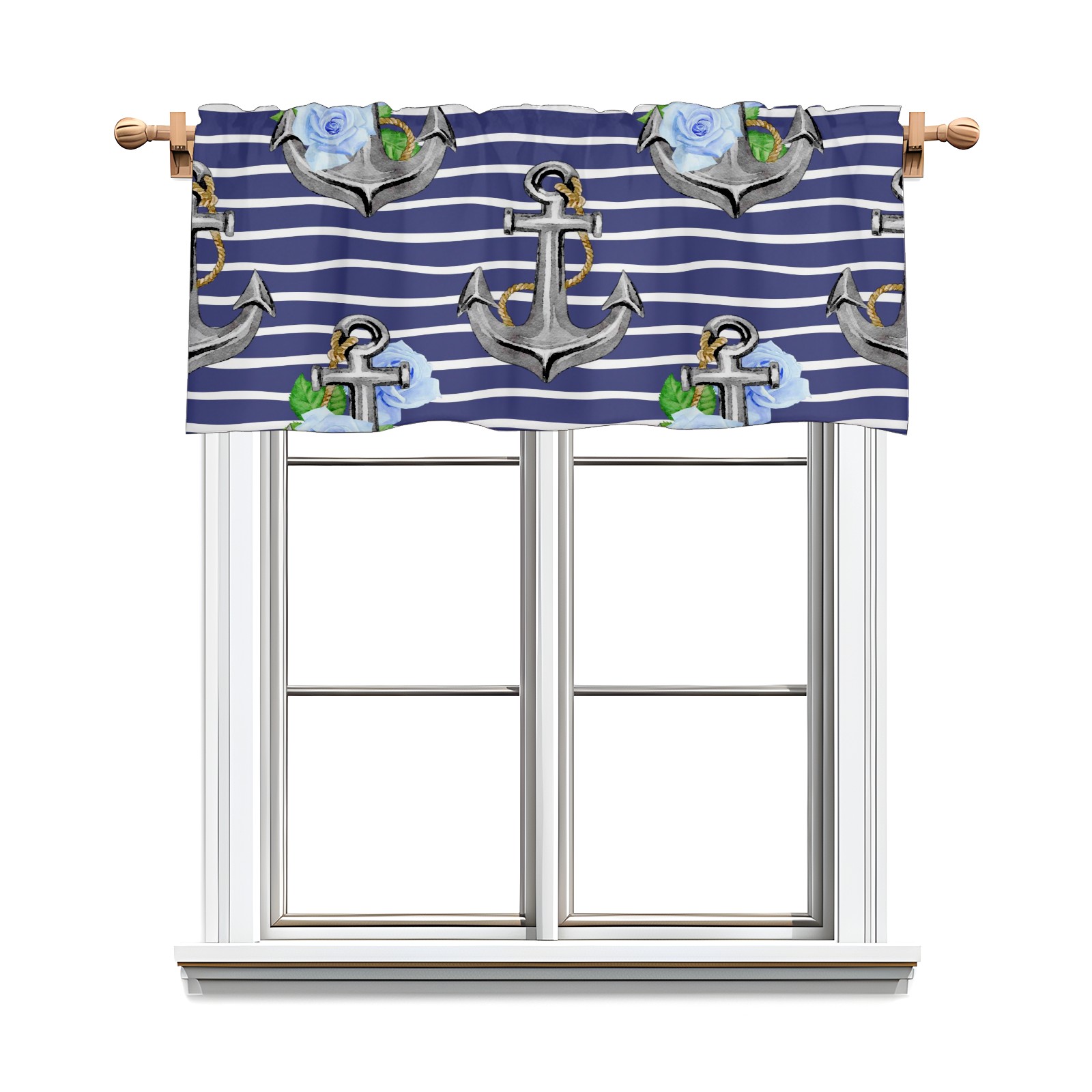 Blackout Curtain Valance for Living Room/Bathroom/Kitchen Valance Rod Pocket Curtain 14 x 52 Inches Stripe Nautical Anchor Floral Print