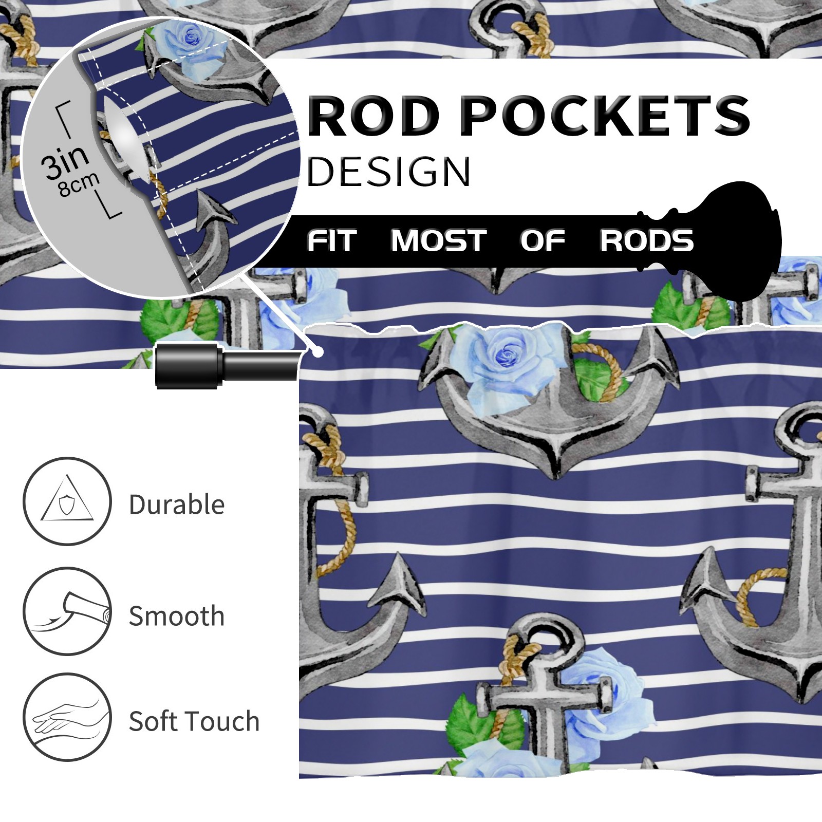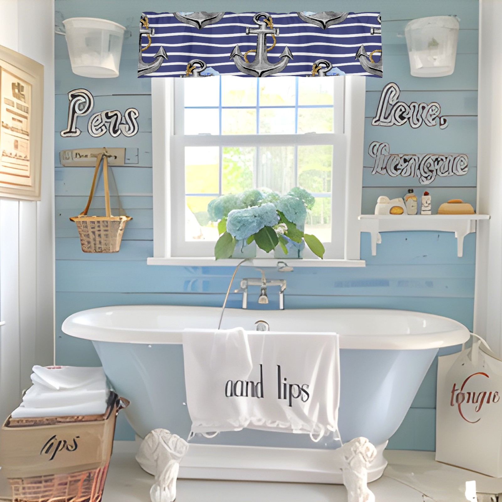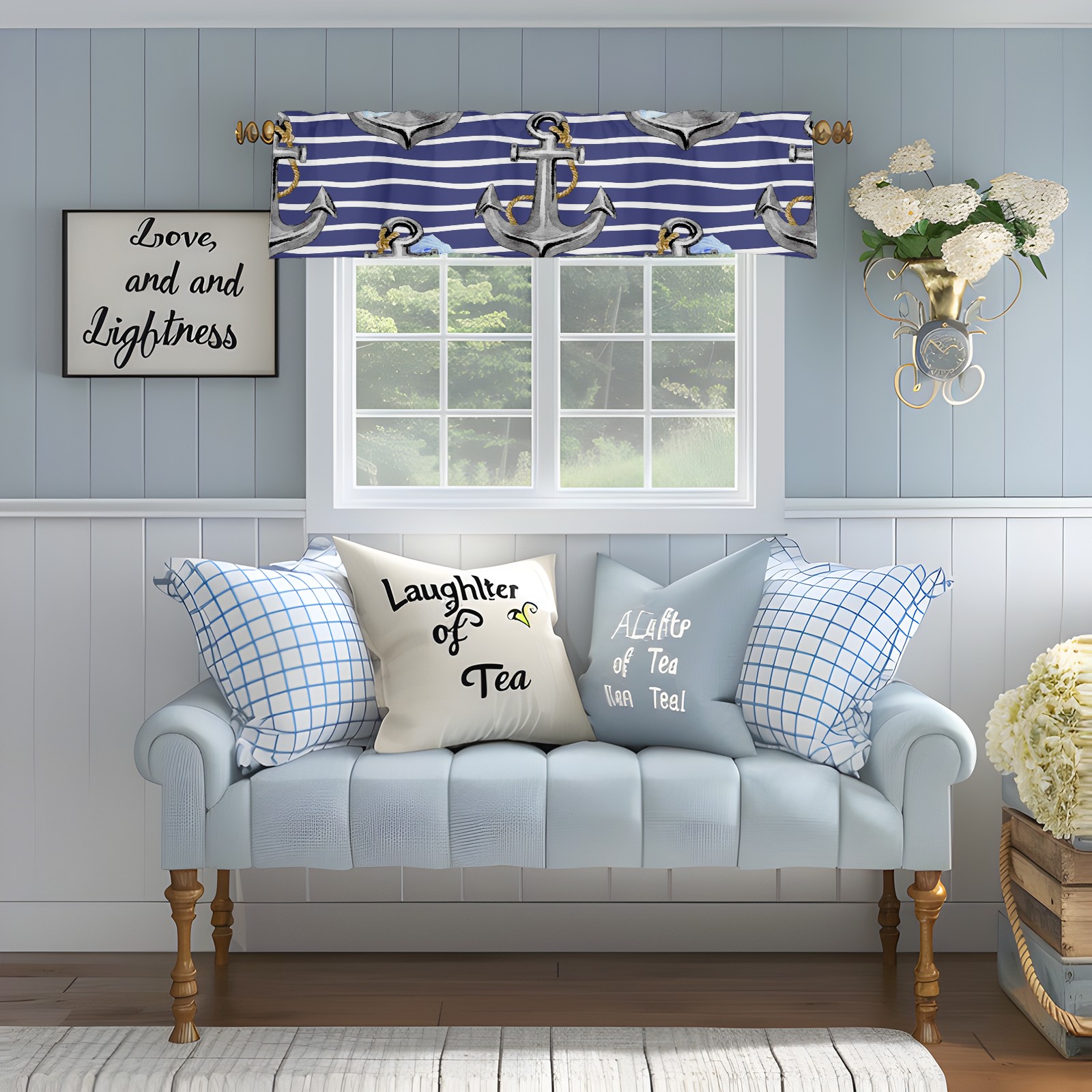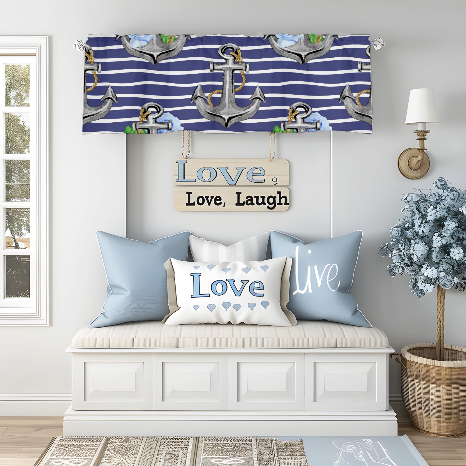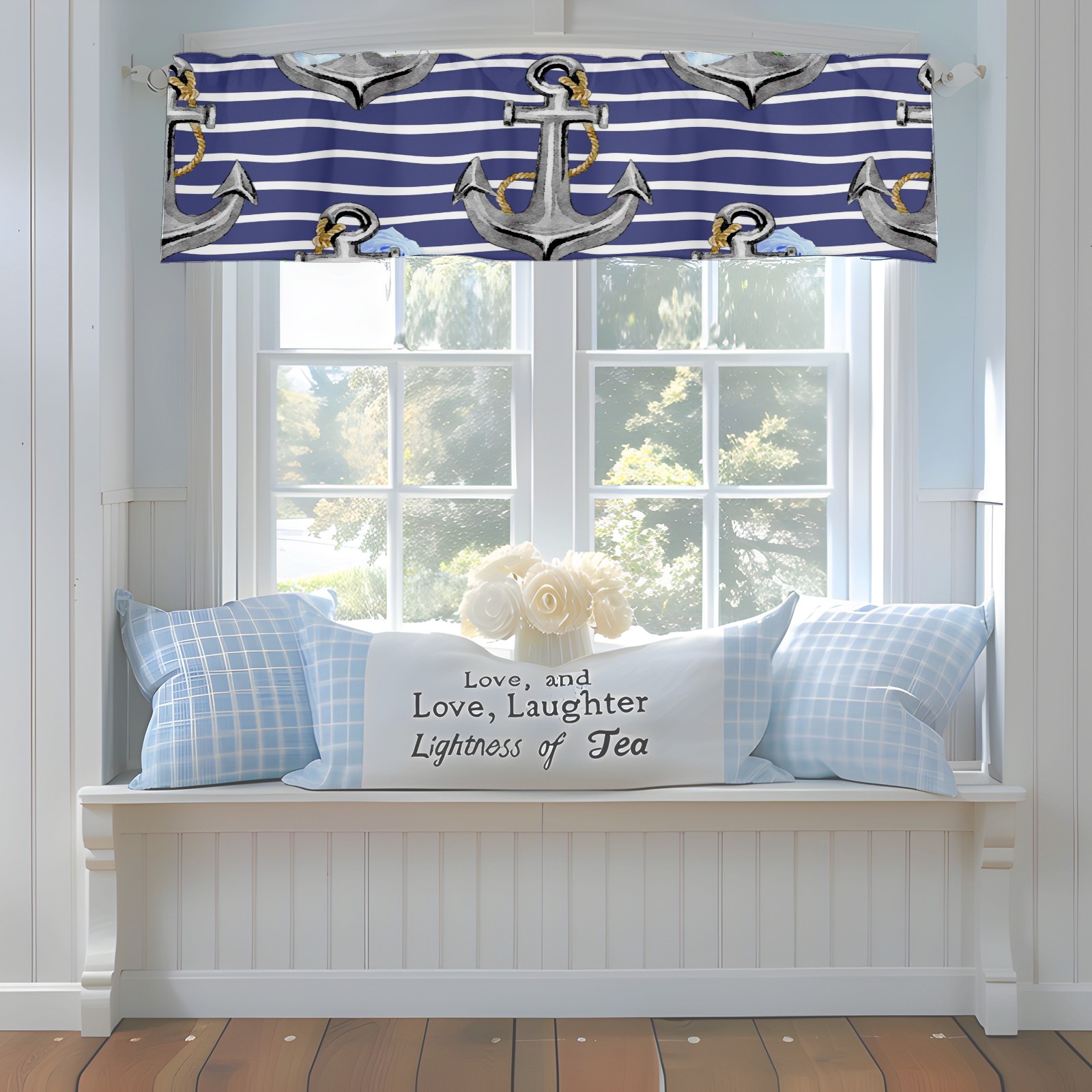 Blackout Curtain Valance for Living Room/Bathroom/Kitchen Valance Rod Pocket Curtain 14 x 52 Inches Stripe Nautical Anchor Floral Print