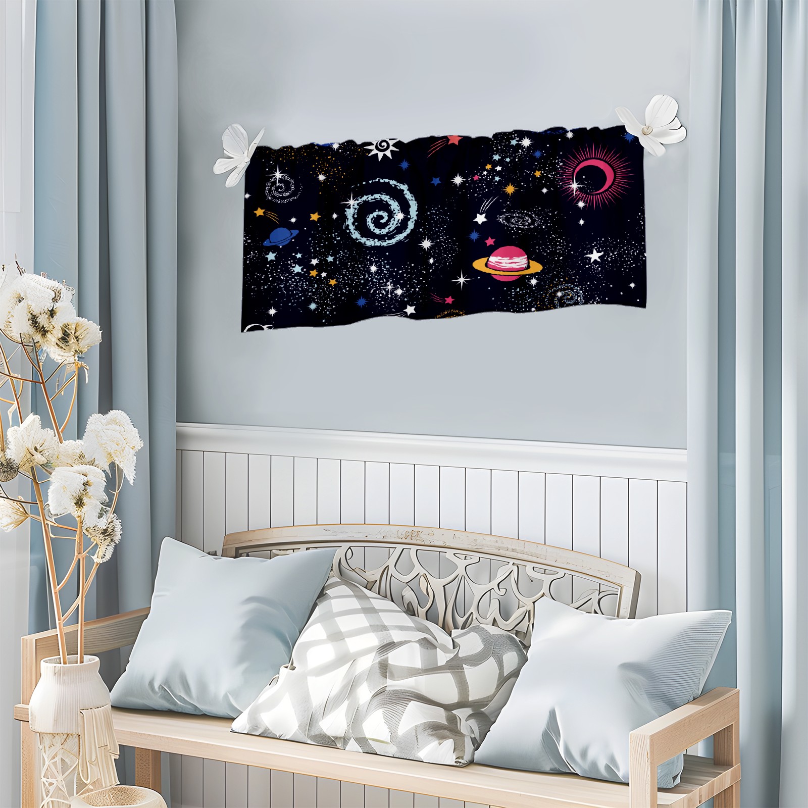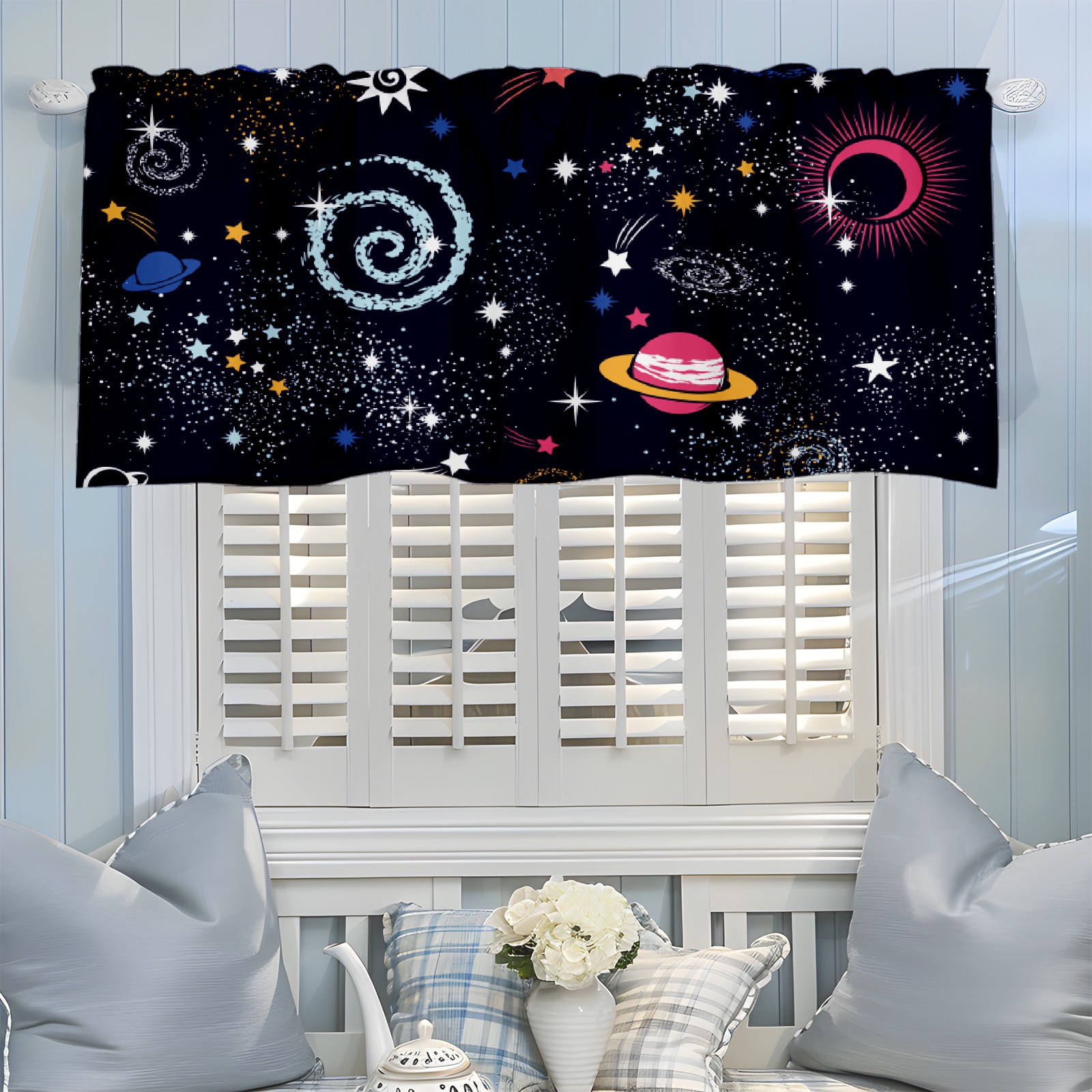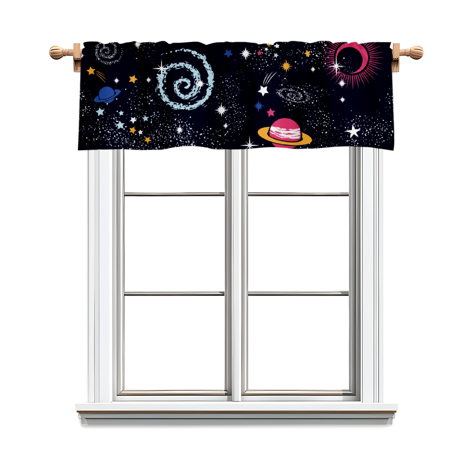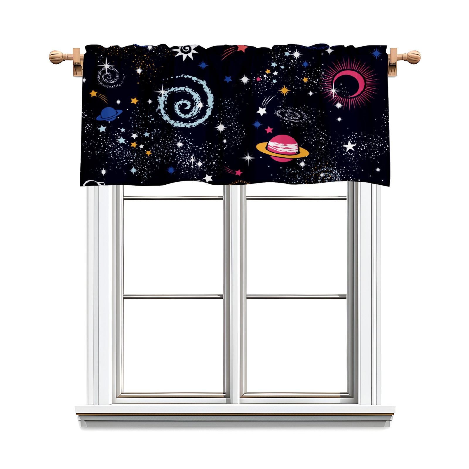 Blackout Curtain Valance for Living Room/Bathroom/Kitchen Valance Rod Pocket Curtain 14 x 52 Inches Space Stars Planets With Rockets