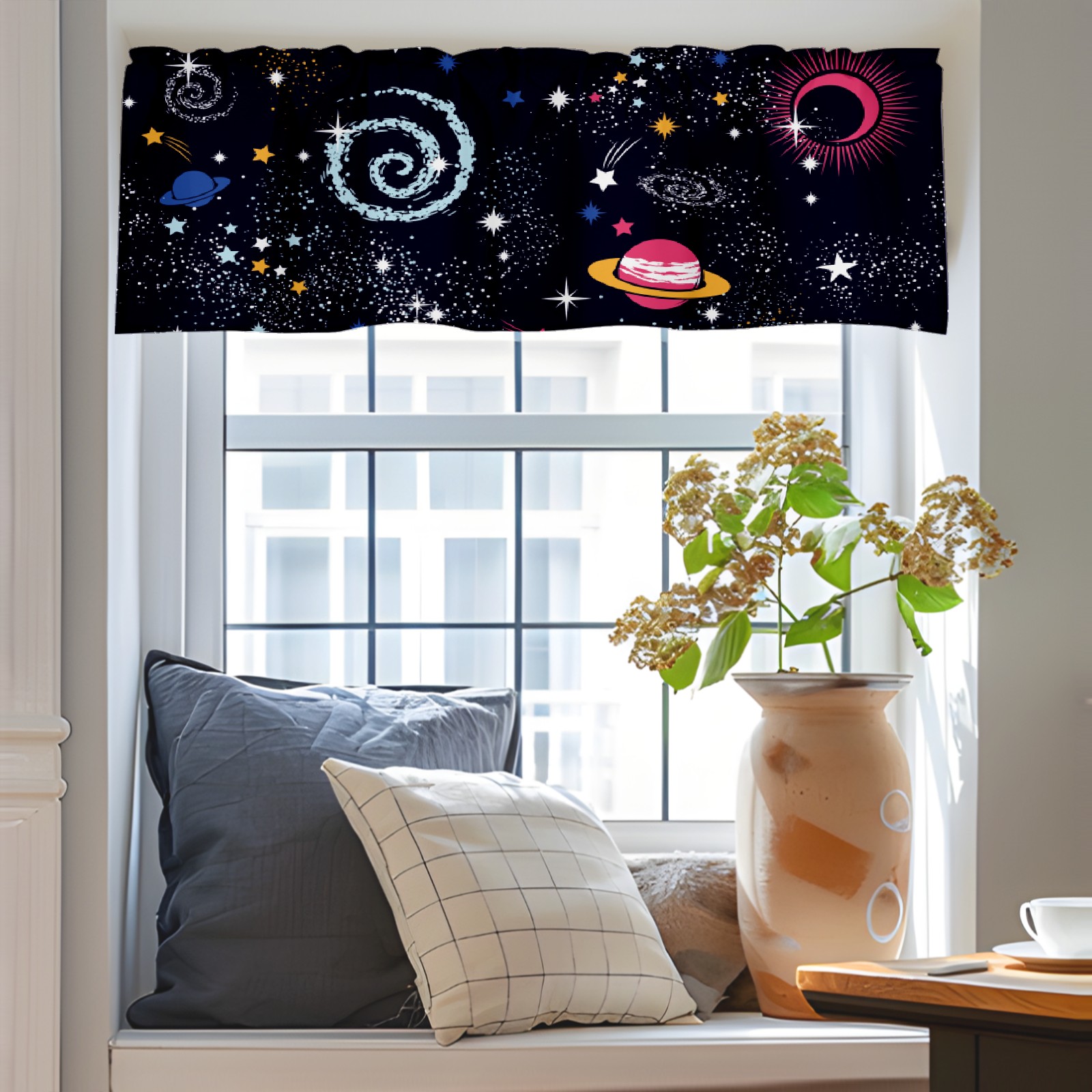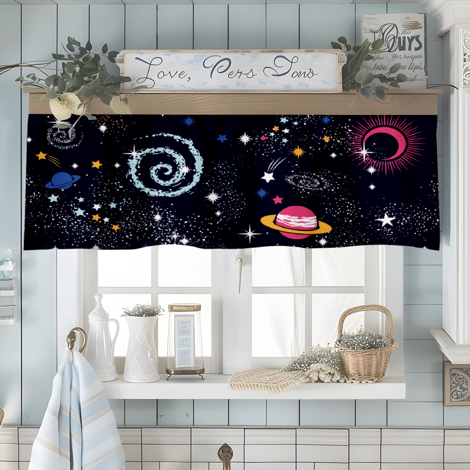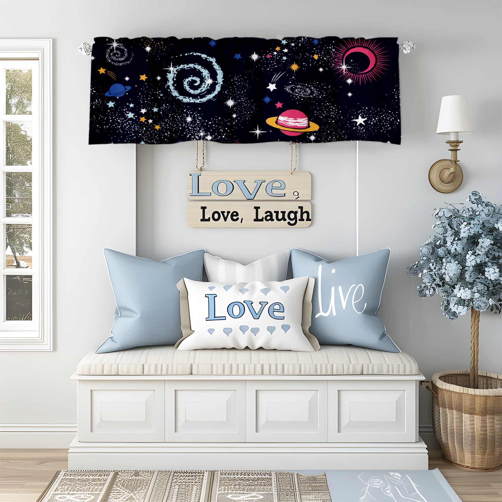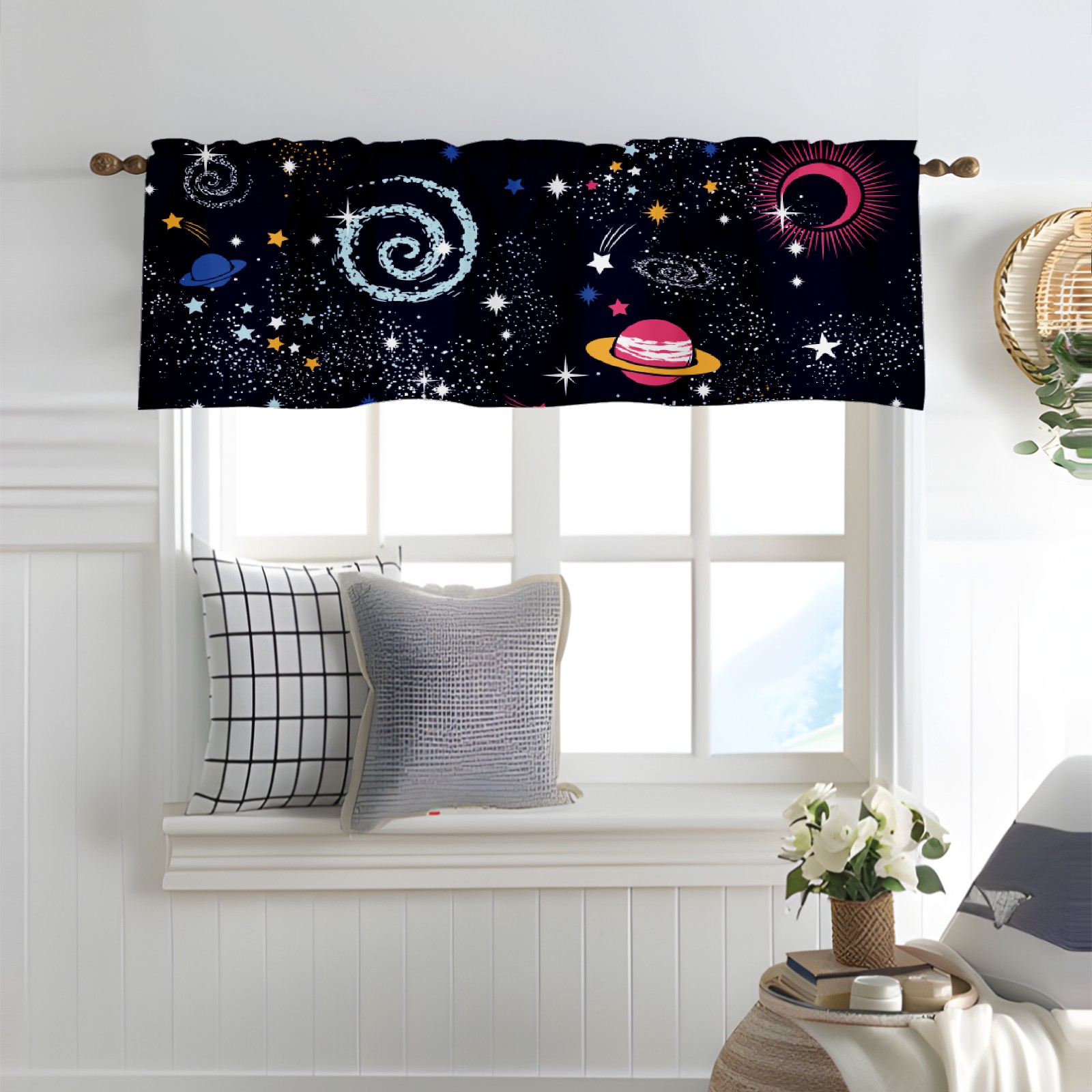 Blackout Curtain Valance for Living Room/Bathroom/Kitchen Valance Rod Pocket Curtain 14 x 52 Inches Space Stars Planets With Rockets