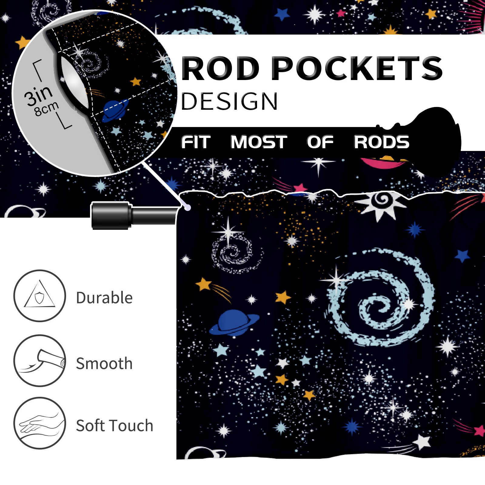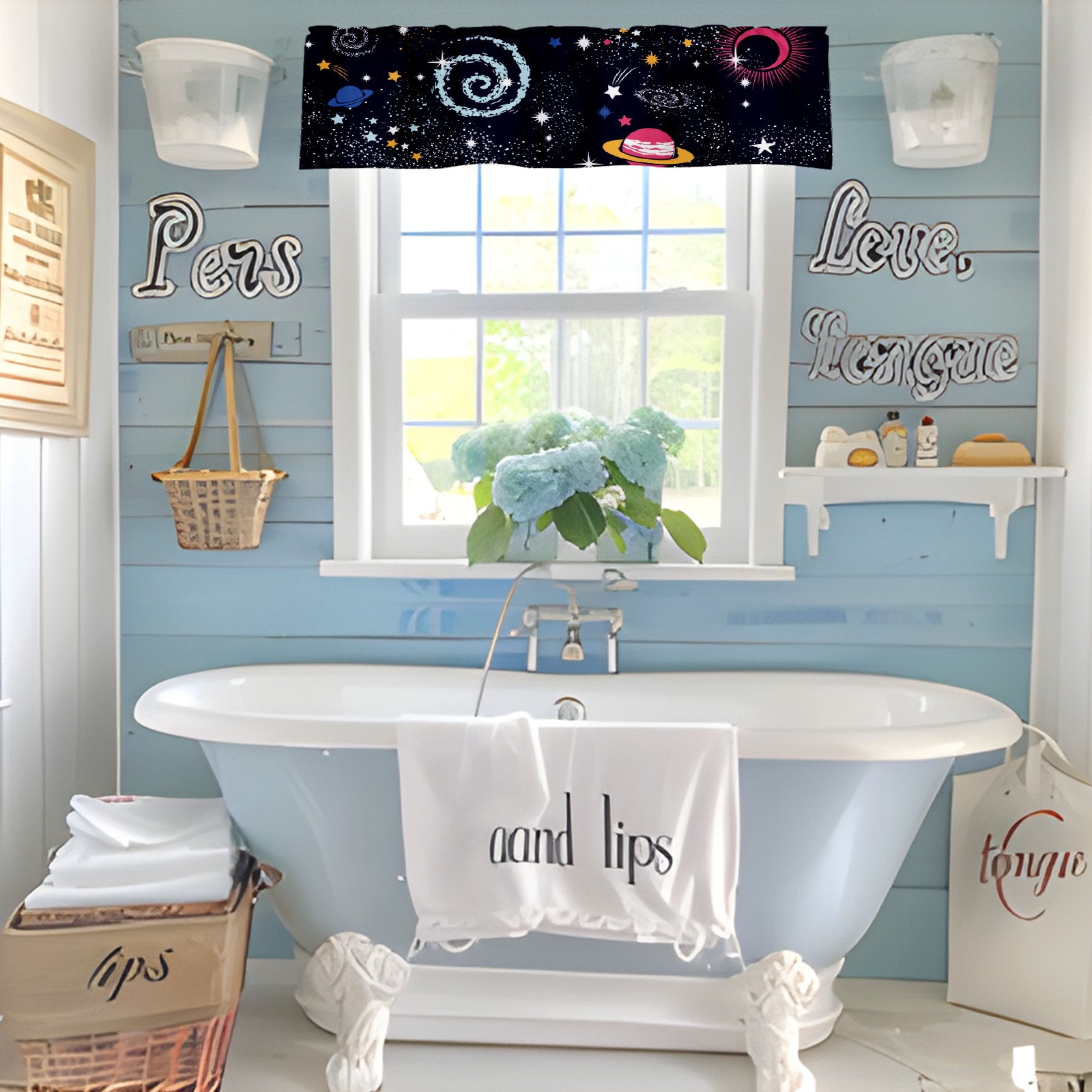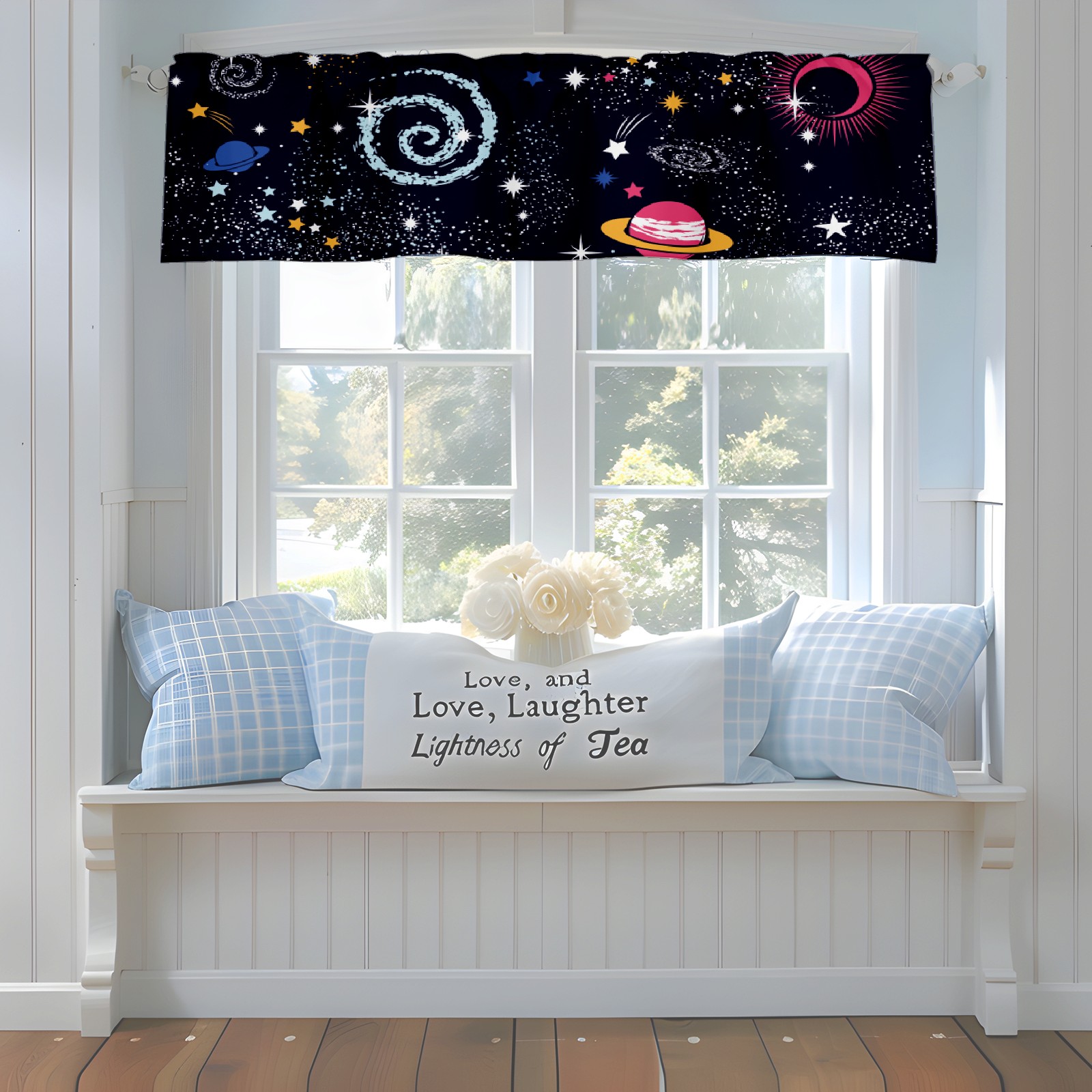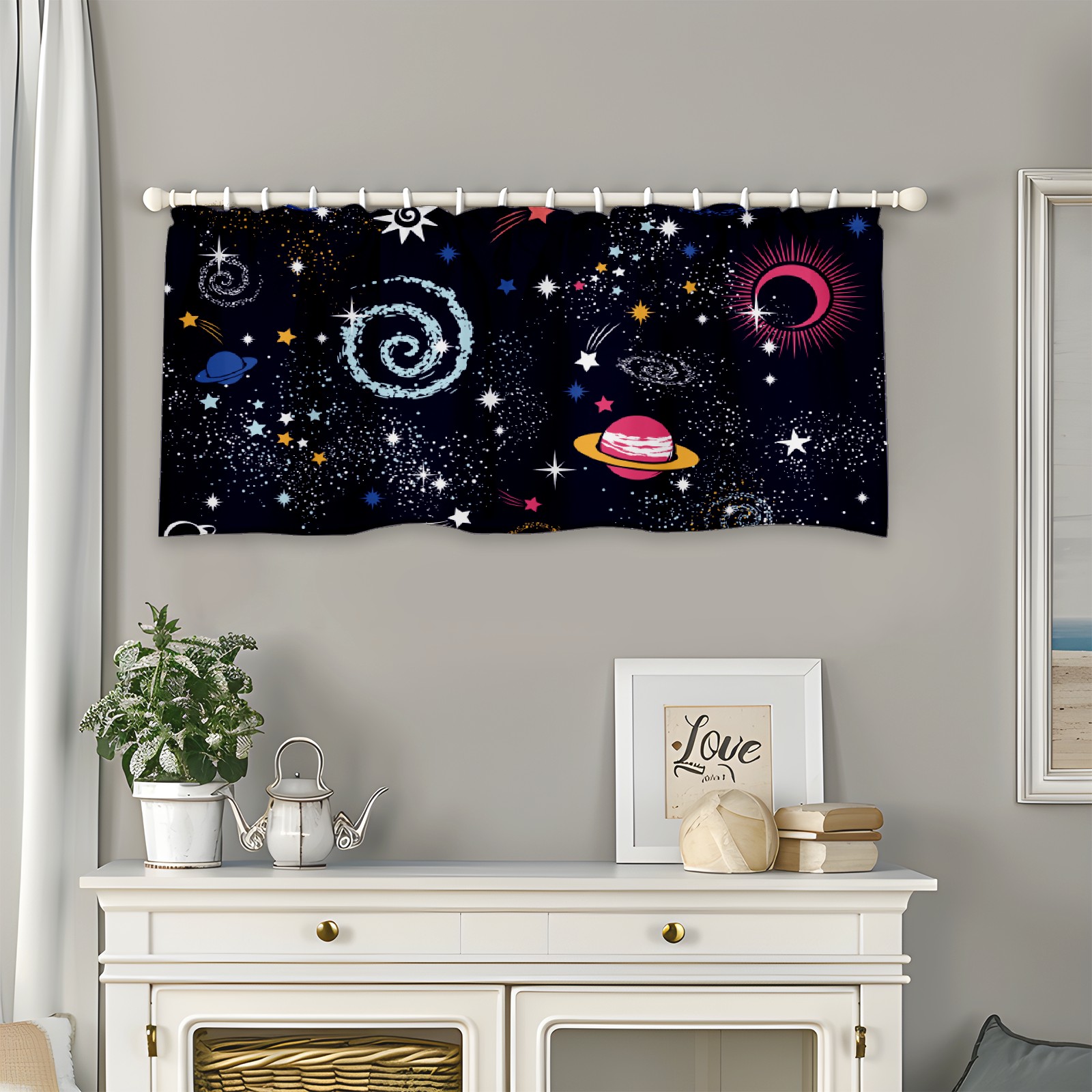 Blackout Curtain Valance for Living Room/Bathroom/Kitchen Valance Rod Pocket Curtain 14 x 52 Inches Space Stars Planets With Rockets