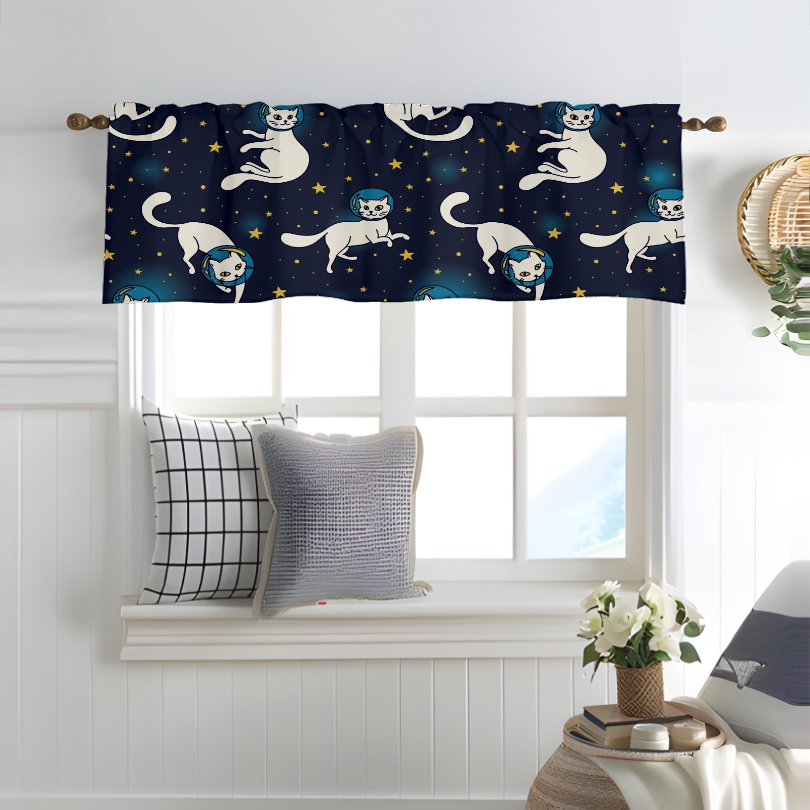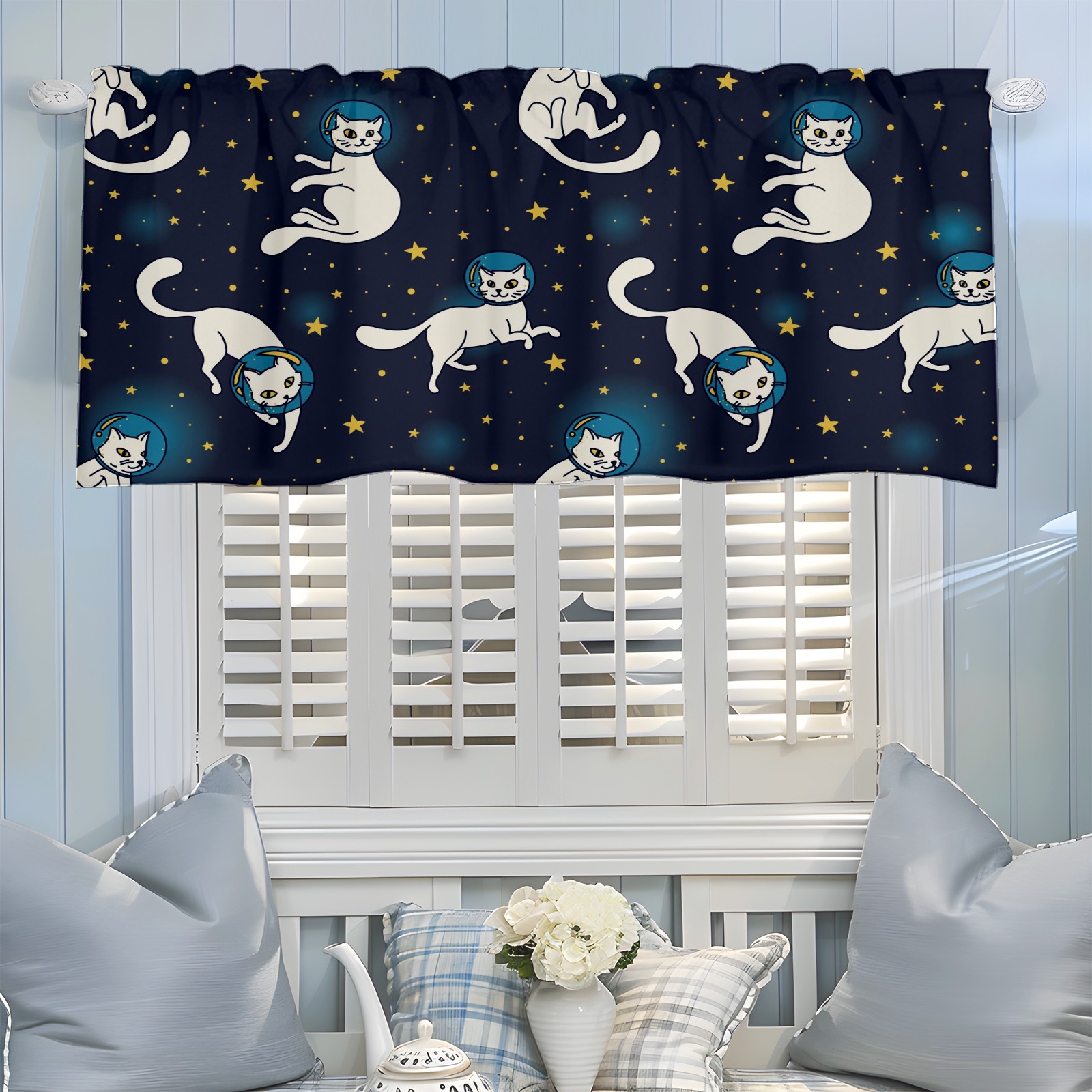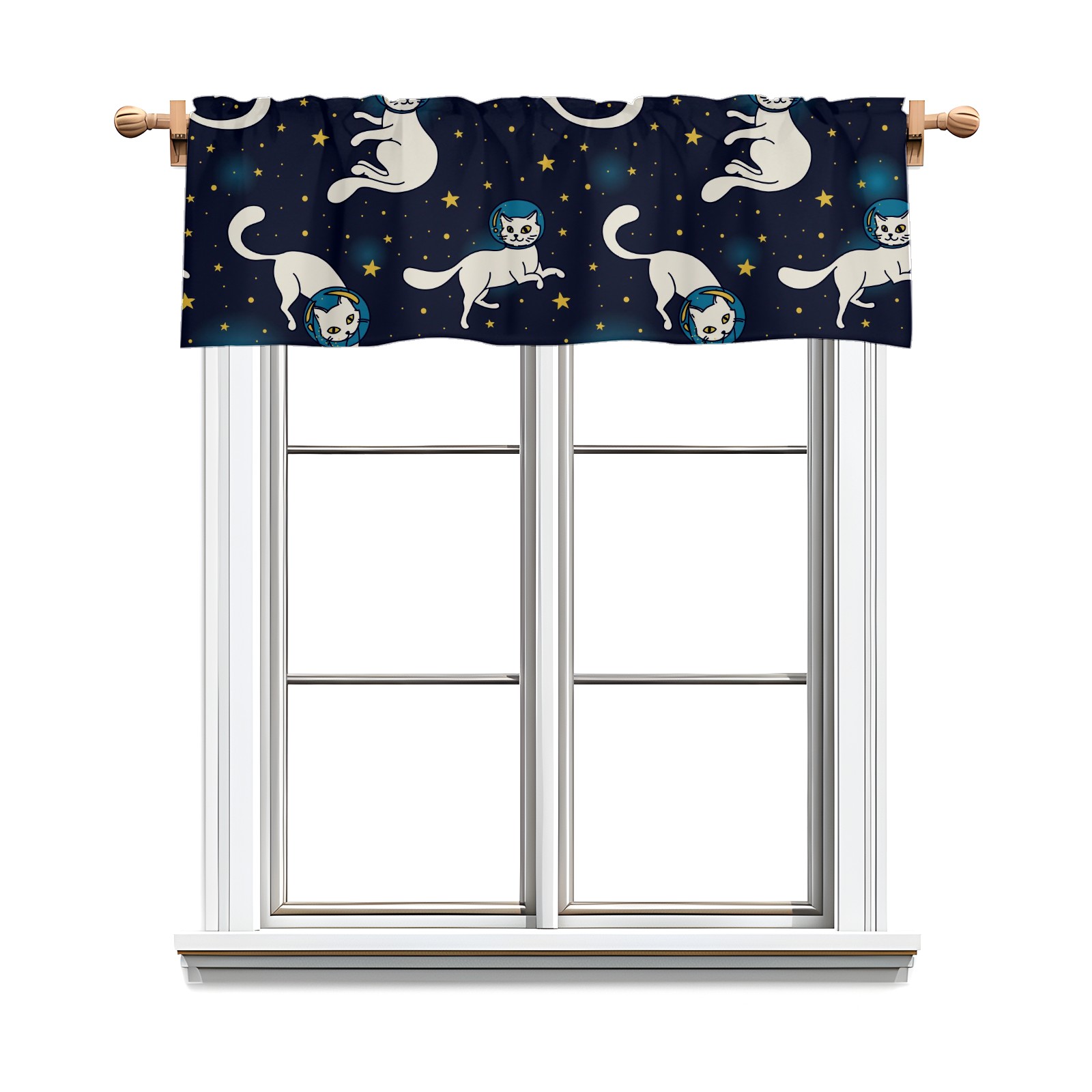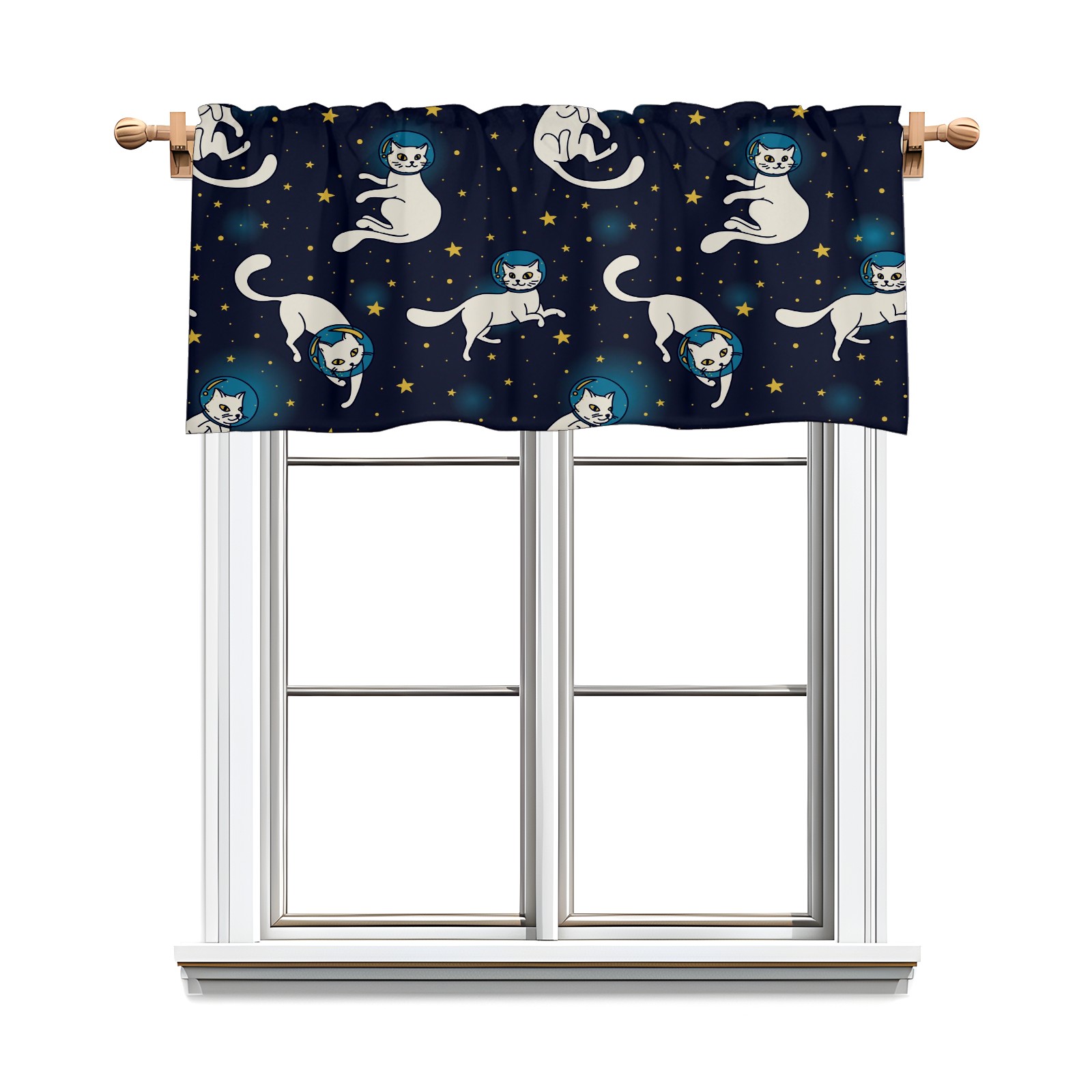 Blackout Curtain Valance for Living Room/Bathroom/Kitchen Valance Rod Pocket Curtain 14 x 52 Inches Space Galaxy Astronaut Cats Stars Pattern