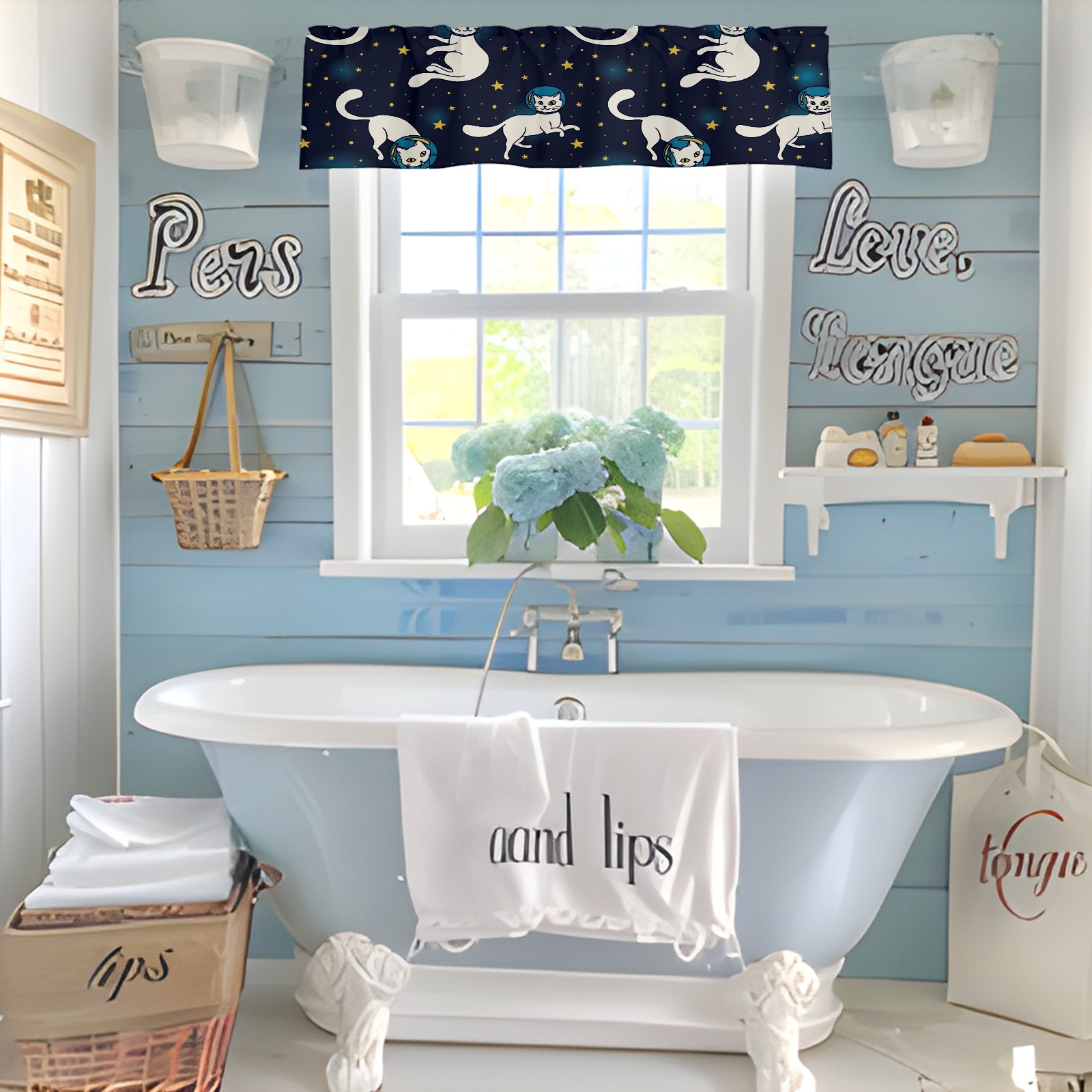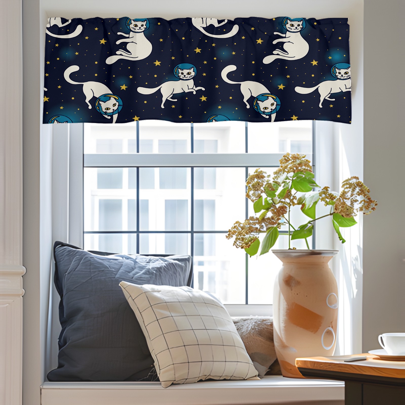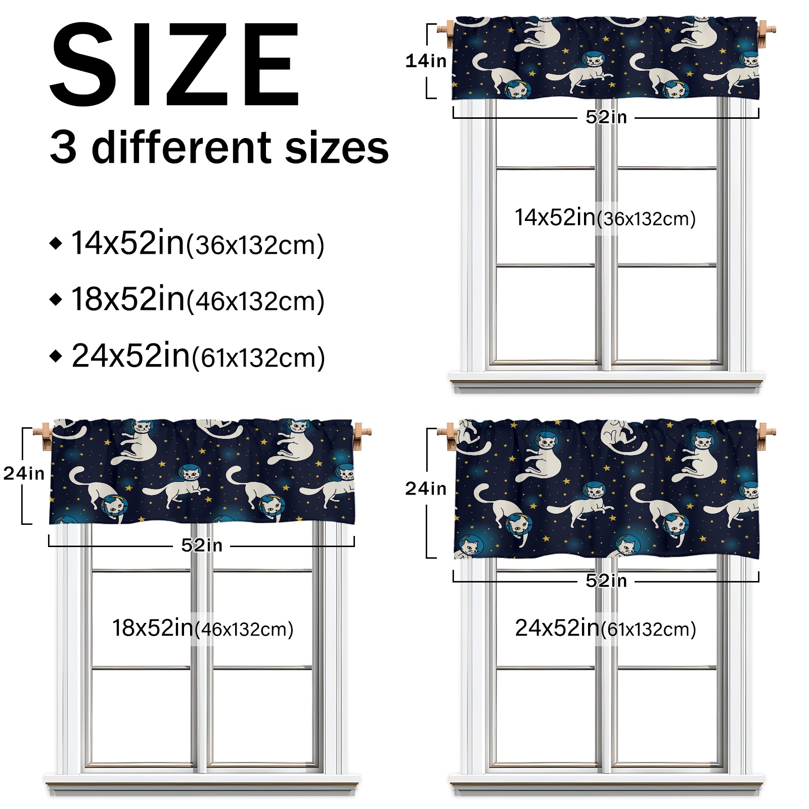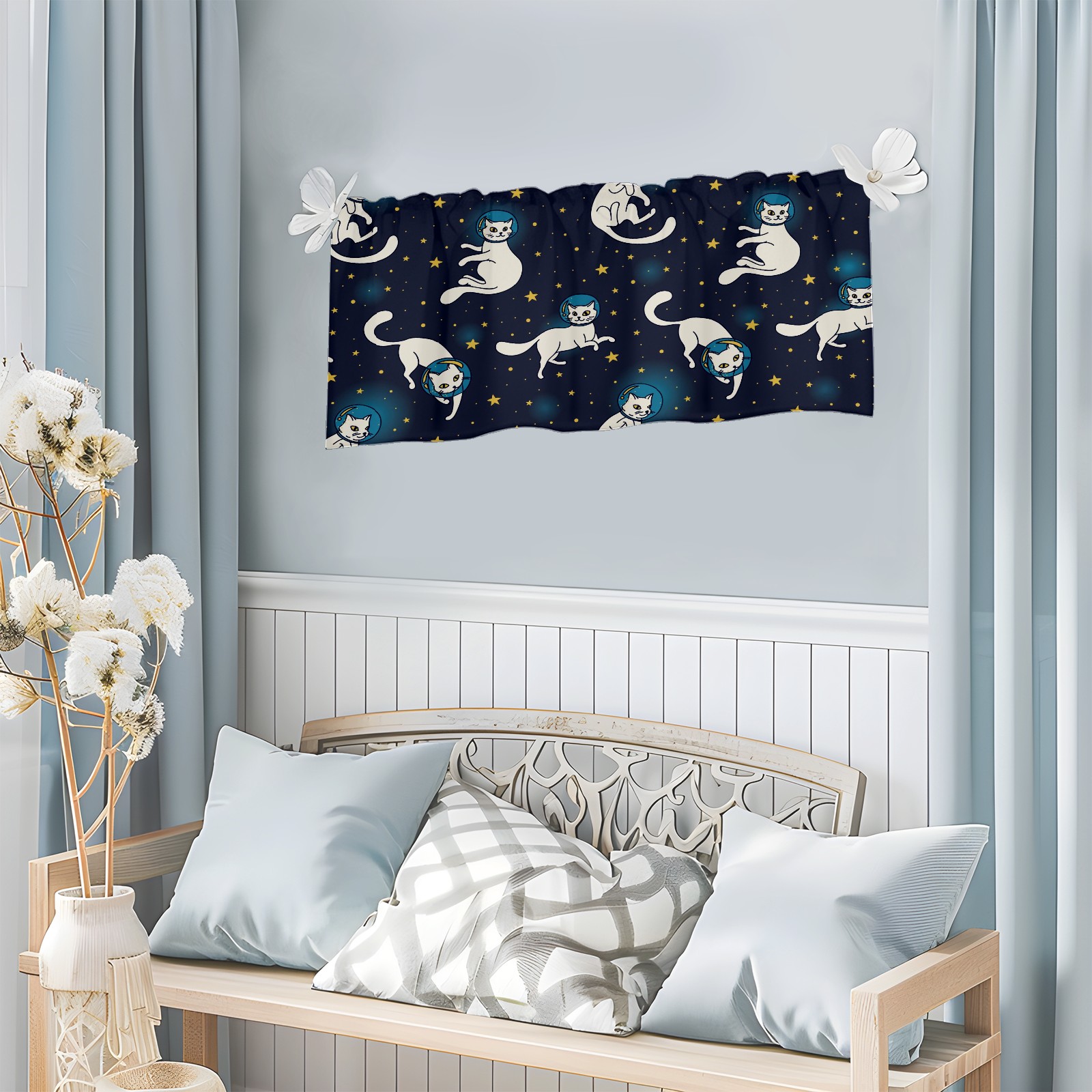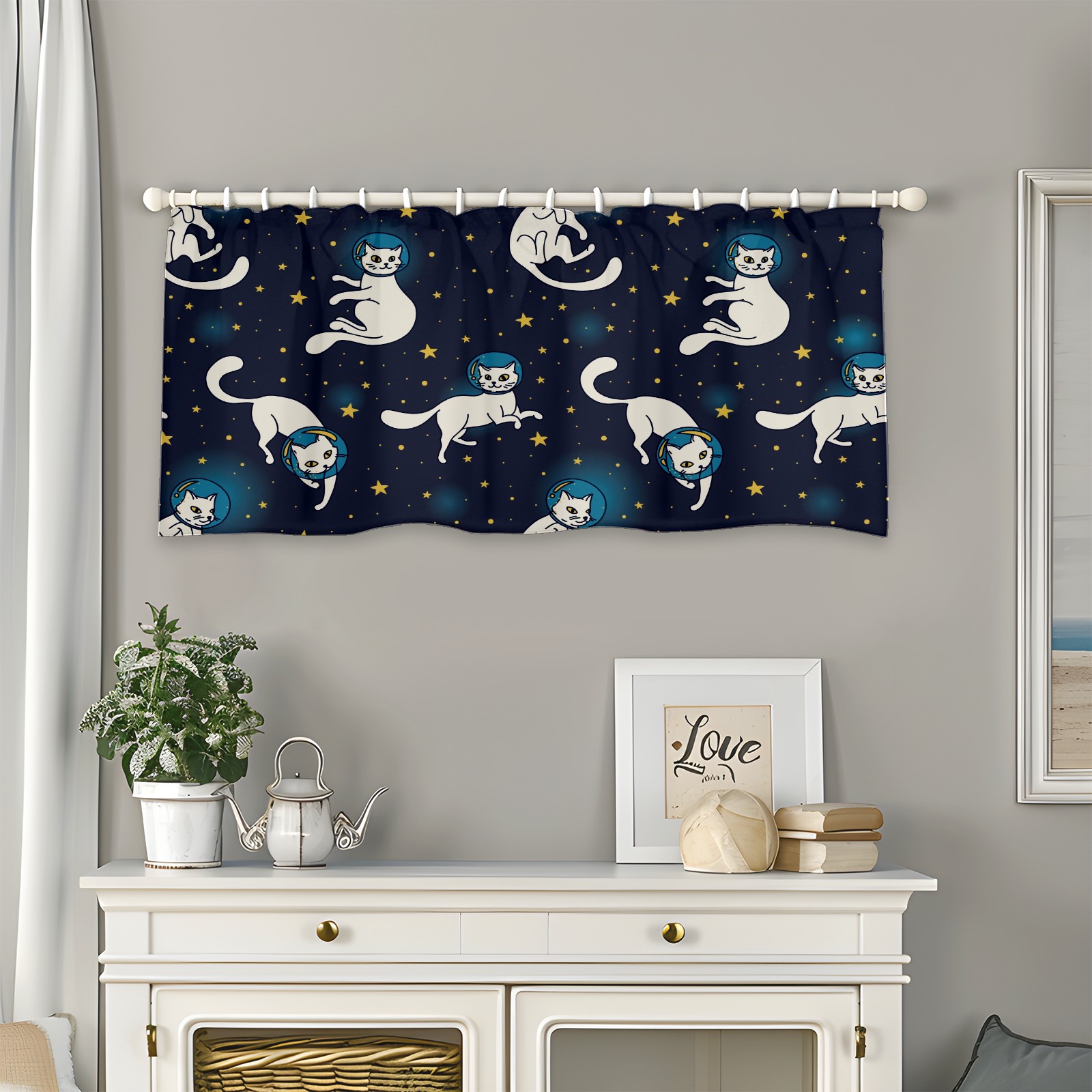 Blackout Curtain Valance for Living Room/Bathroom/Kitchen Valance Rod Pocket Curtain 14 x 52 Inches Space Galaxy Astronaut Cats Stars Pattern