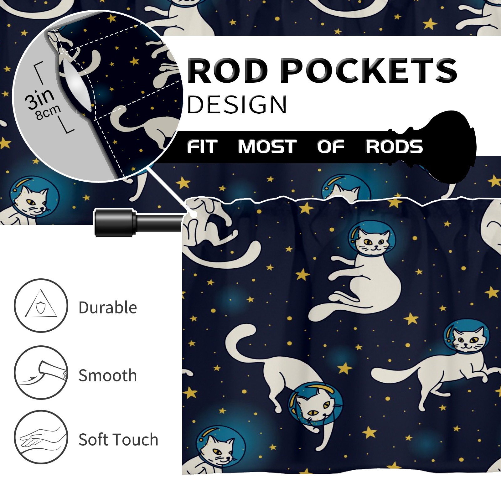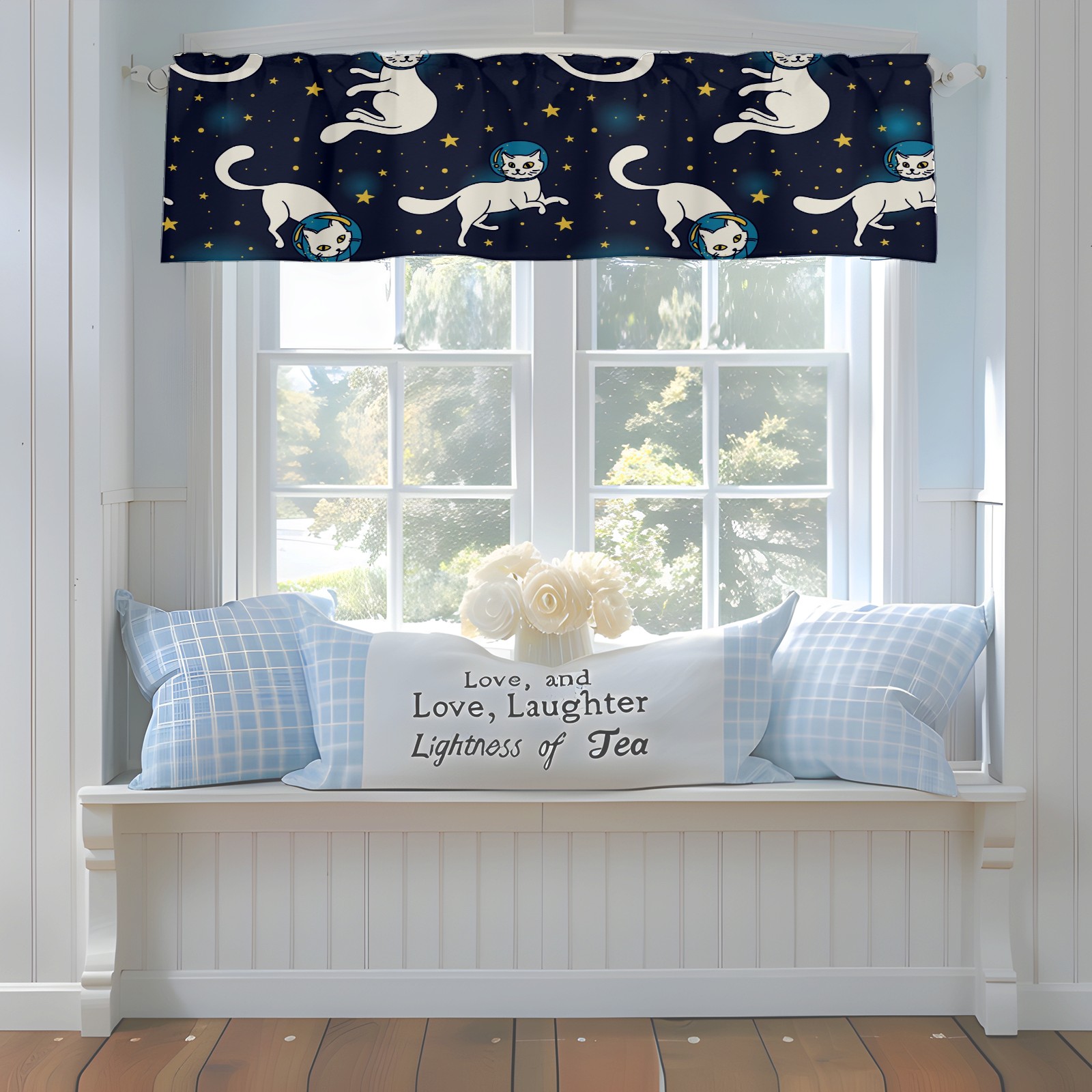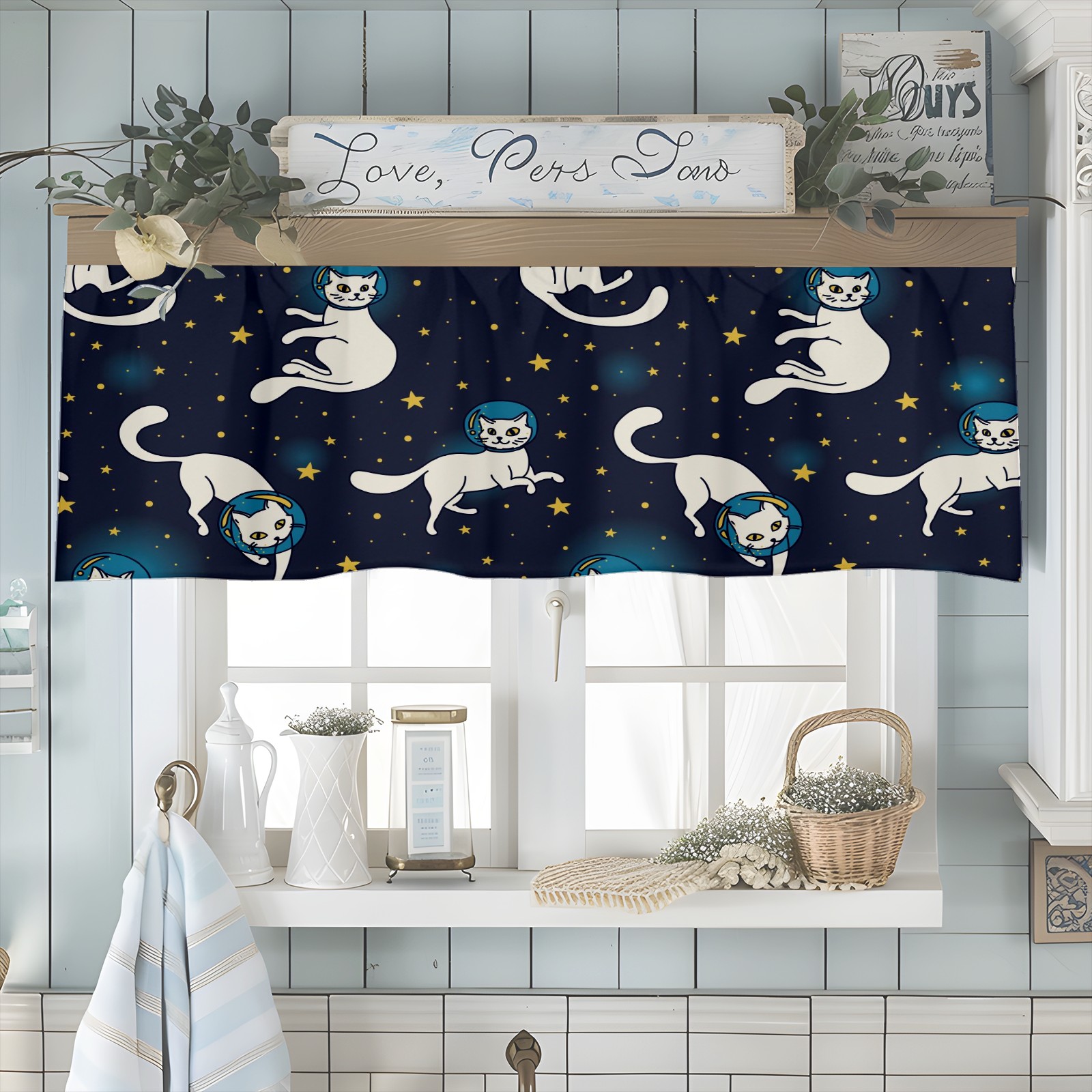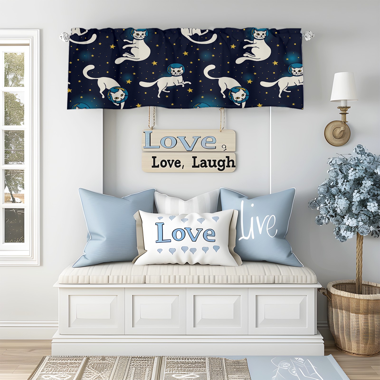 Blackout Curtain Valance for Living Room/Bathroom/Kitchen Valance Rod Pocket Curtain 14 x 52 Inches Space Galaxy Astronaut Cats Stars Pattern