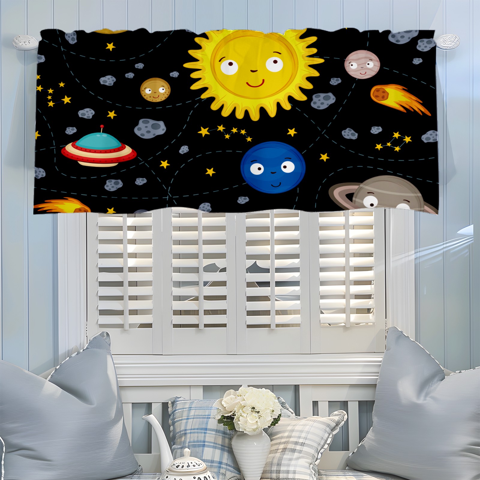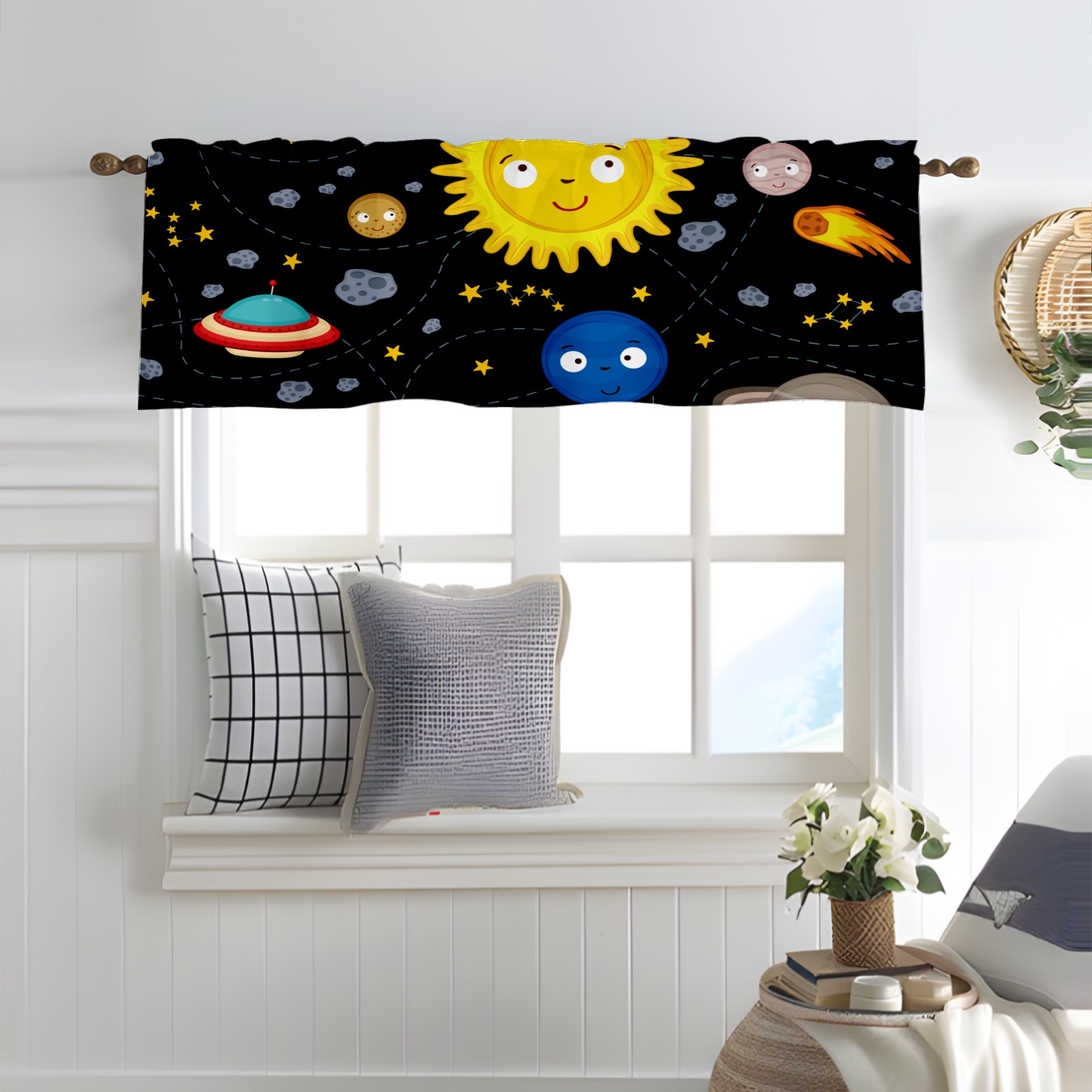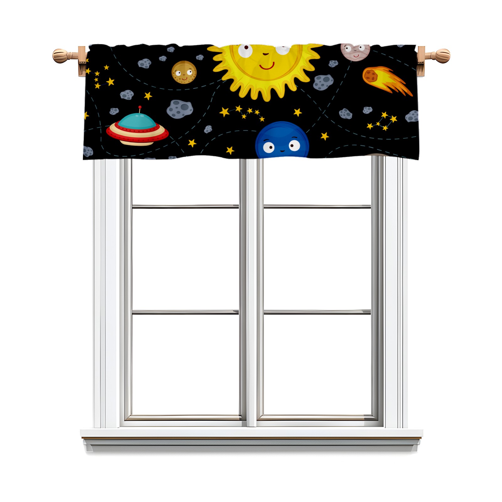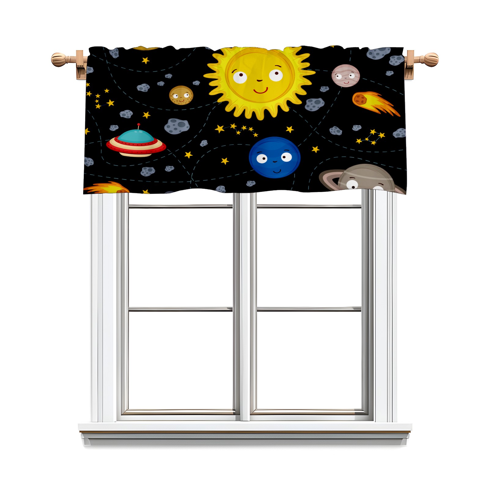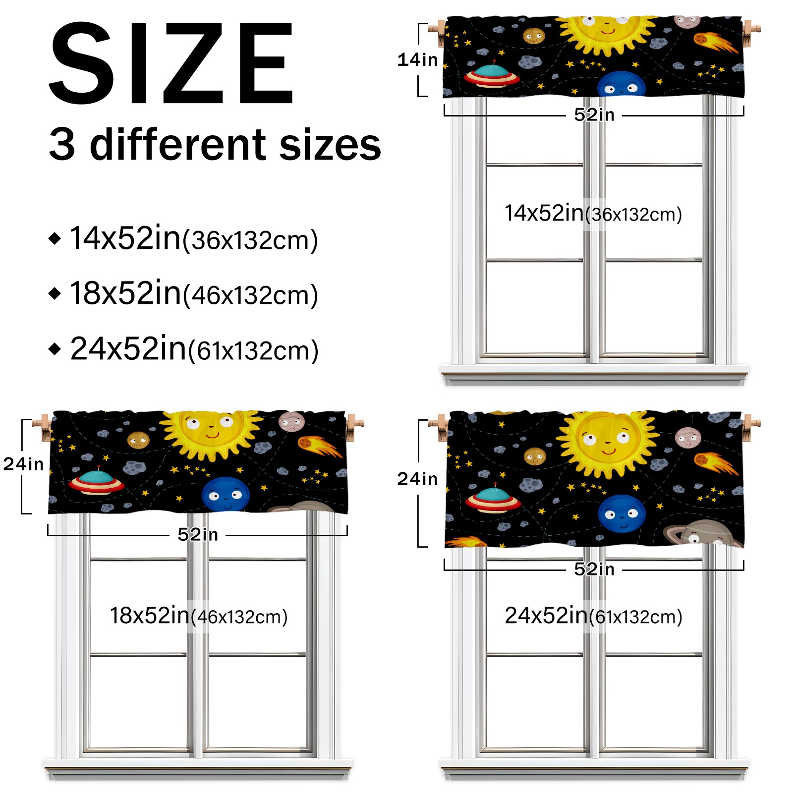 Blackout Curtain Valance for Living Room/Bathroom/Kitchen Valance Rod Pocket Curtain 14 x 52 Inches Space Stars Planets Galaxy Rockets Sun