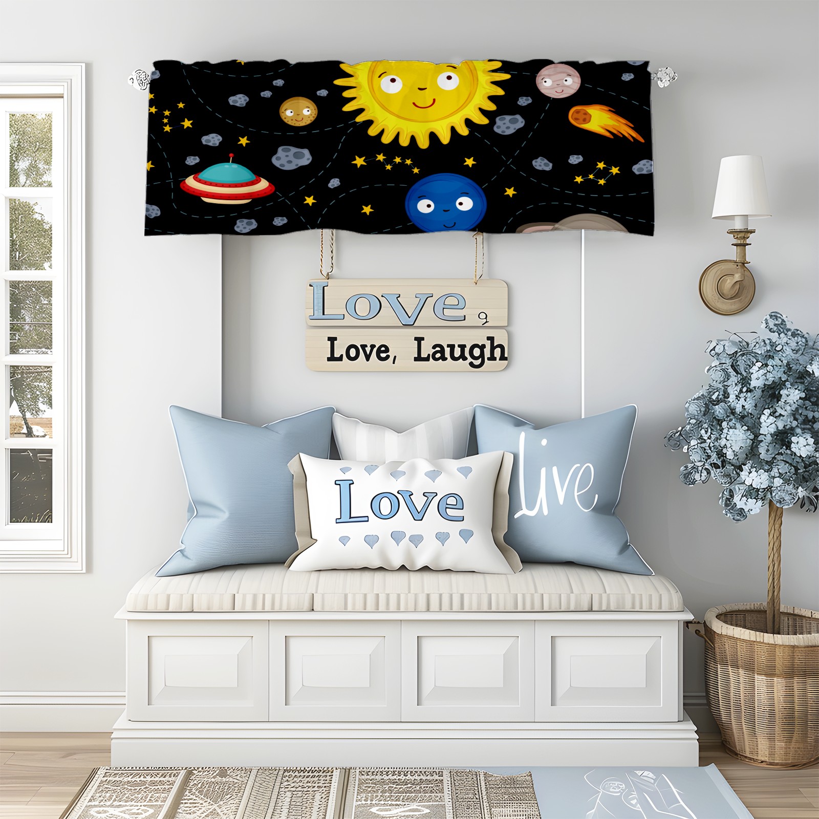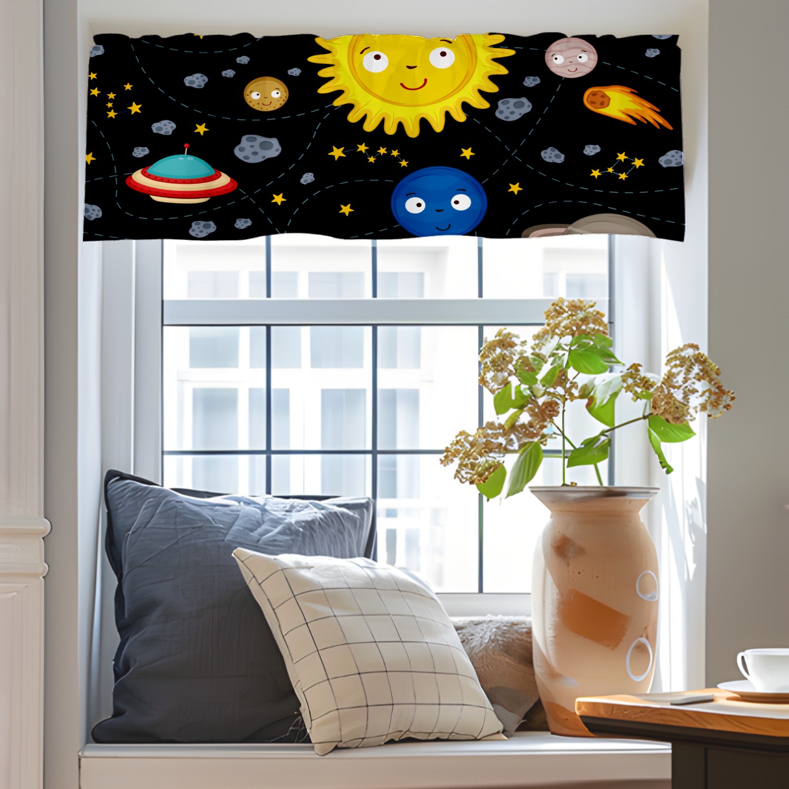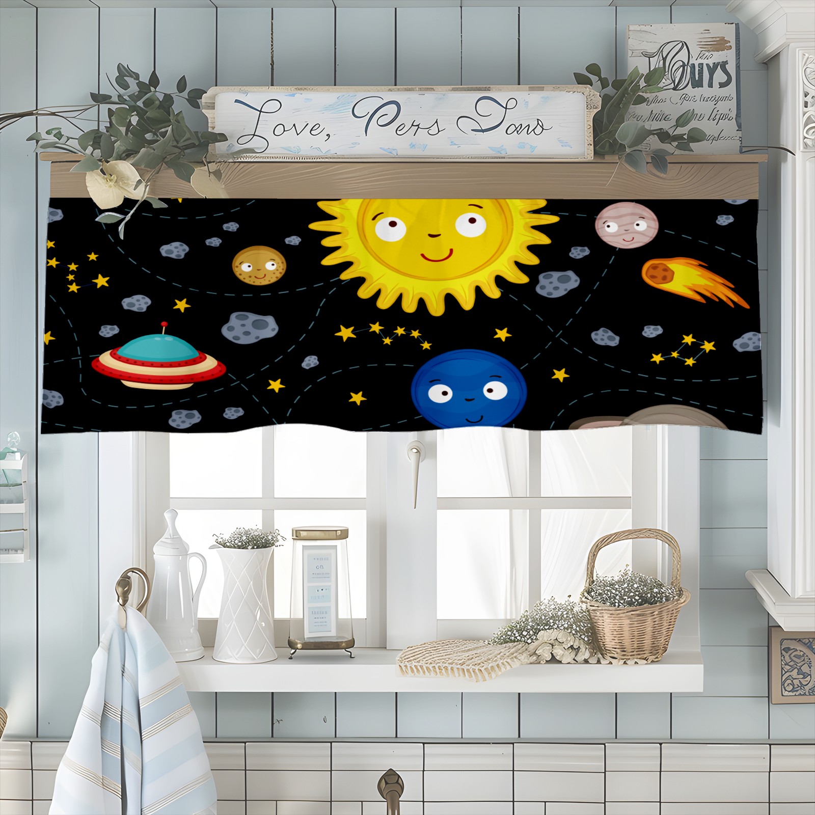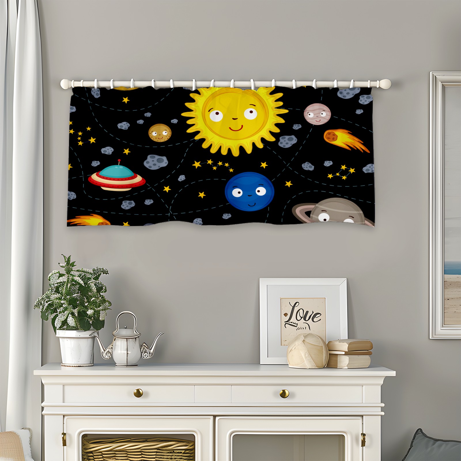 Blackout Curtain Valance for Living Room/Bathroom/Kitchen Valance Rod Pocket Curtain 14 x 52 Inches Space Stars Planets Galaxy Rockets Sun