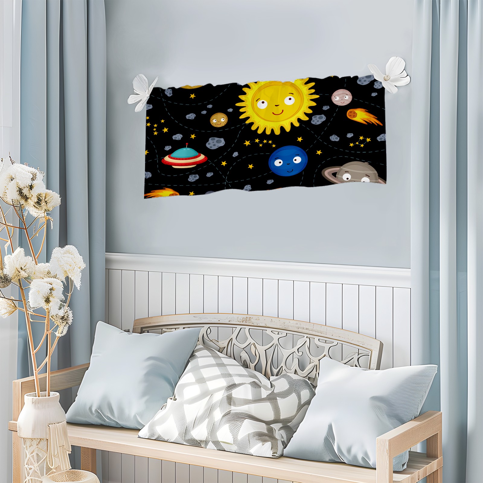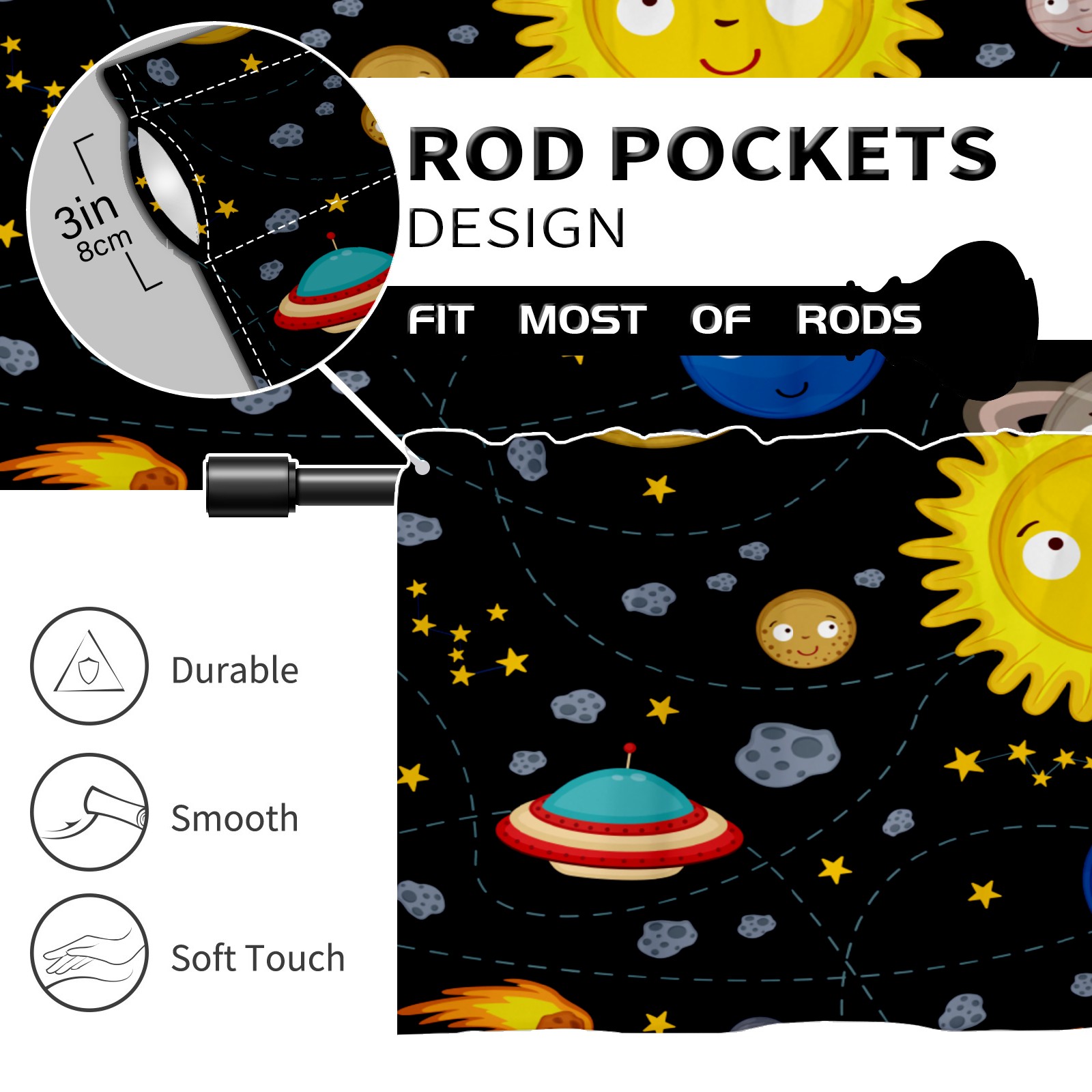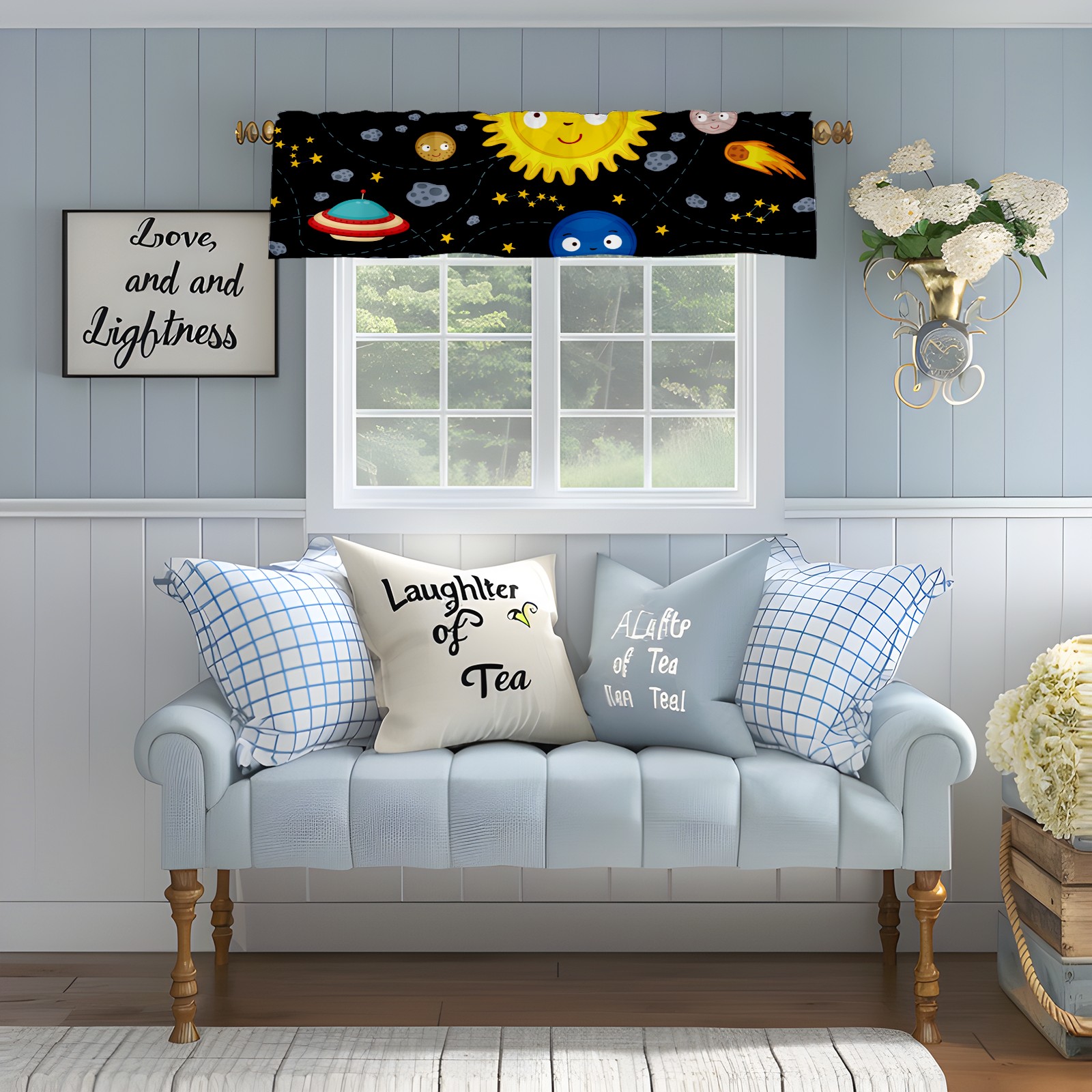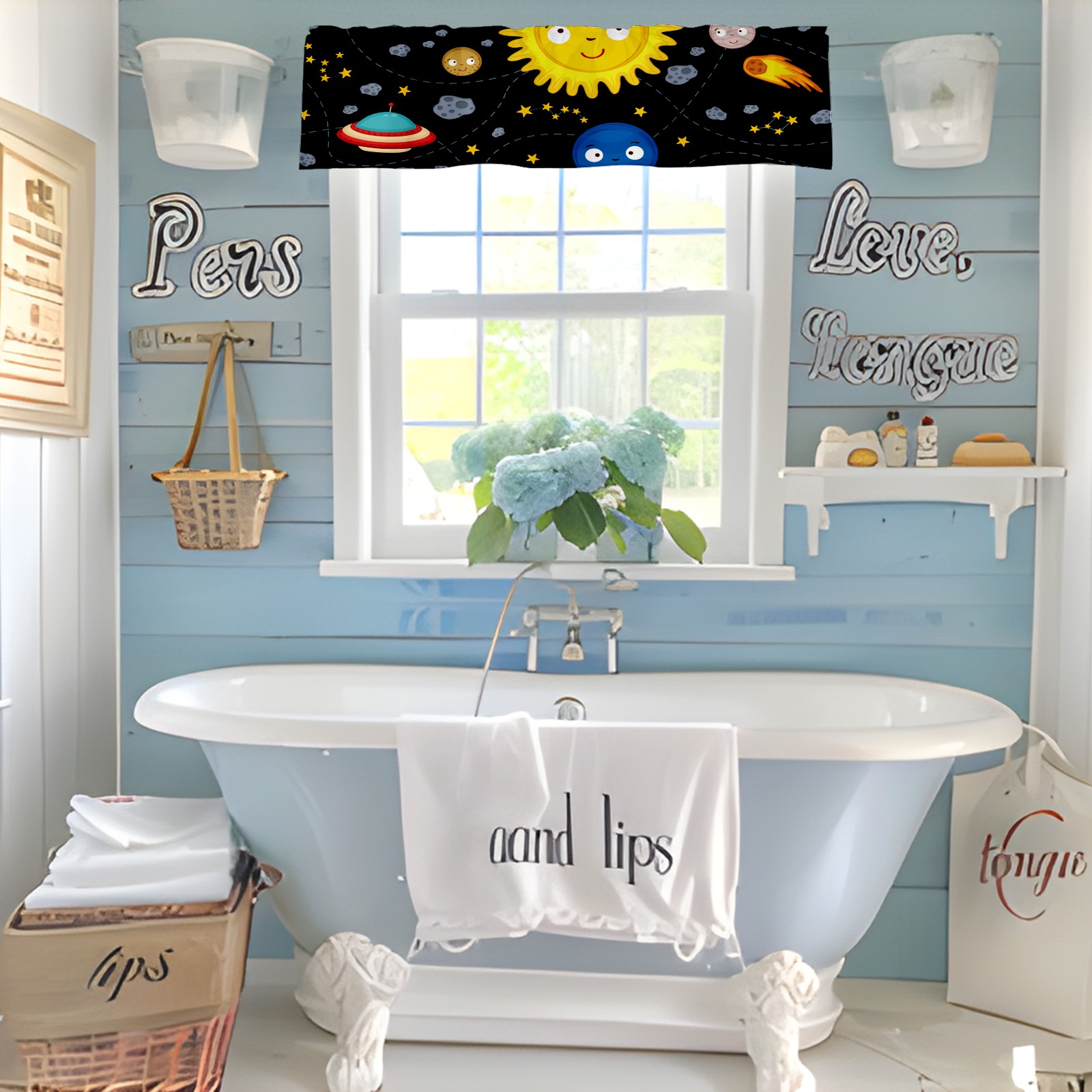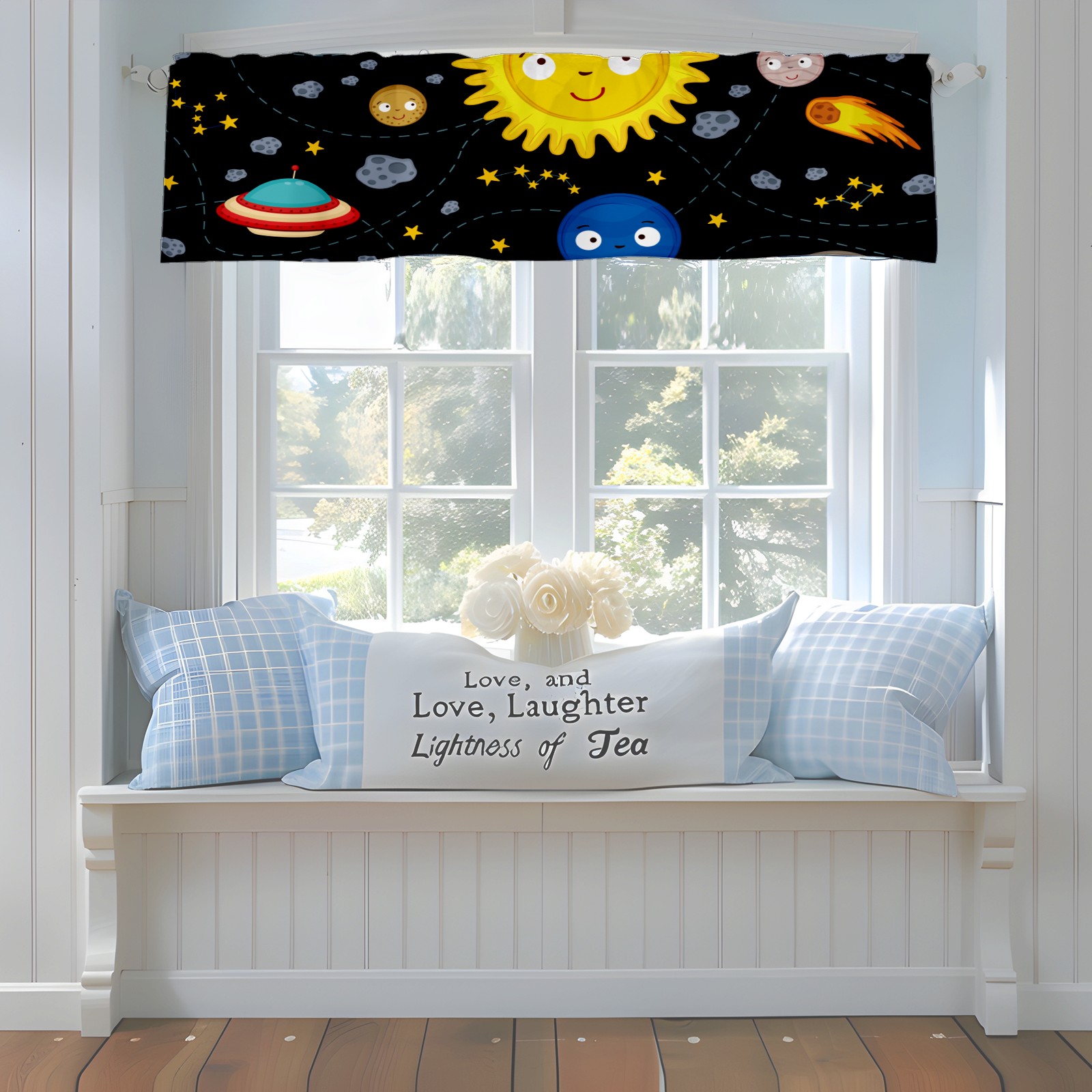 Blackout Curtain Valance for Living Room/Bathroom/Kitchen Valance Rod Pocket Curtain 14 x 52 Inches Space Stars Planets Galaxy Rockets Sun