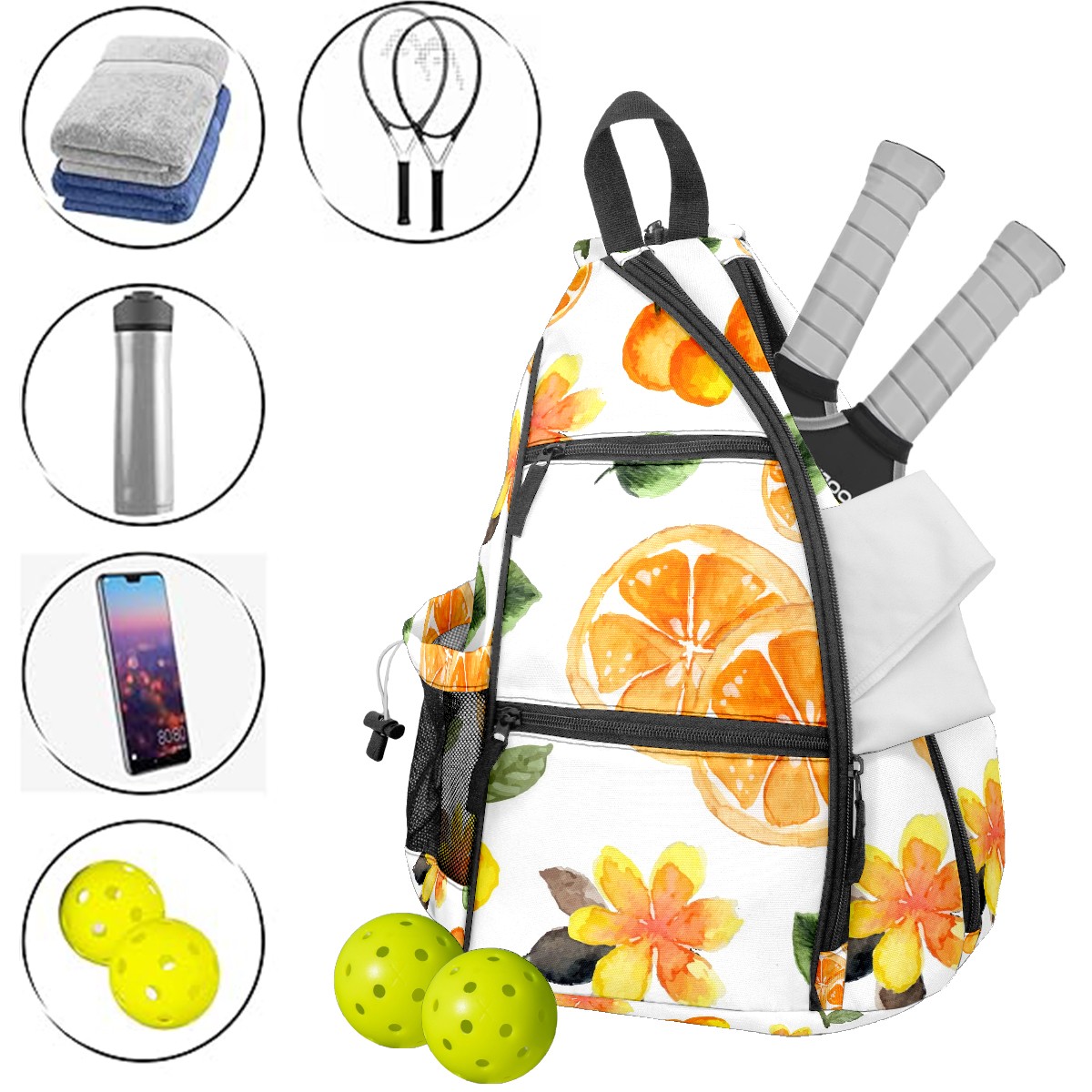 Multifunctional Pickleball Bag,Large Capacity Sports Pickleball Racket Bag, Water Bottle Holder and Fence Hook,Suitable for Both Men Women -Fruit Orange